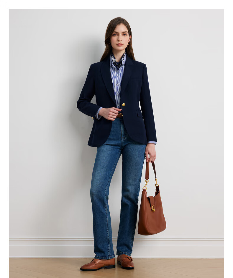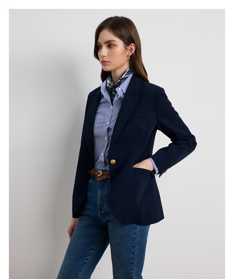 Scofield Женский темпераментный костюм на рабочем месте с одной пуговицей, поясная куртка с жесткими подплечниками, осень 2025, новый продукт, темно-синий M 165