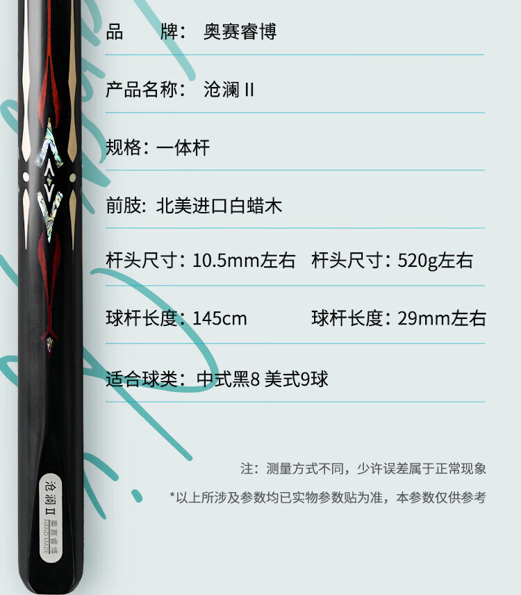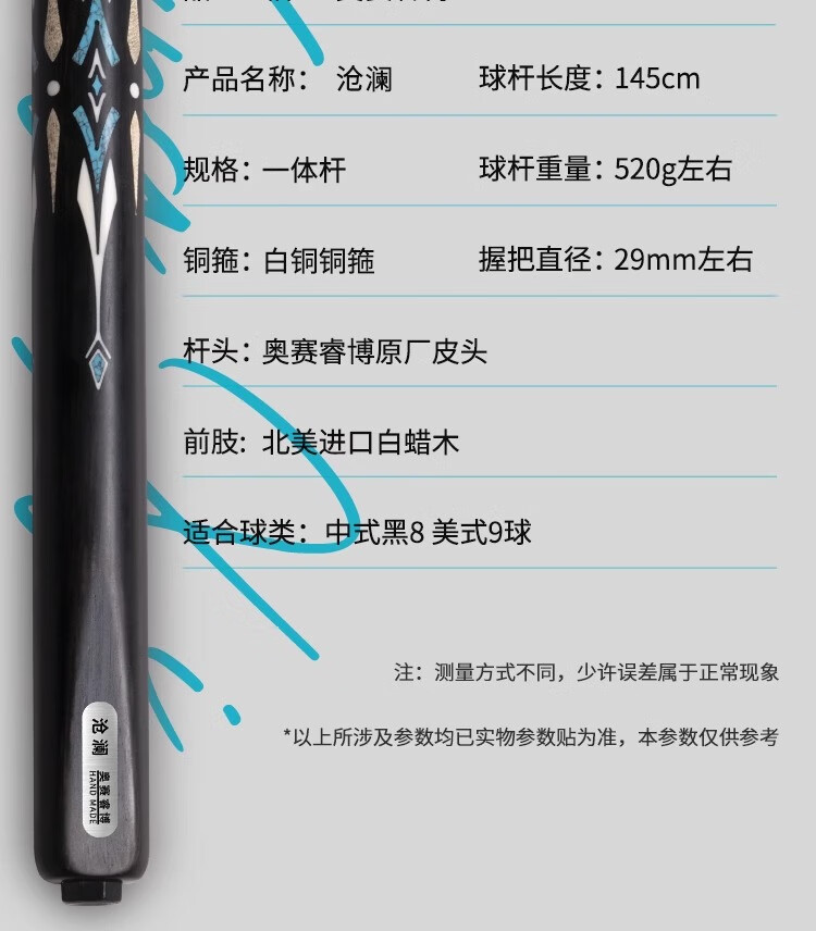 Osei Ribo's new Canglan 2 Cang Blade billiard cue small head Chinese eight-ball Galaxy Jerome Neptune chasing point table cue Shenyu Xuanfeng + original leather cue box