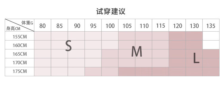 China (cm) 160-165/84-86 165-170 / 88-90 167-172 / 92-96 168-173 / 98-102 170-176 / 106-110