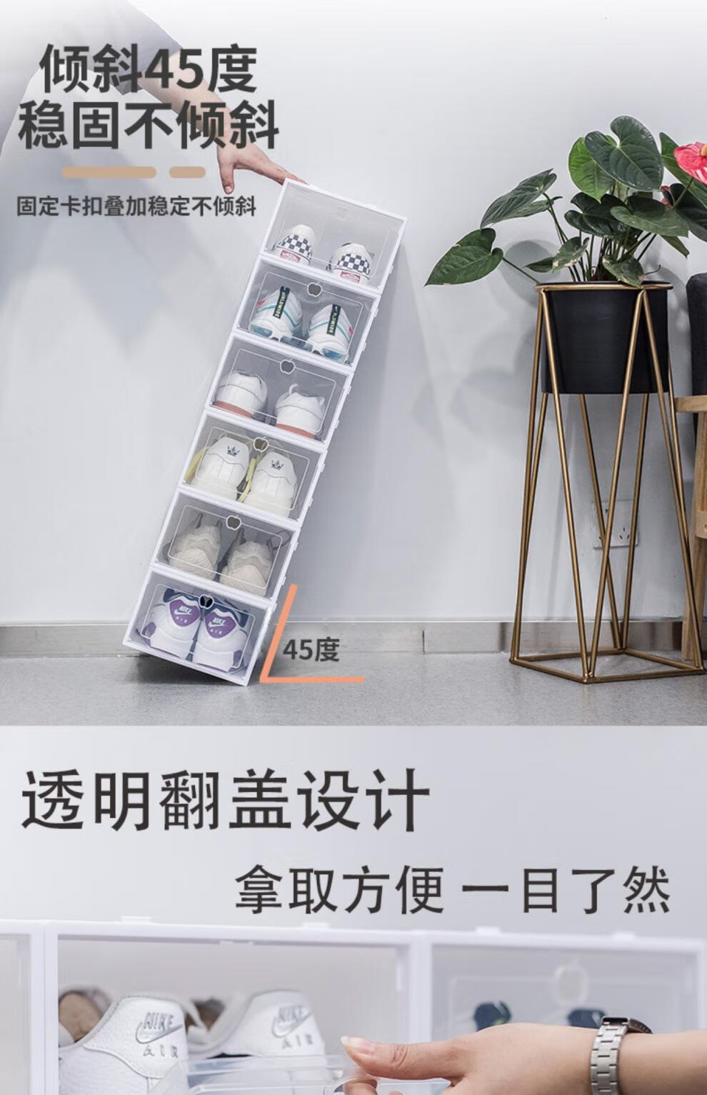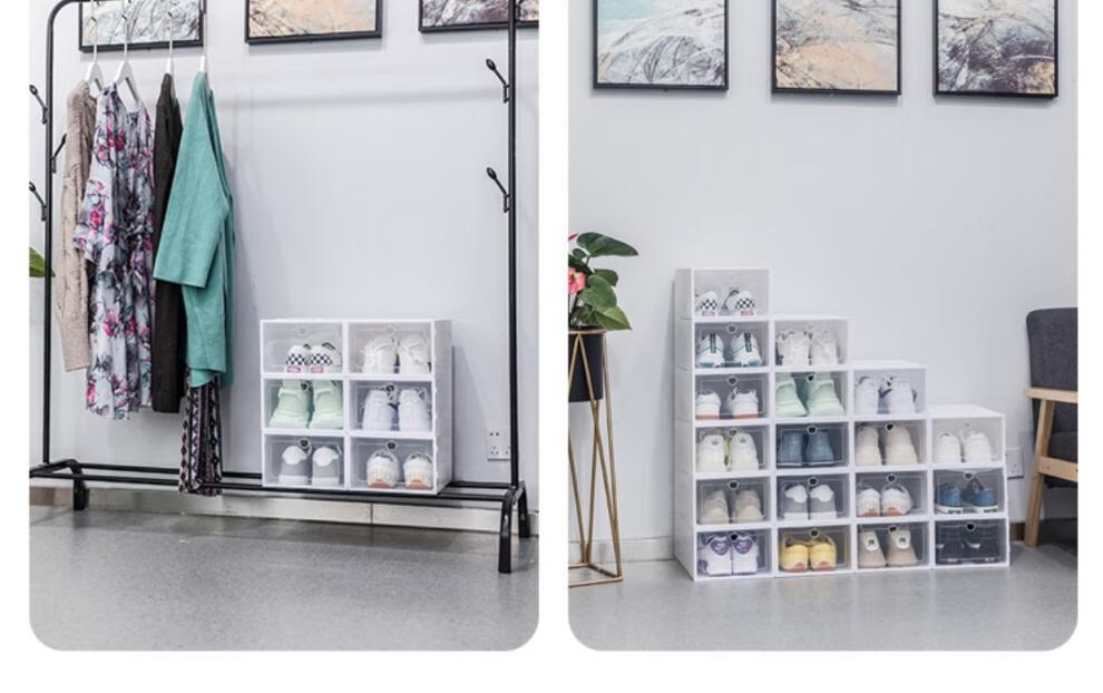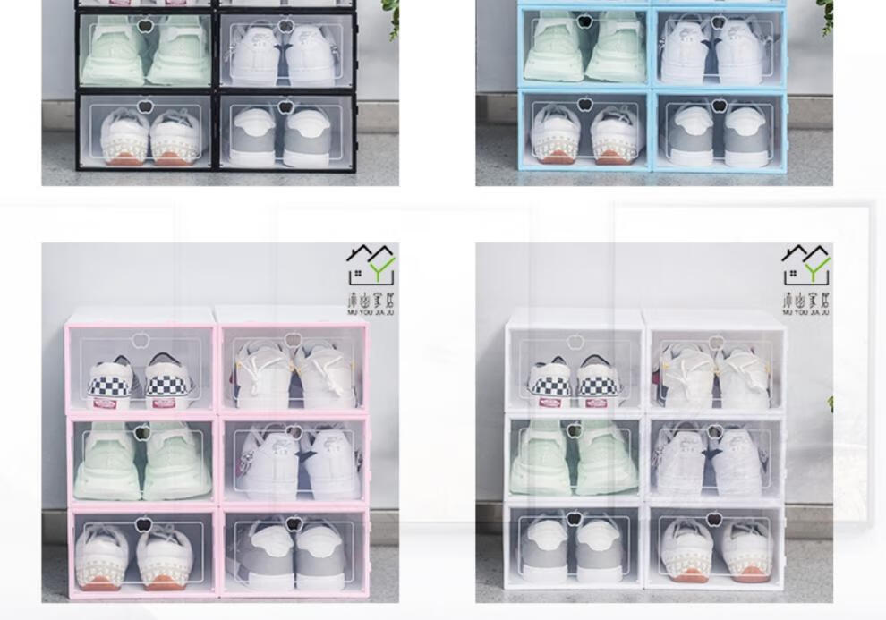 Shoe Storage Transparent Storage Shoe Box Simple Plastic Shoe Cabinet Dust-proof and Anti-oxidation Shoe Box Multi-layer Foldable Shoe Rack Pink Men's Model Buy 6 Get 6 Free Twelve Boxes