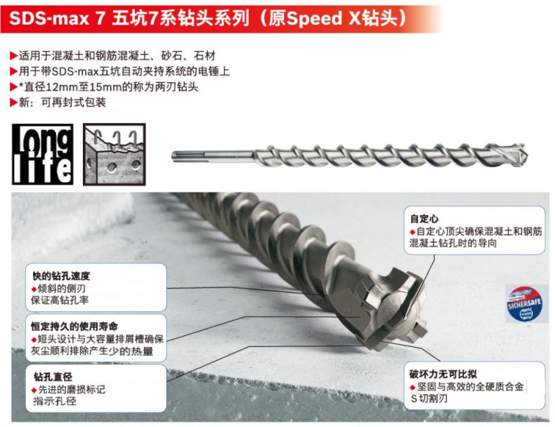 Bosch BOSCH electric hammer five-pit drill bit Speed X series original accessories Bosch SpeedX five-pit drill bit 25*520