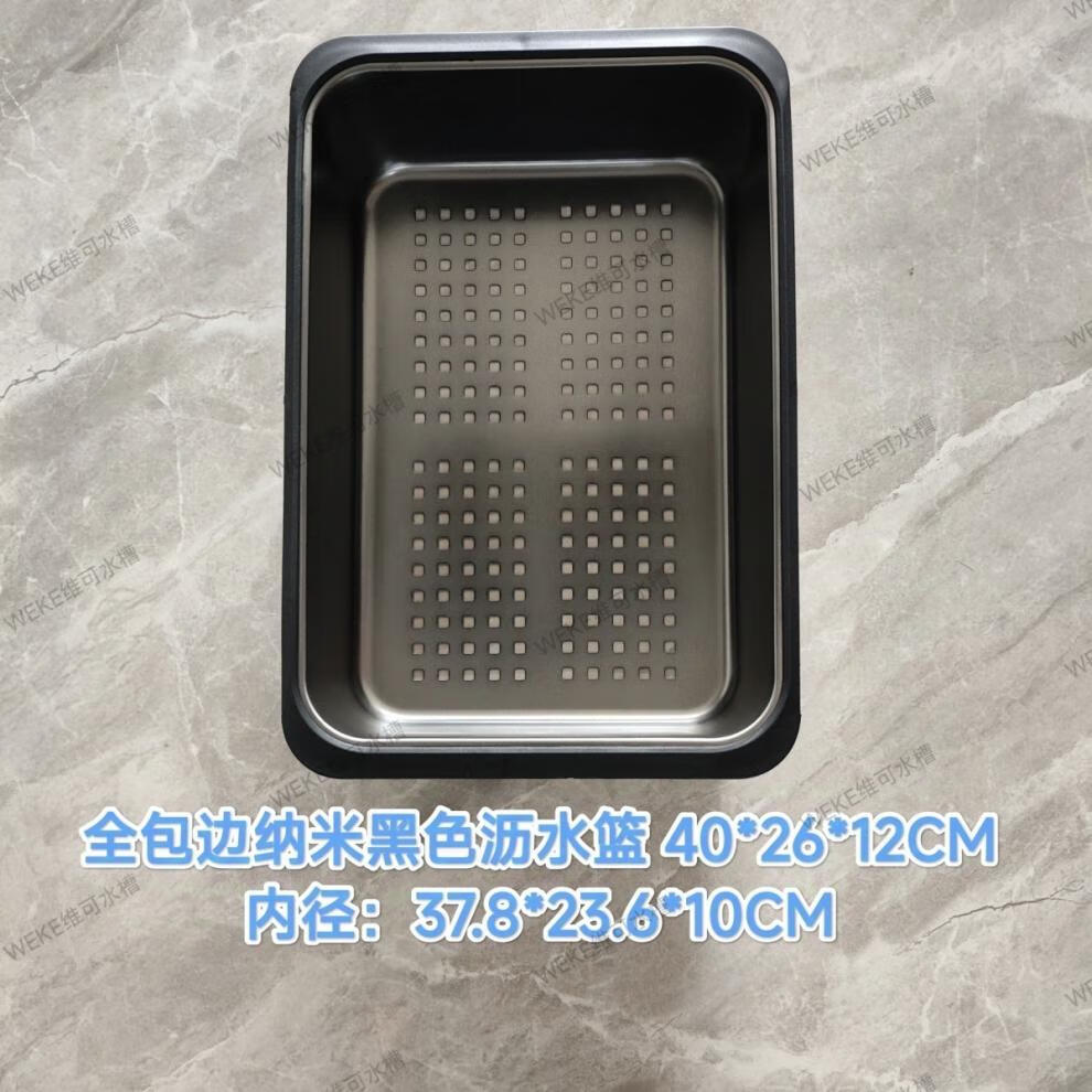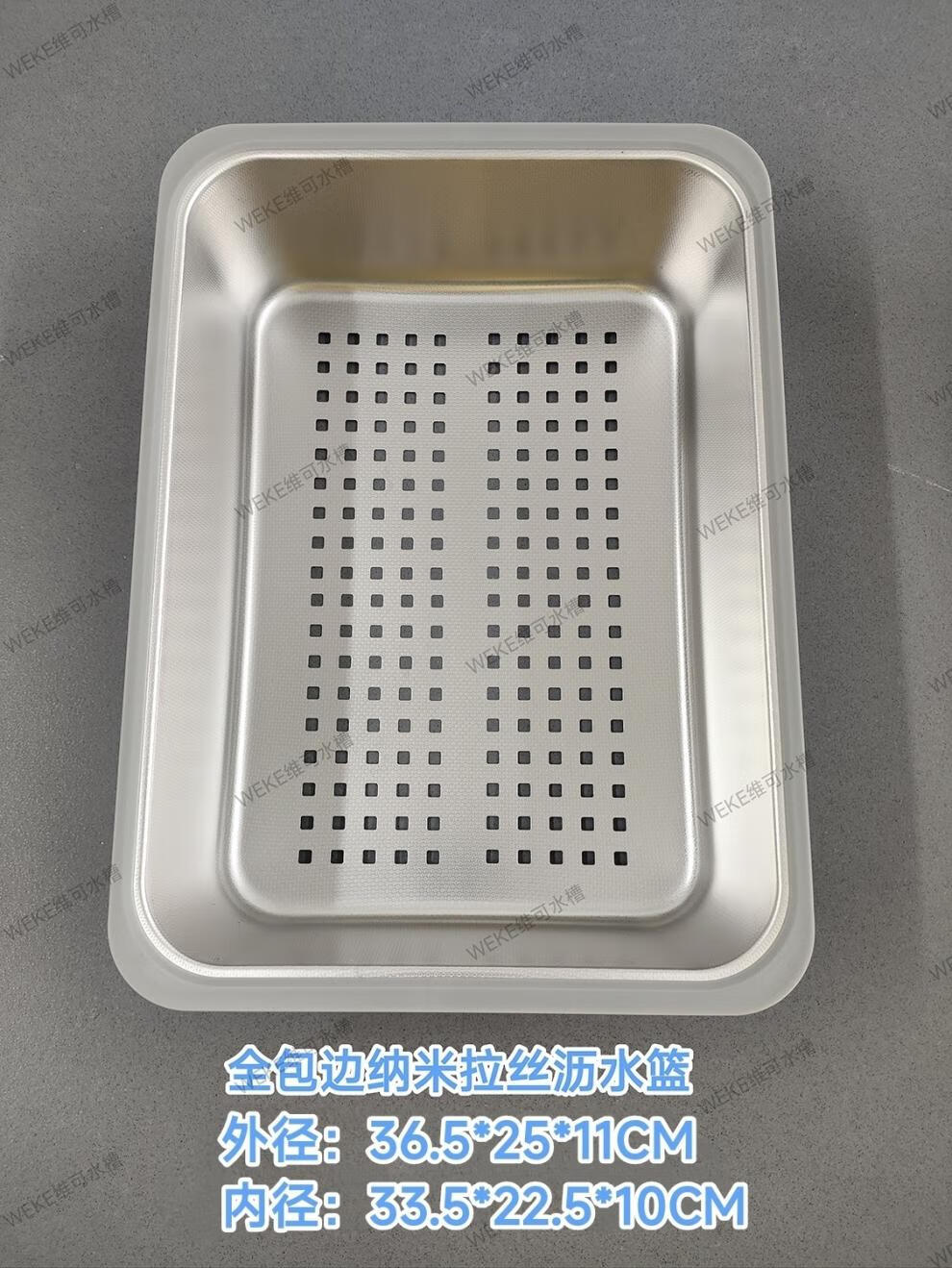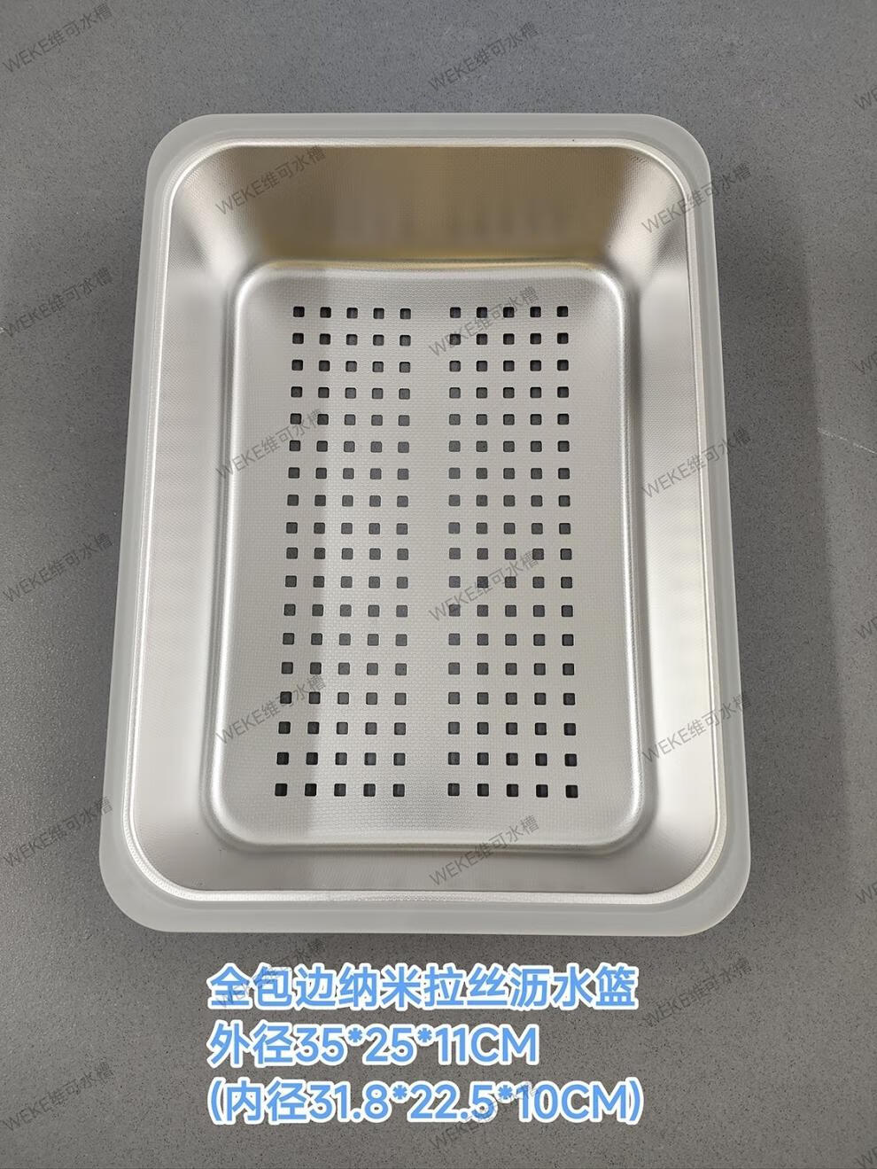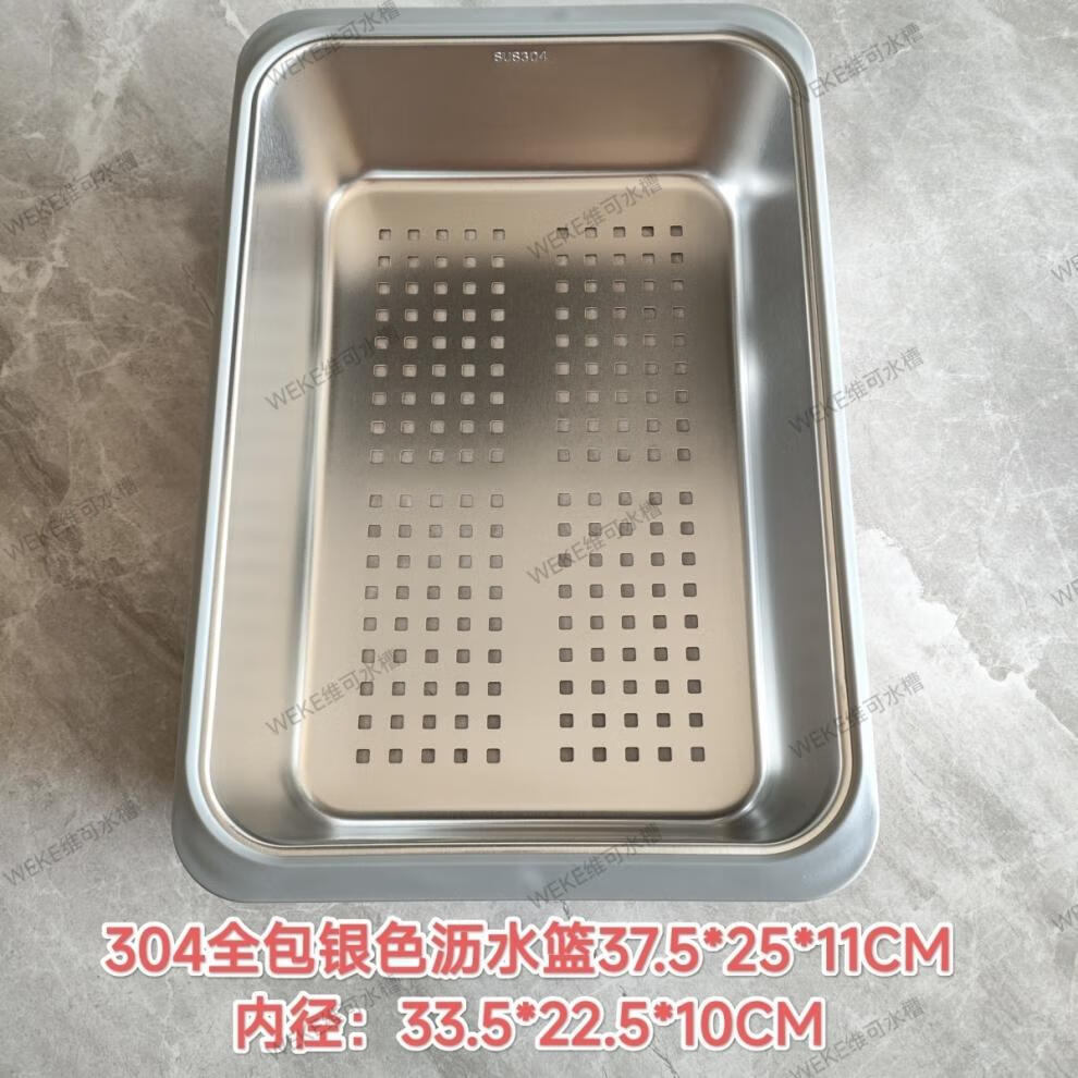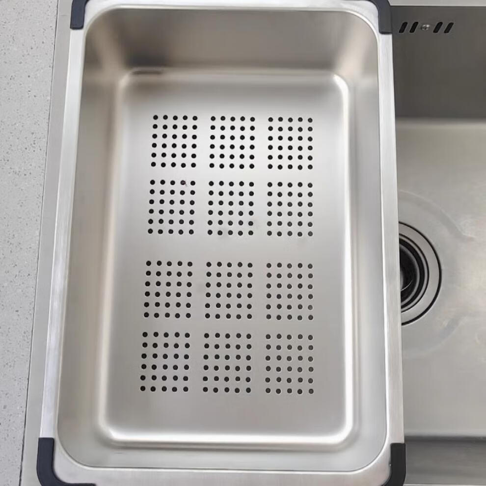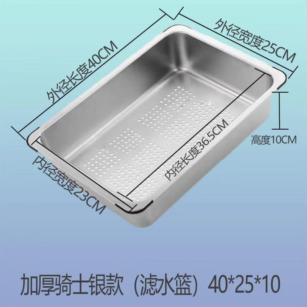 Qinkai nano stainless steel drain basket, thickened all-inclusive edge drain basket, non-retractable vegetable washing drain basket thickened all-inclusive silver 35.5*25*11 inner length 31.9