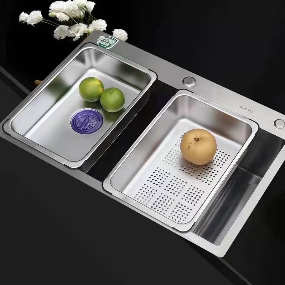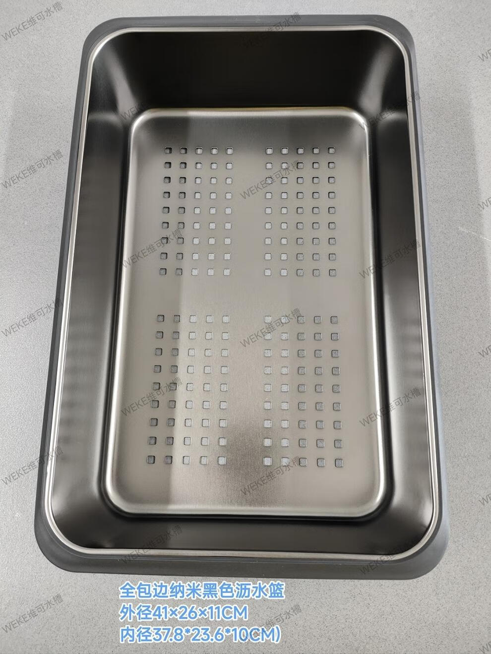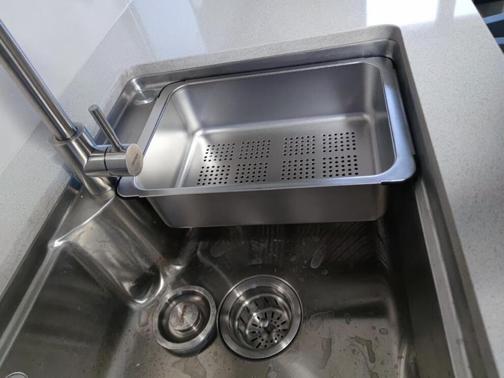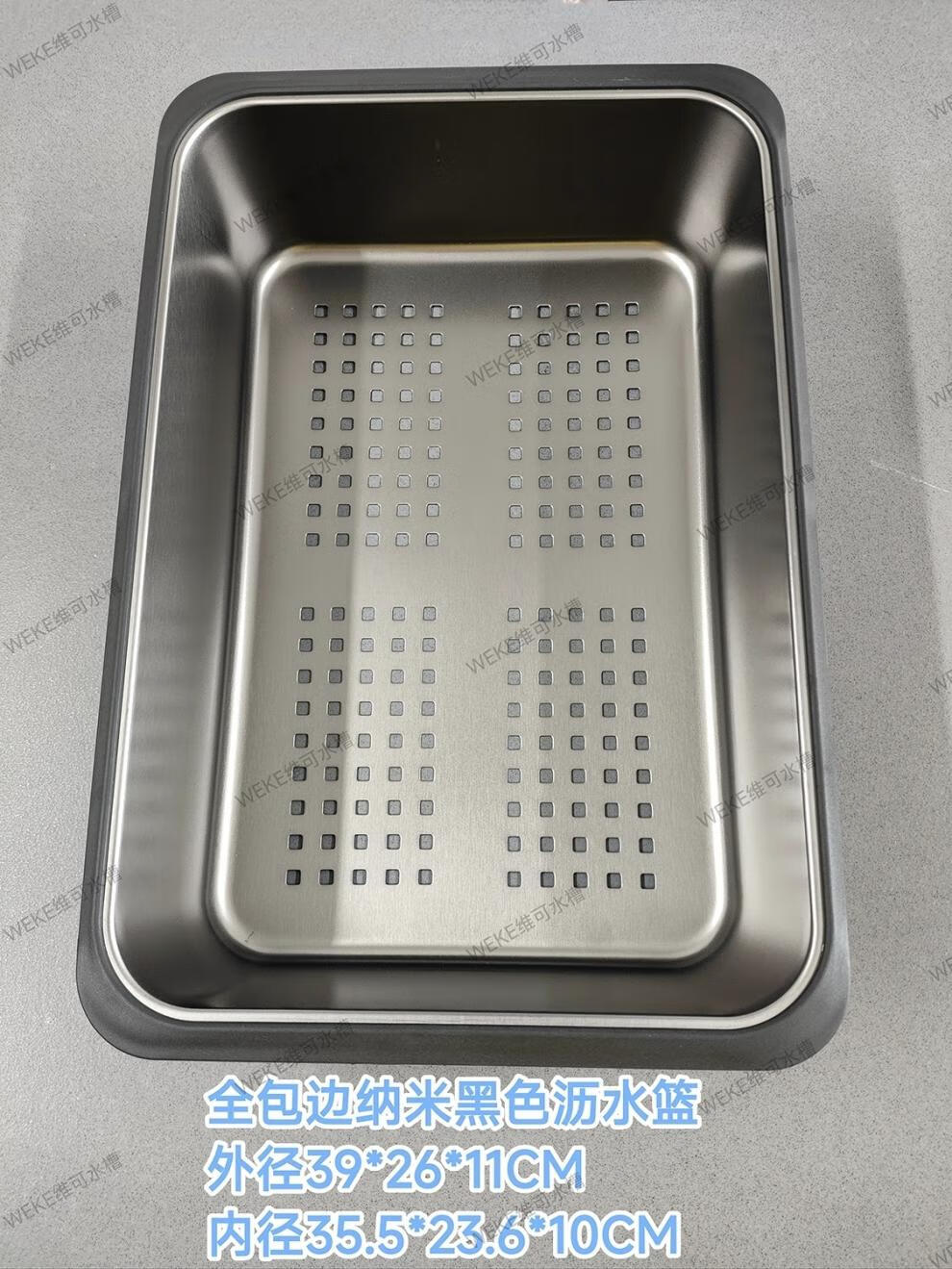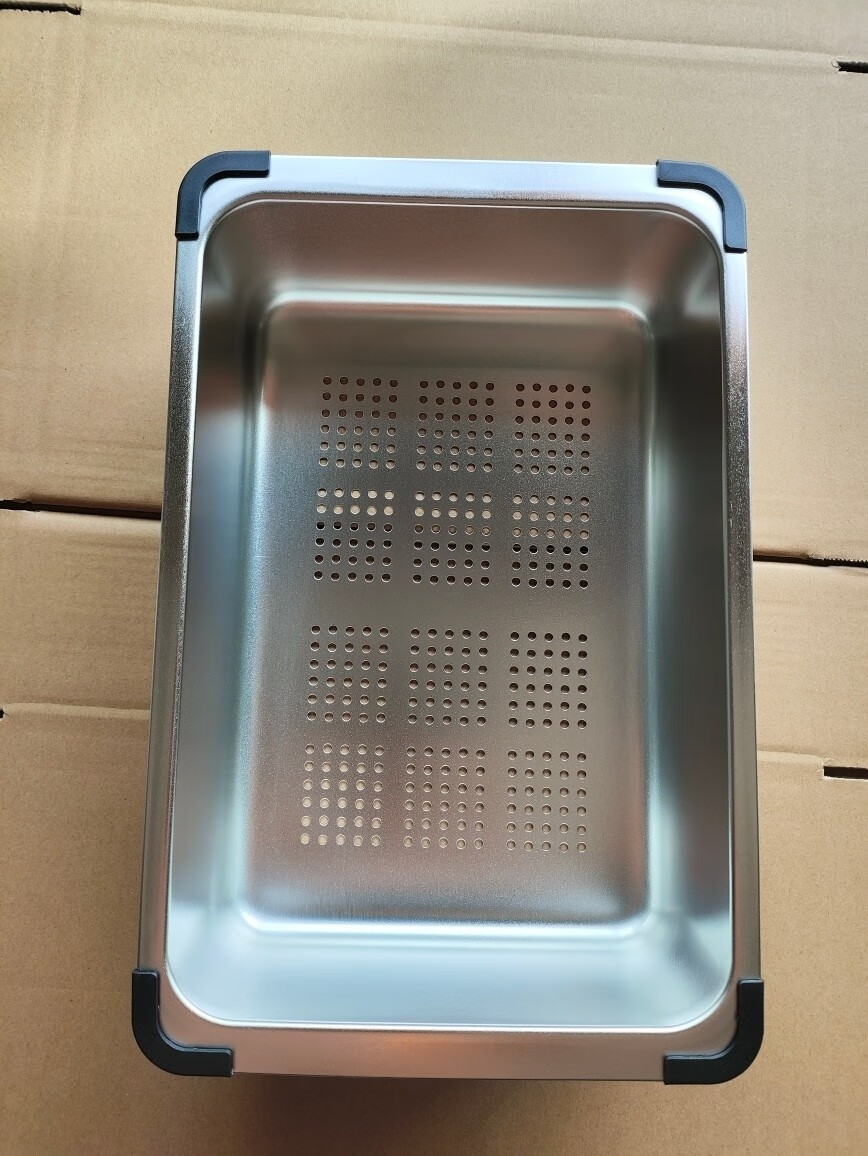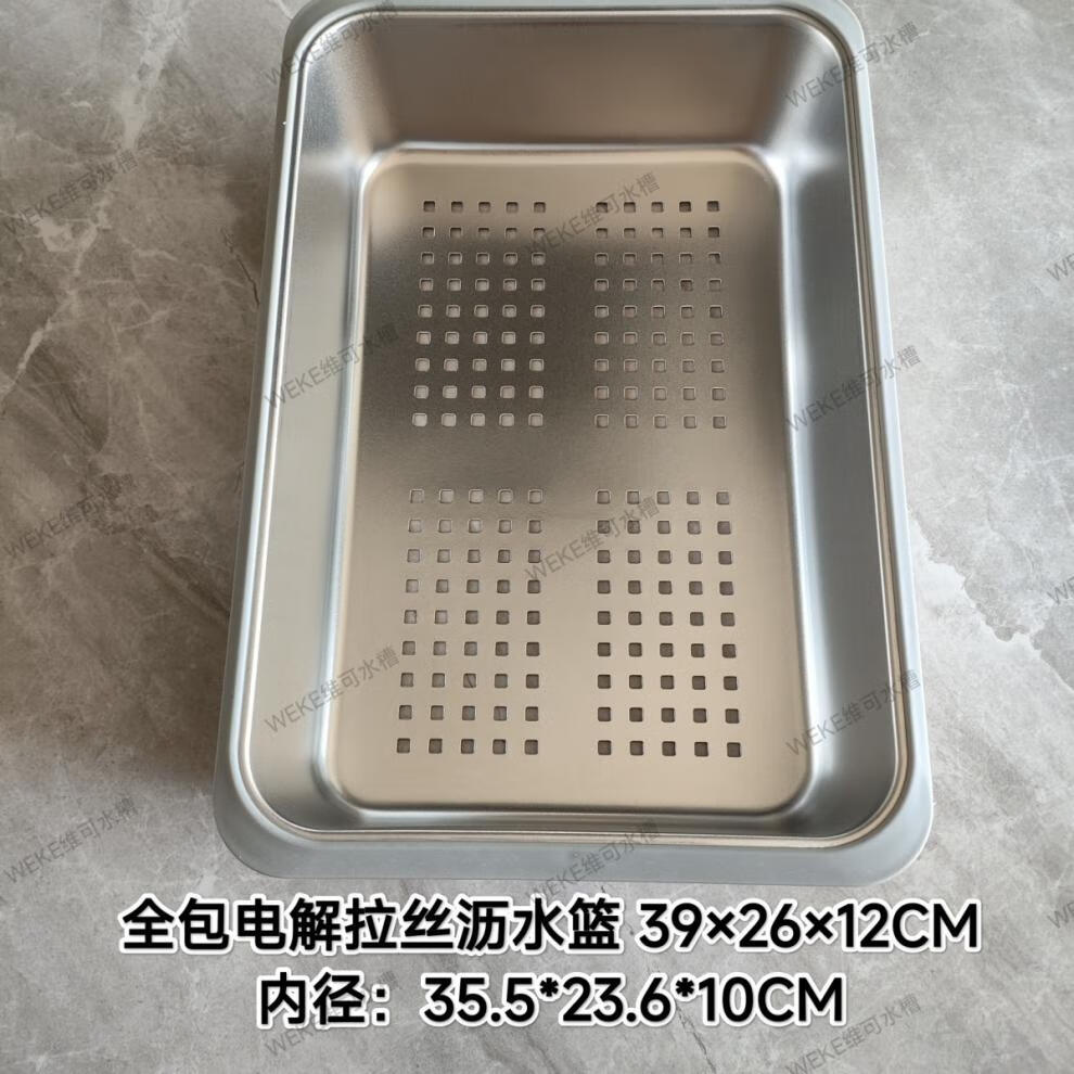Qinkai nano stainless steel drain basket, thickened all-inclusive edge drain basket, non-retractable vegetable washing drain basket thickened all-inclusive silver 35.5*25*11 inner length 31.9