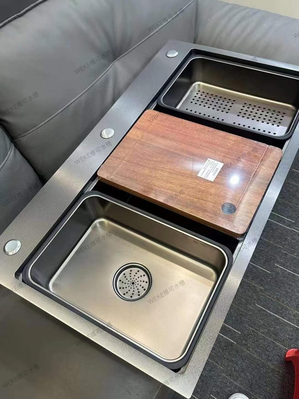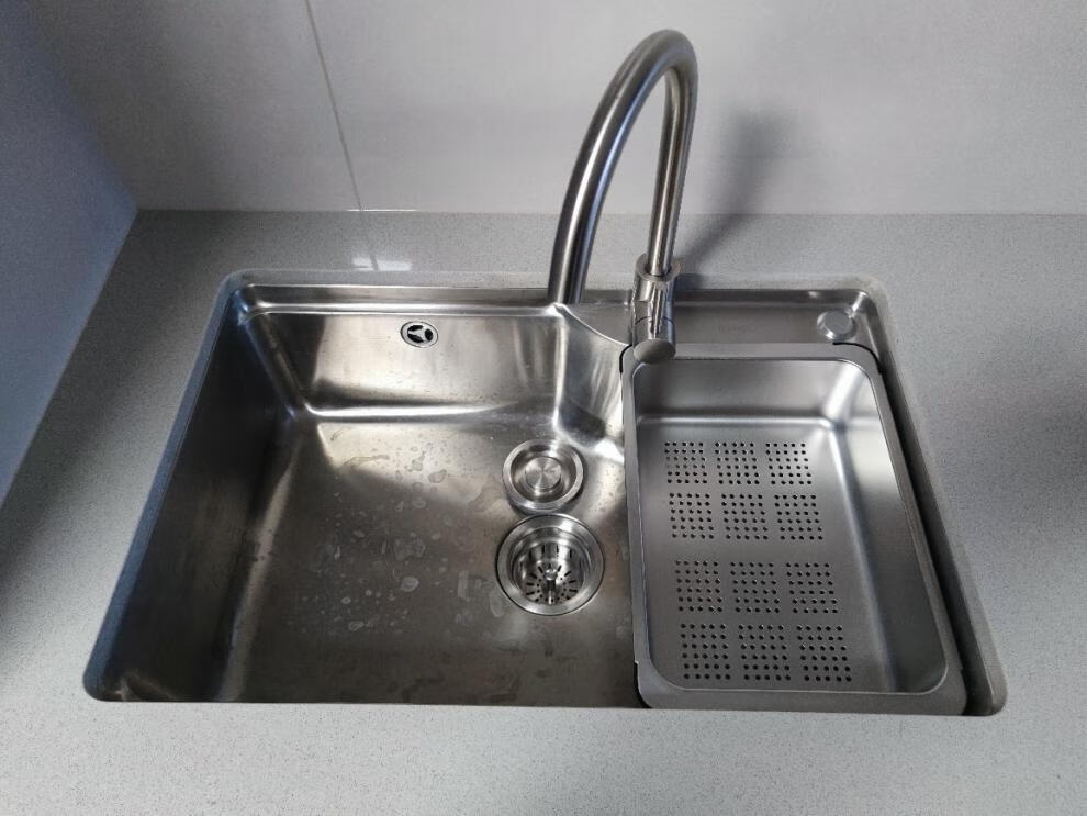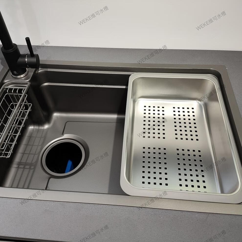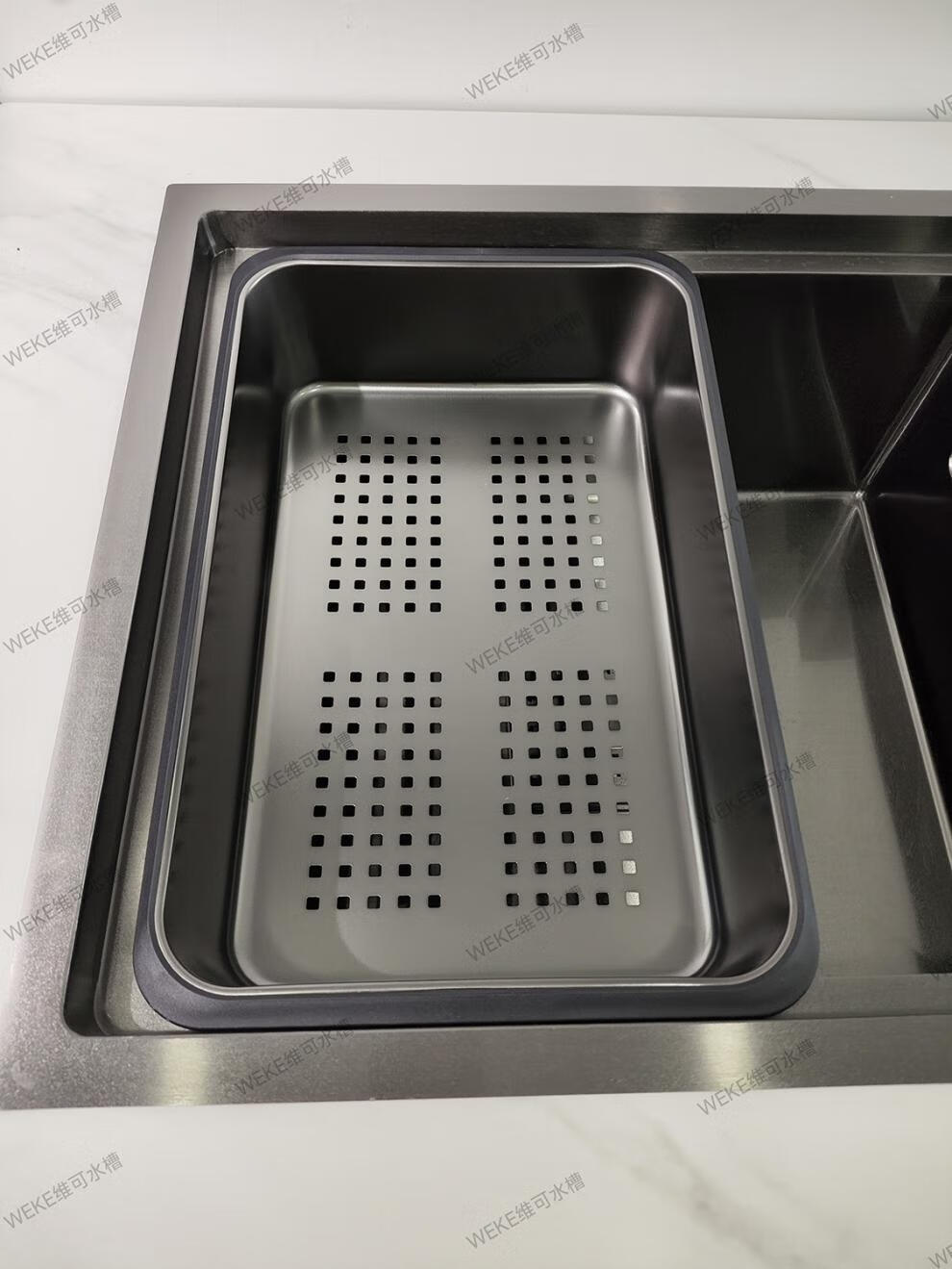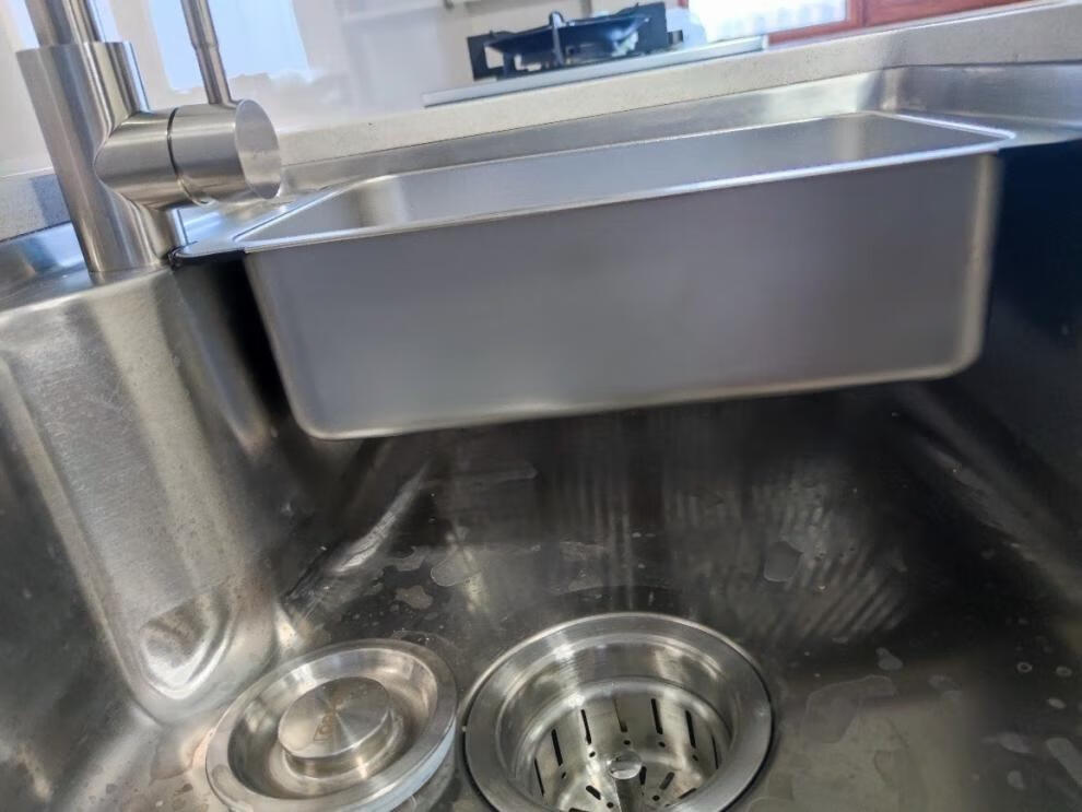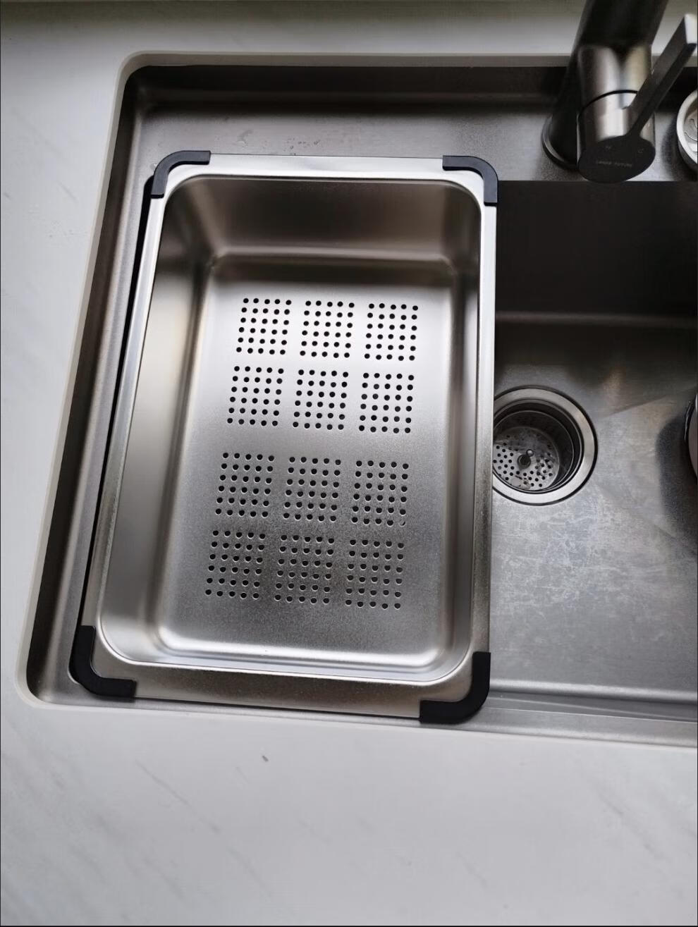 Qinkai nano stainless steel drain basket, thickened all-inclusive edge drain basket, non-retractable vegetable washing drain basket thickened all-inclusive silver 35.5*25*11 inner length 31.9