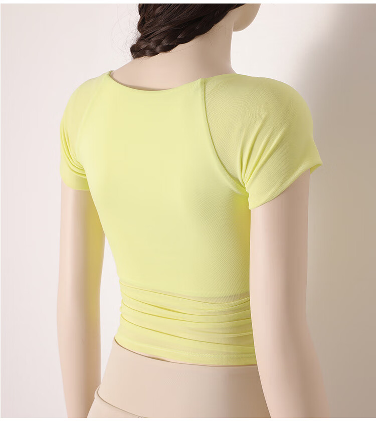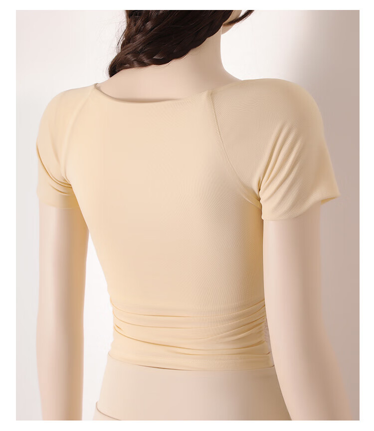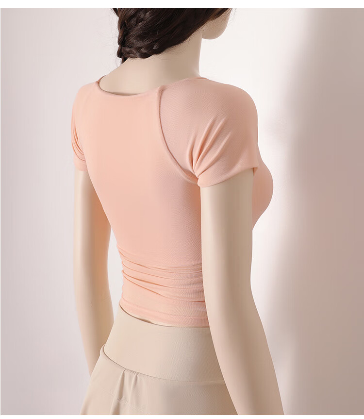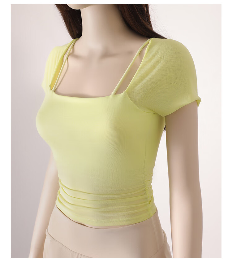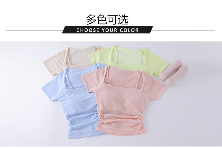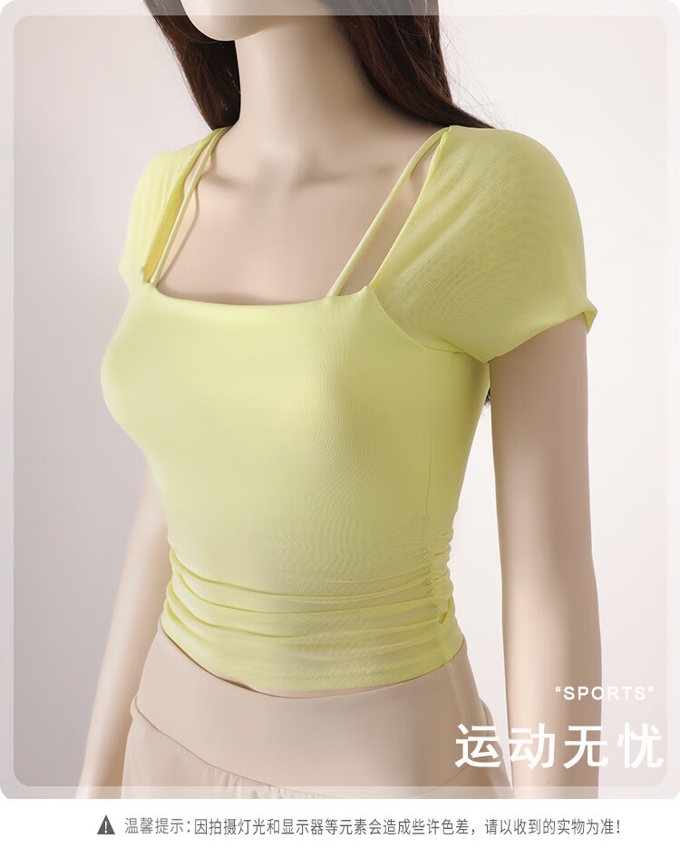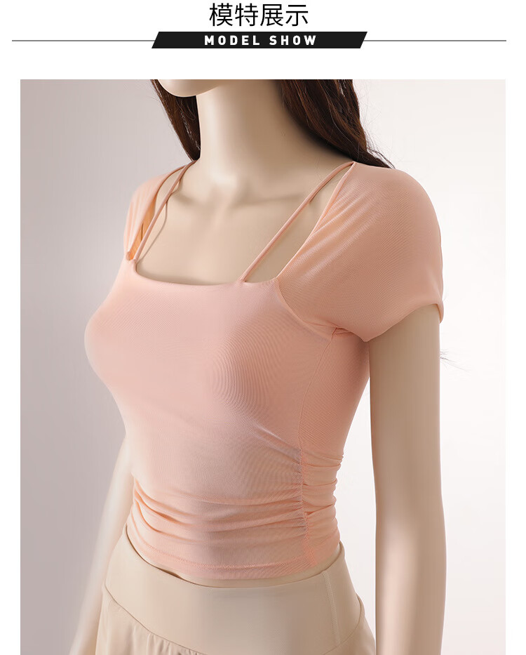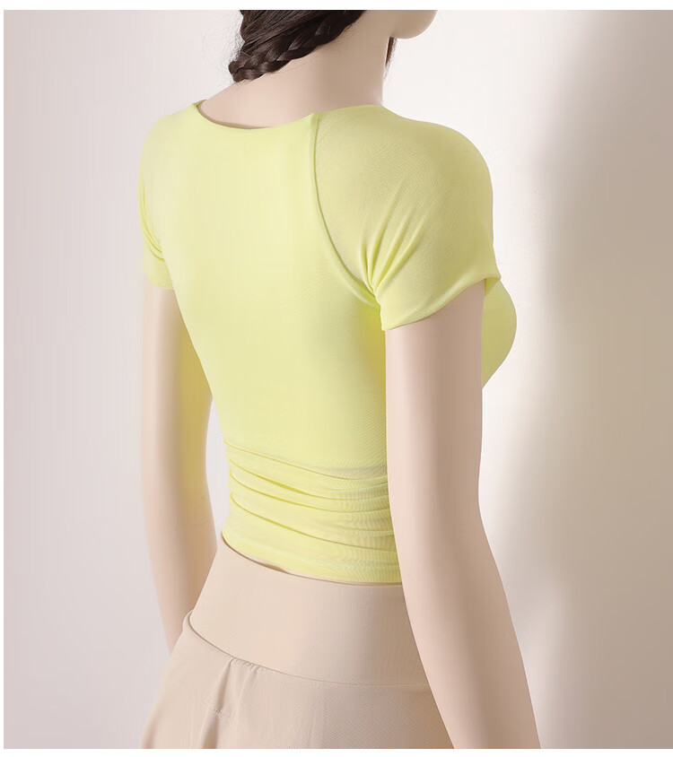 LULUUVTTOH shock-proof yoga clothes with chest pads for women, summer sports short-sleeved T-shirt tops, slimming Pilates training clothes, light blue M