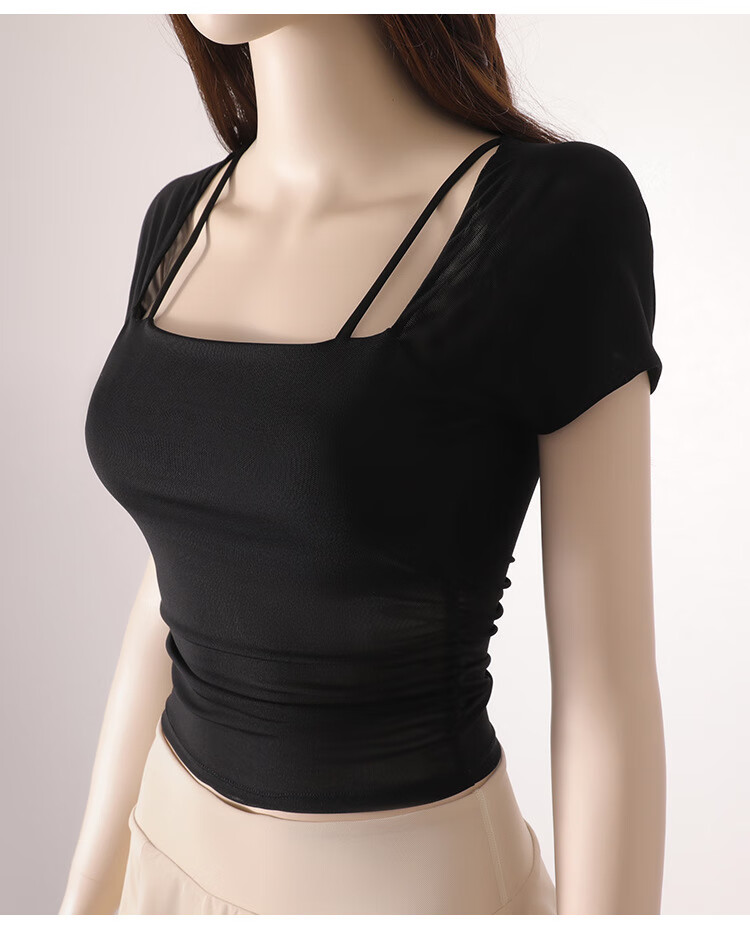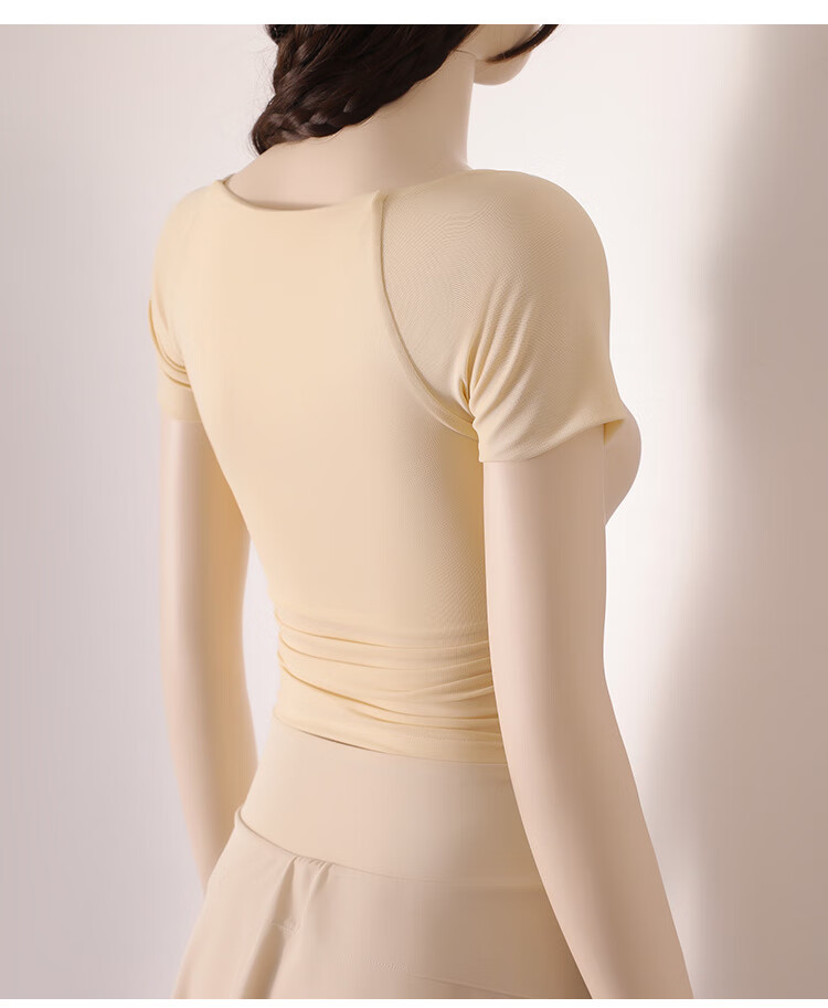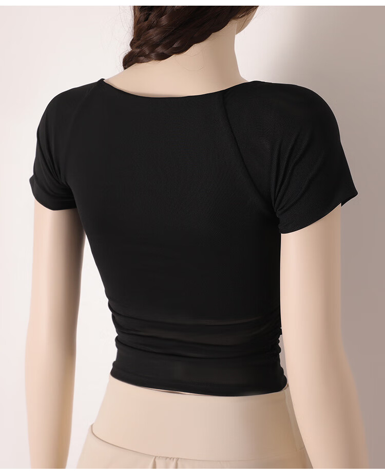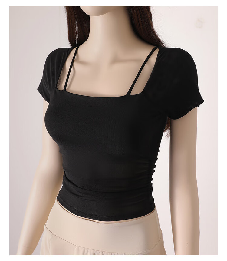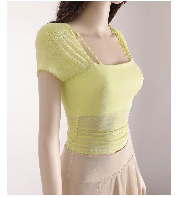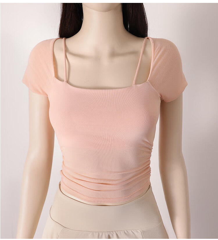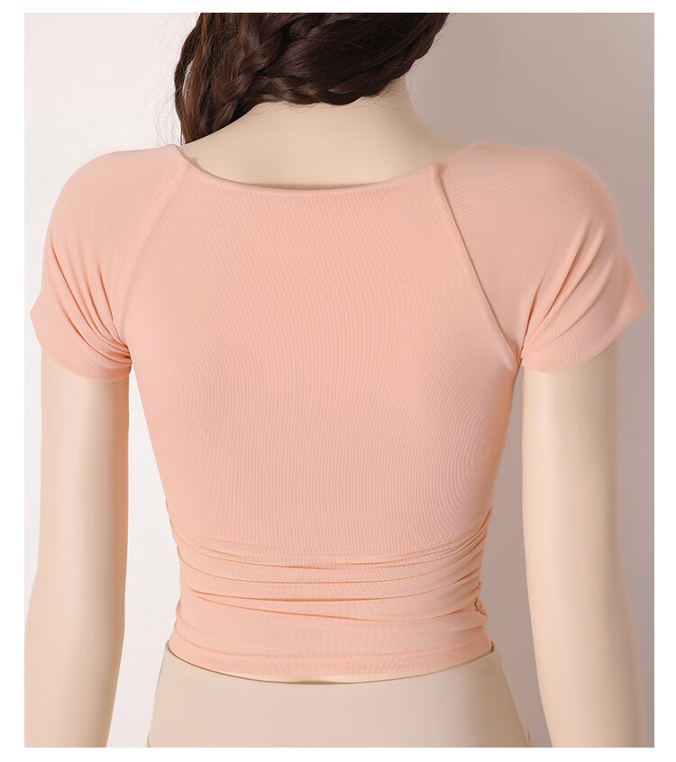 LULUUVTTOH shock-proof yoga clothes with chest pads for women, summer sports short-sleeved T-shirt tops, slimming Pilates training clothes, light blue M