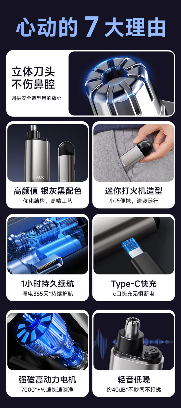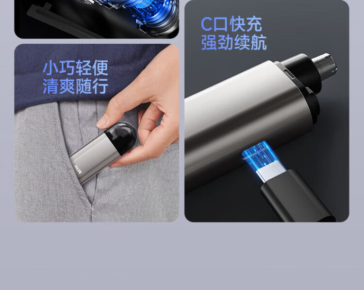AUX Nose Hair Trimmer, Portable Electric Eyebrow Trimmer, Ear Hair Trimmer, Nose Hair Trimmer, Electric Trimmer, Rechargeable Automatic Shaver, Gift for Boyfriend, Gift for Dad, Gift for Dad, Basic Package, Single Machine Standard