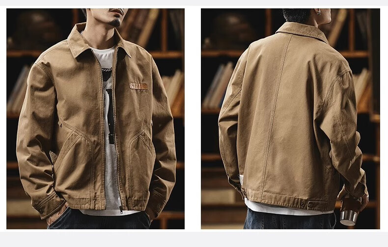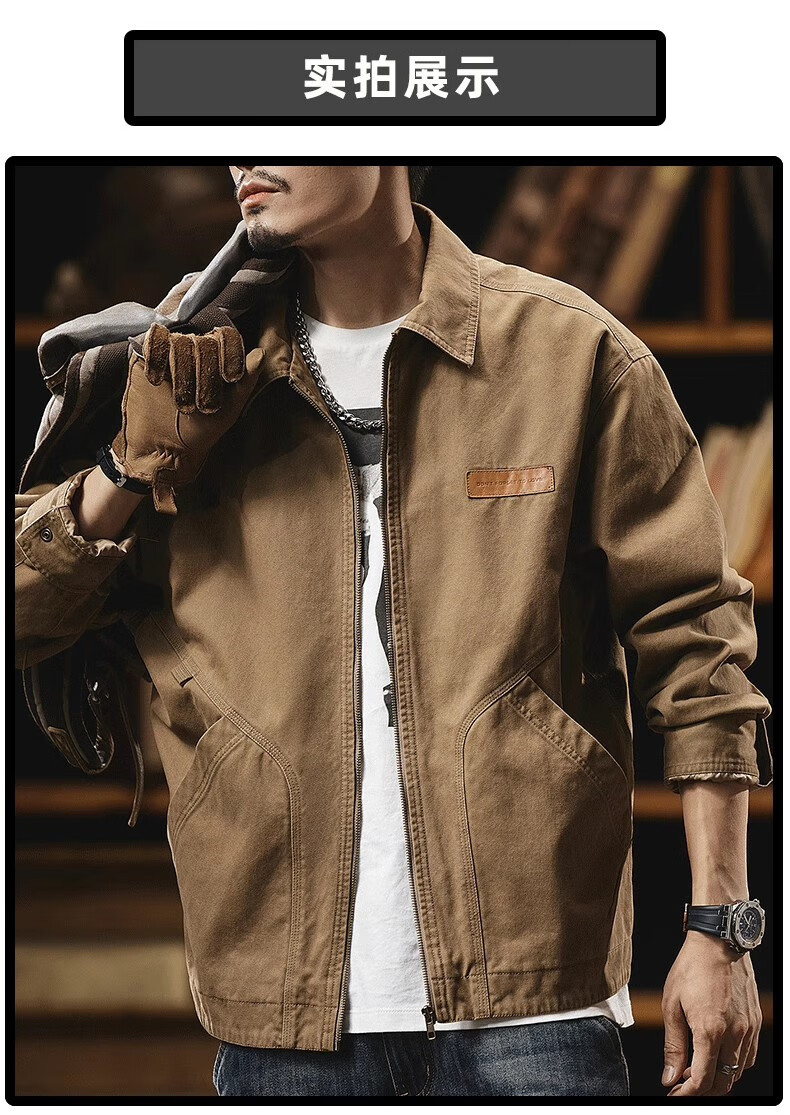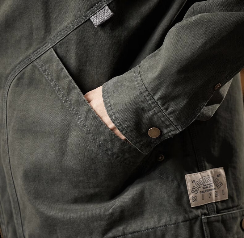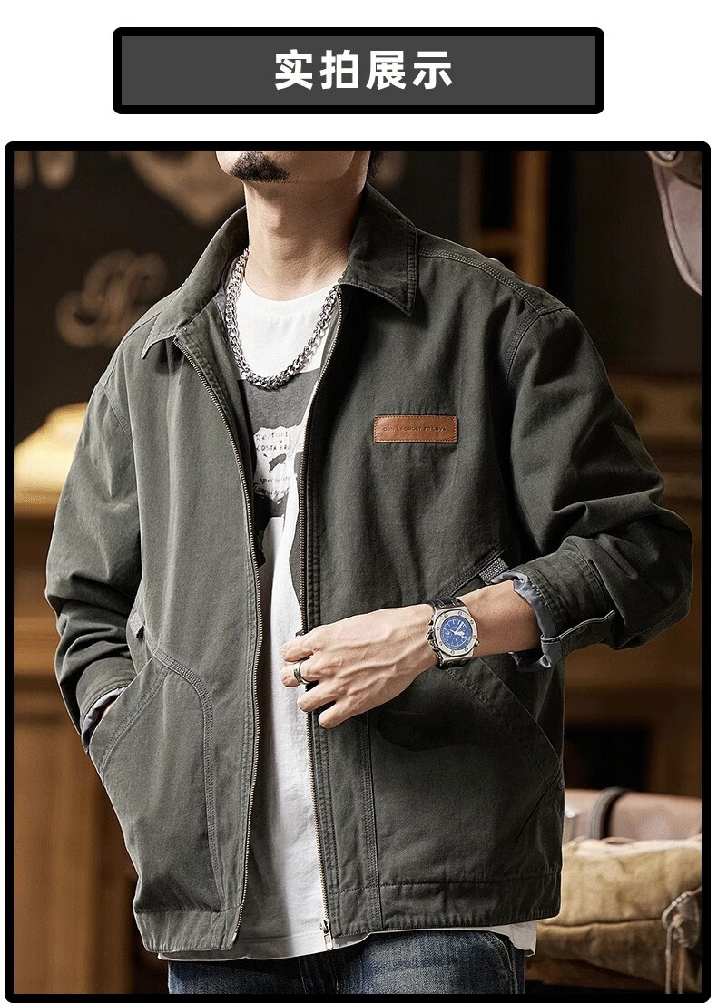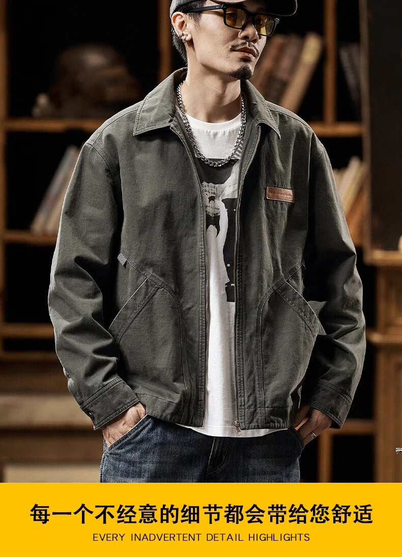 AEMAPE Detroit Workwear Jacket Men's 2025 New American Retro Trendy Brand Pure Cotton Casual Handsome Small Man Tops 6085 Dark Gray Regular XL Recommendation 160-175Jin Jin is equal to 0.5 kg