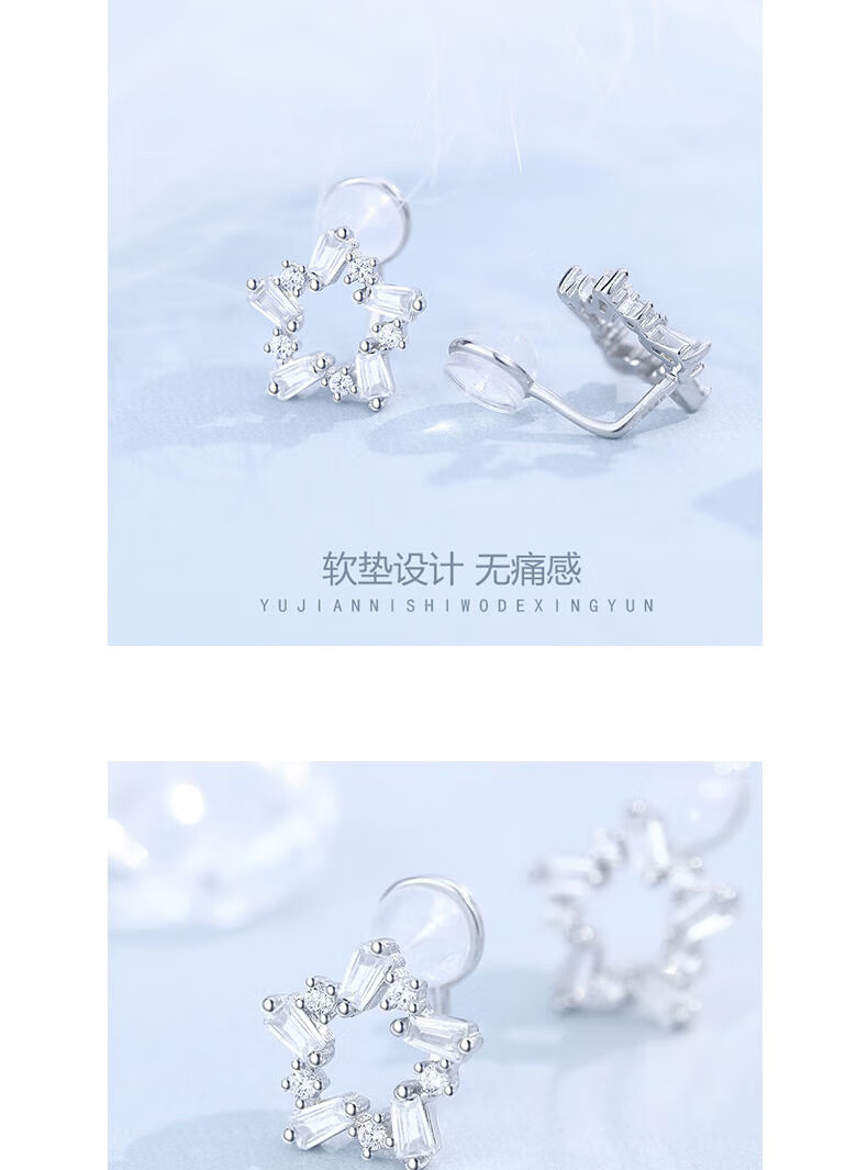 Bai Qixin star ear clip star-shaped hollow earrings without pierced earrings for women fashion simple zircon ear bone clip birthday gift star hollow ear clip-with ear plugs gift box
