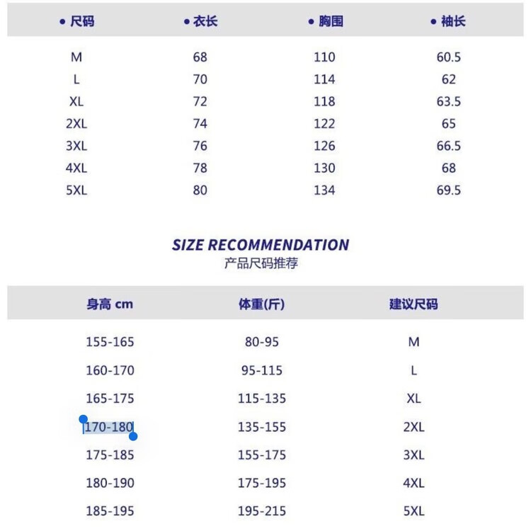 China (cm) 160-165/84-86 165-170 / 88-90 167-172 / 92-96 168-173 / 98-102 170-176 / 106-110