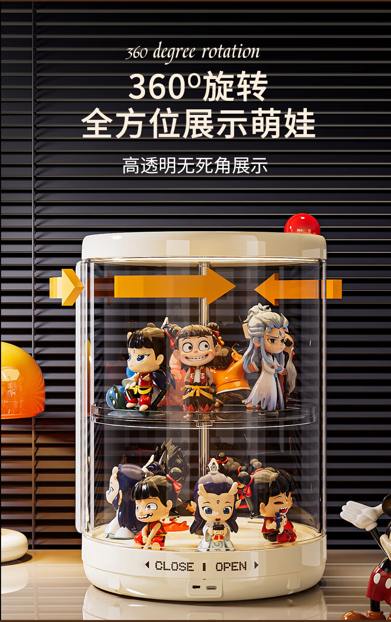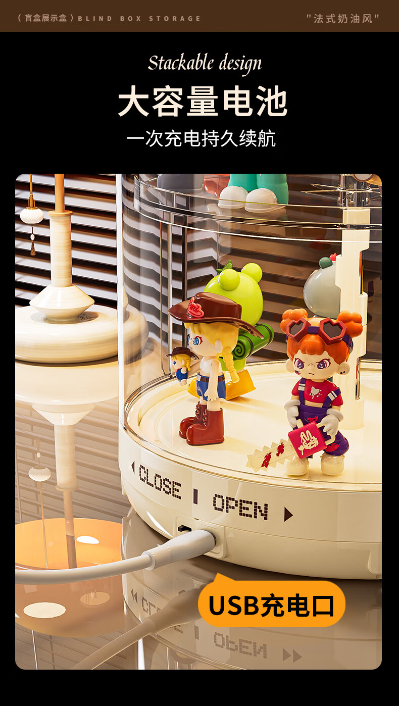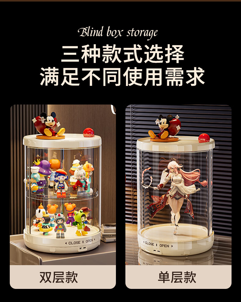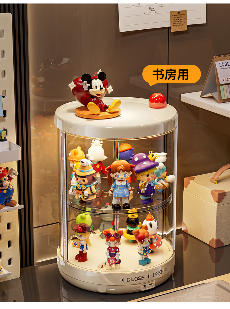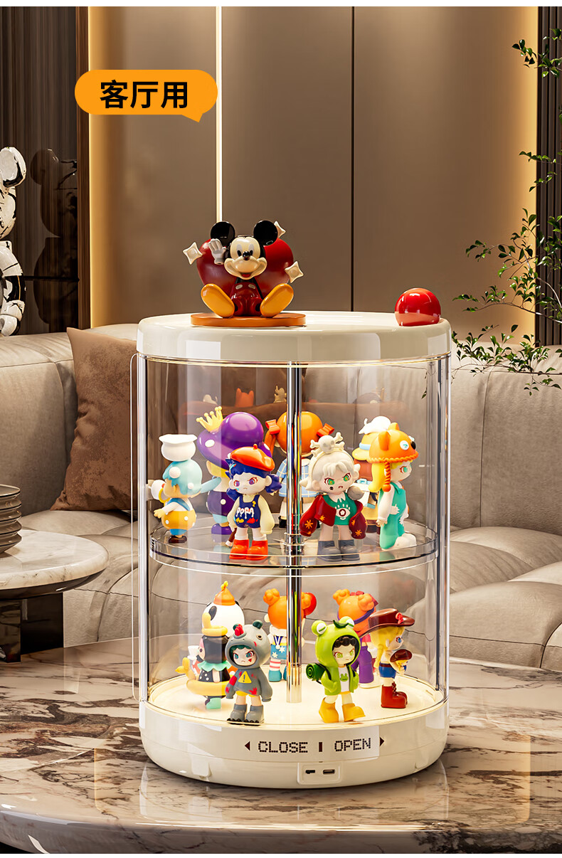 GOTOlabubu Bubble Mart blind box lighting display cabinet dust-proof transparent rotating figure storage box doll storage rack rotating figure box (double-layer electric with light model)