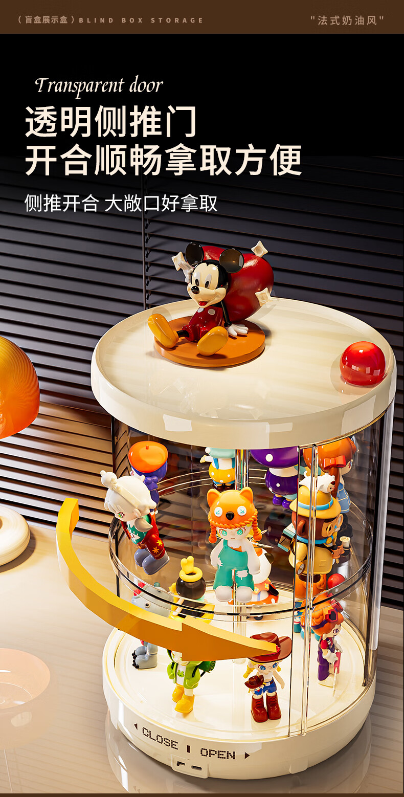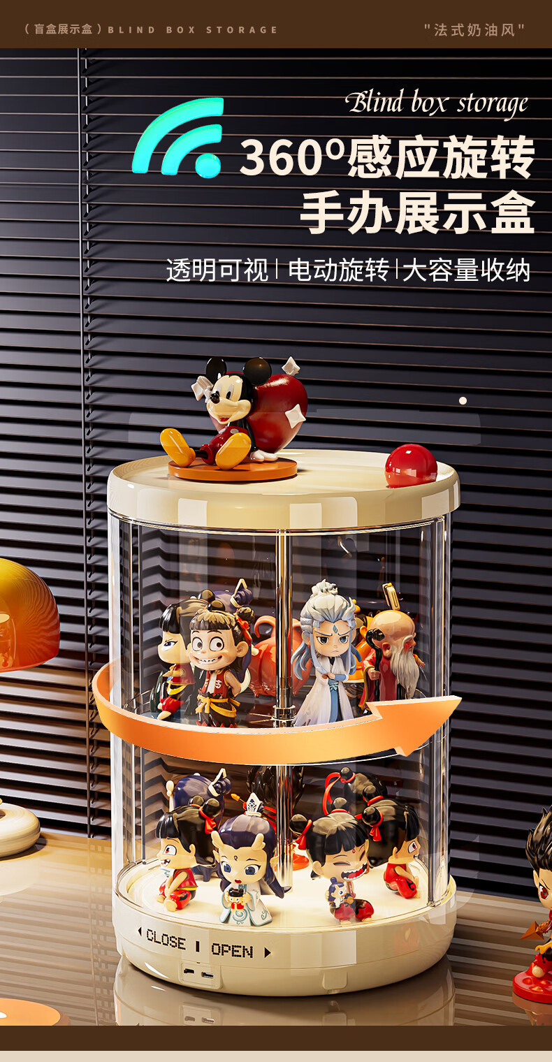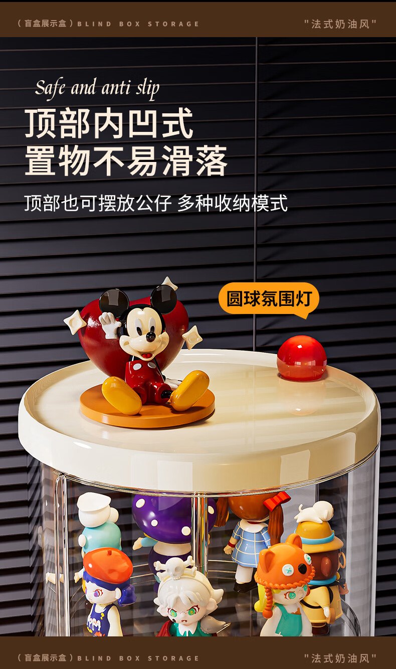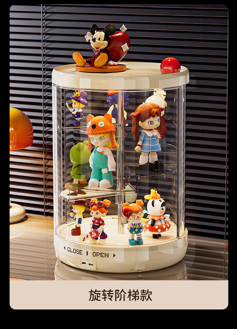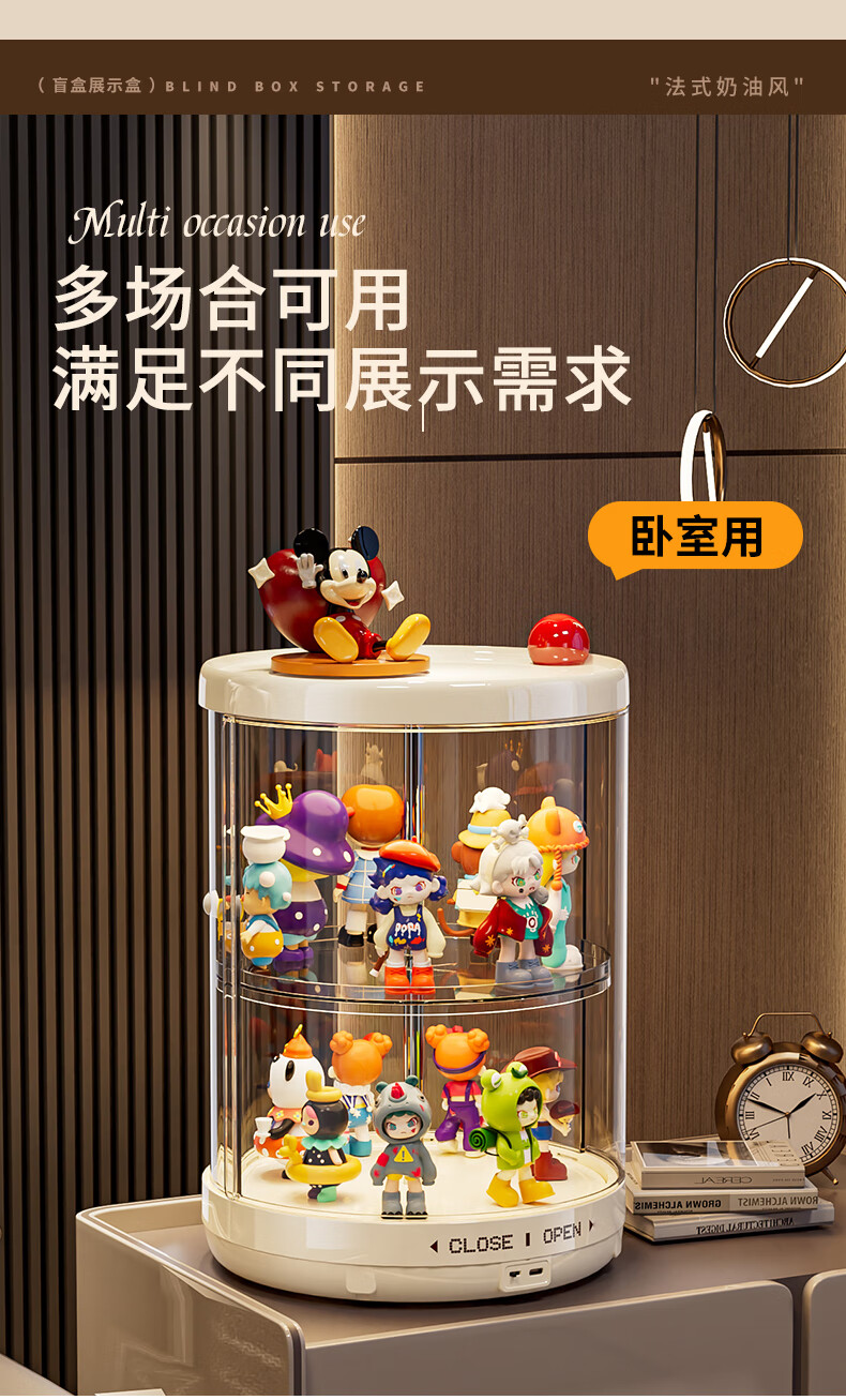 GOTOlabubu Bubble Mart blind box lighting display cabinet dust-proof transparent rotating figure storage box doll storage rack rotating figure box (double-layer electric with light model)