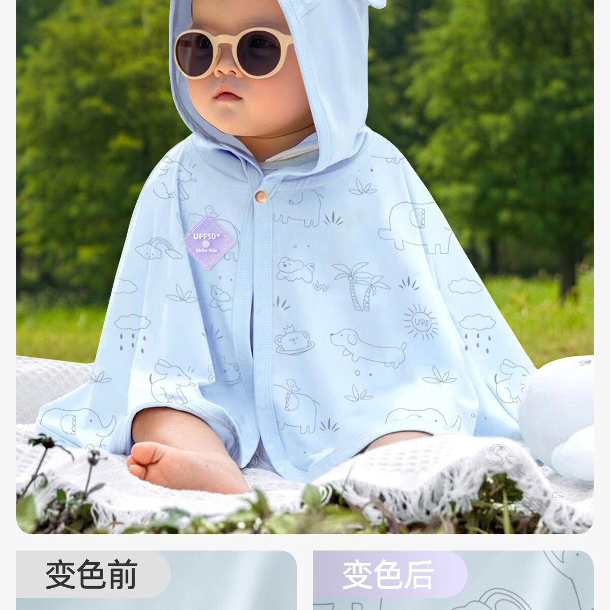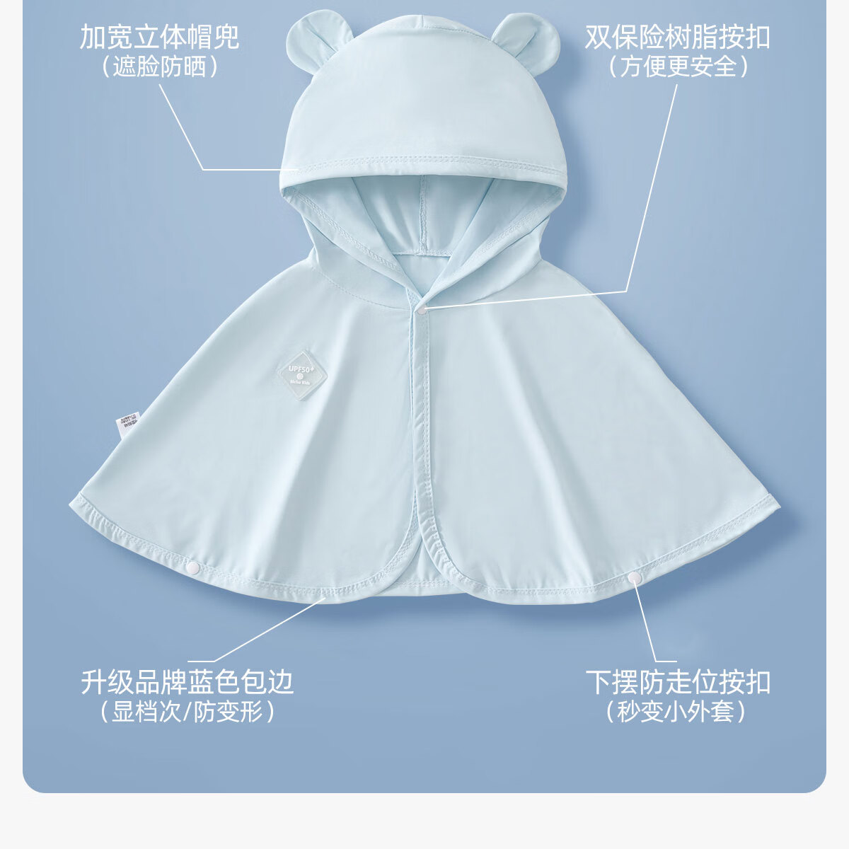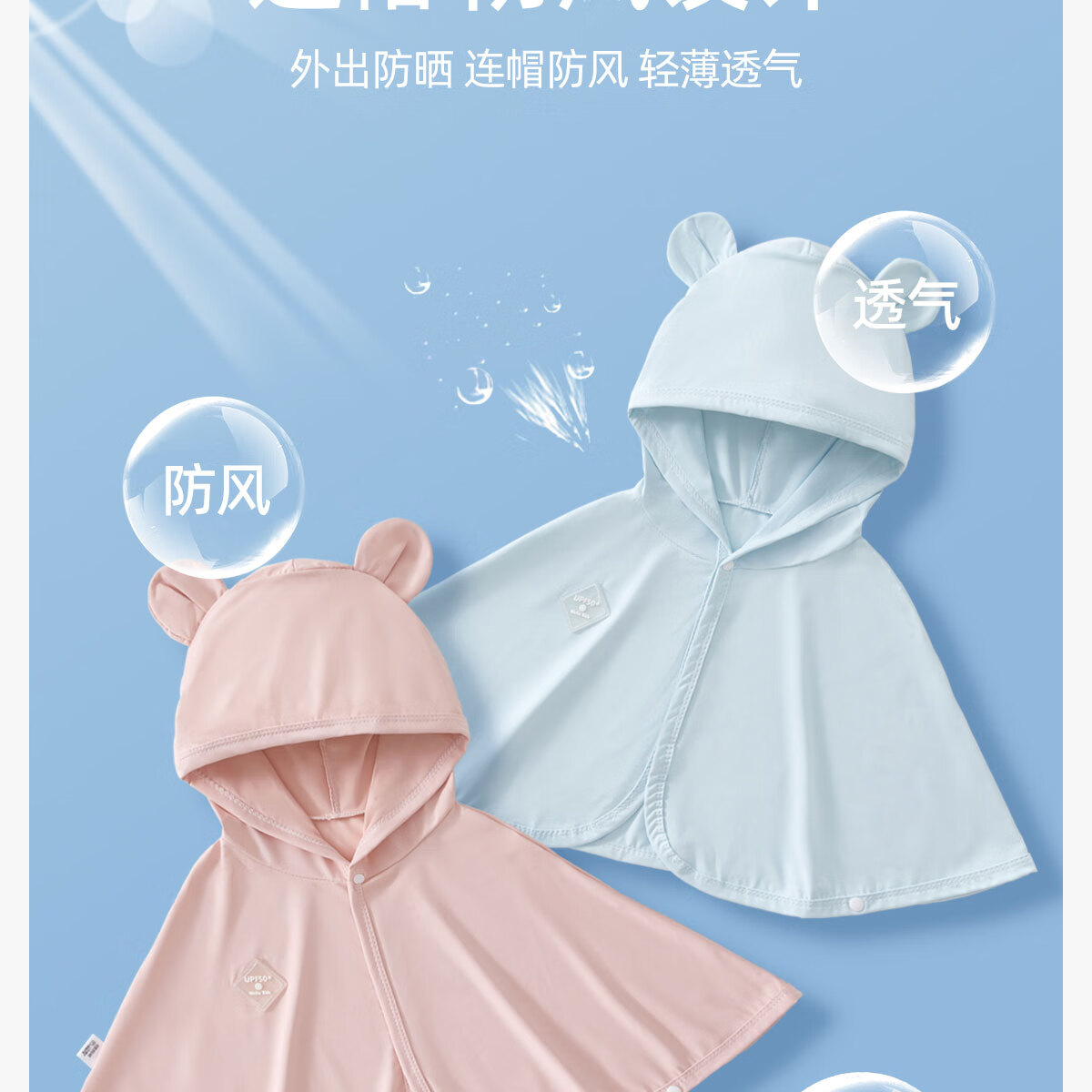 JOYNCLEON baby sun protection clothing, summer ice silk thin cape, breathable cloak, children's sun protection clothing, newborn outing clothing, blue UPF50+ UV discoloration 80 cm