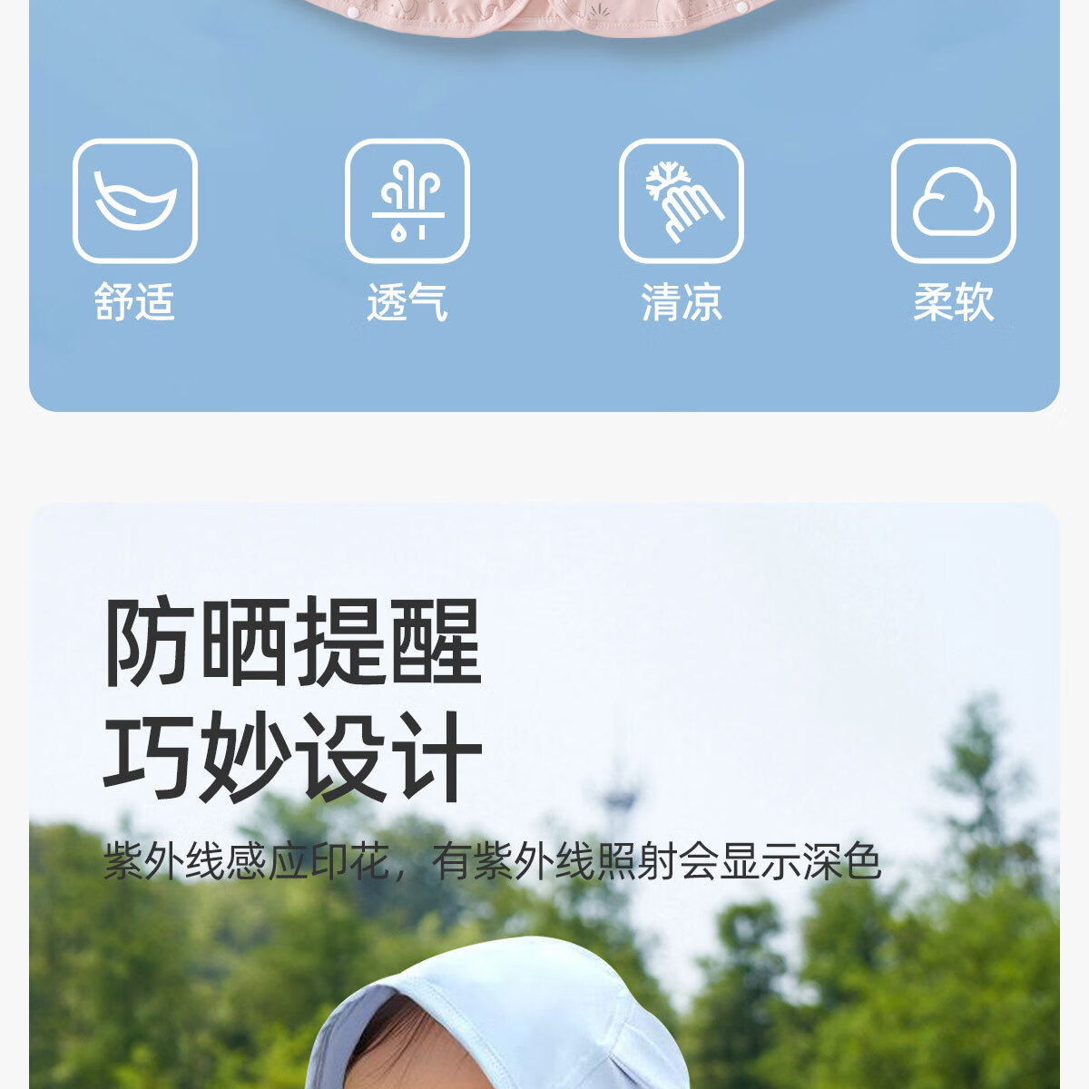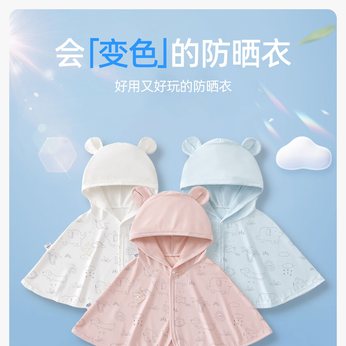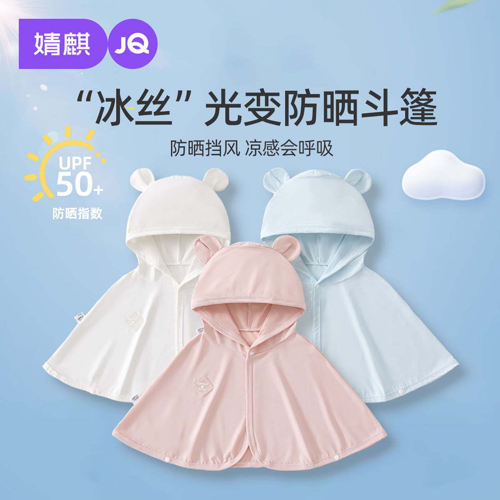JOYNCLEON baby sun protection clothing, summer ice silk thin cape, breathable cloak, children's sun protection clothing, newborn outing clothing, blue UPF50+ UV discoloration 80 cm