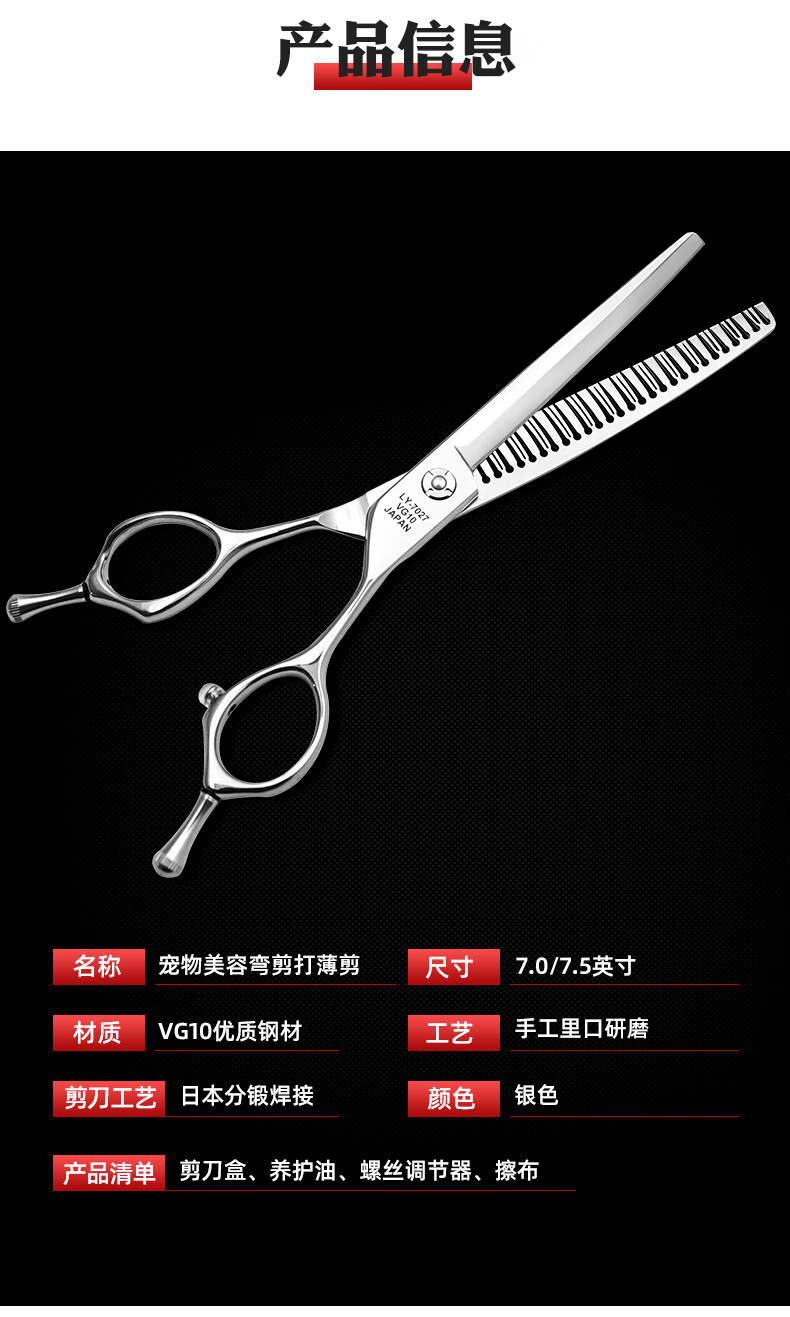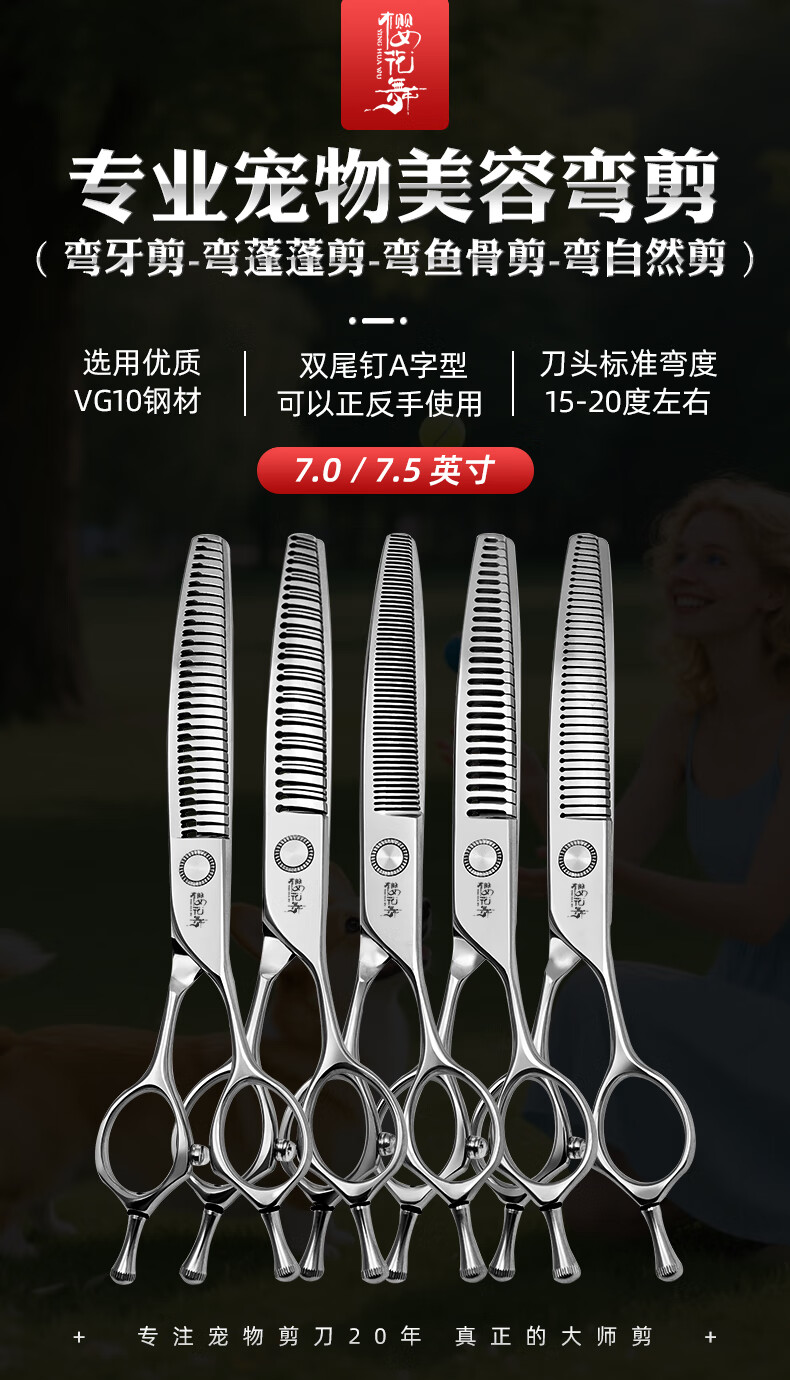 Sakura Dance professional pet grooming scissors 3D traceless vg10 material beautician competition grade curved natural curved fish bone tooth scissors curved pendant scissors 7 inches VG10 material