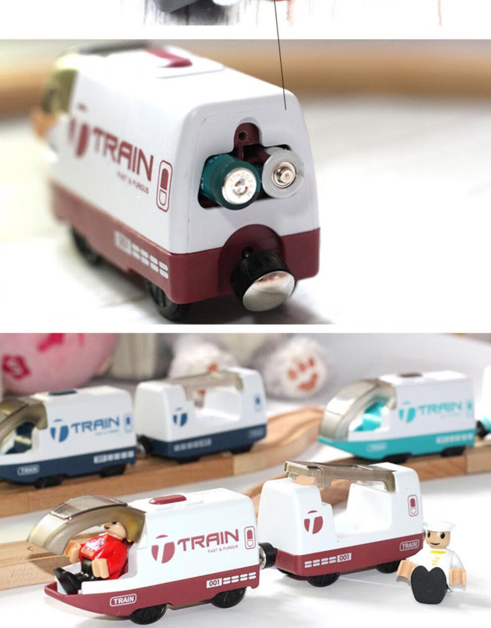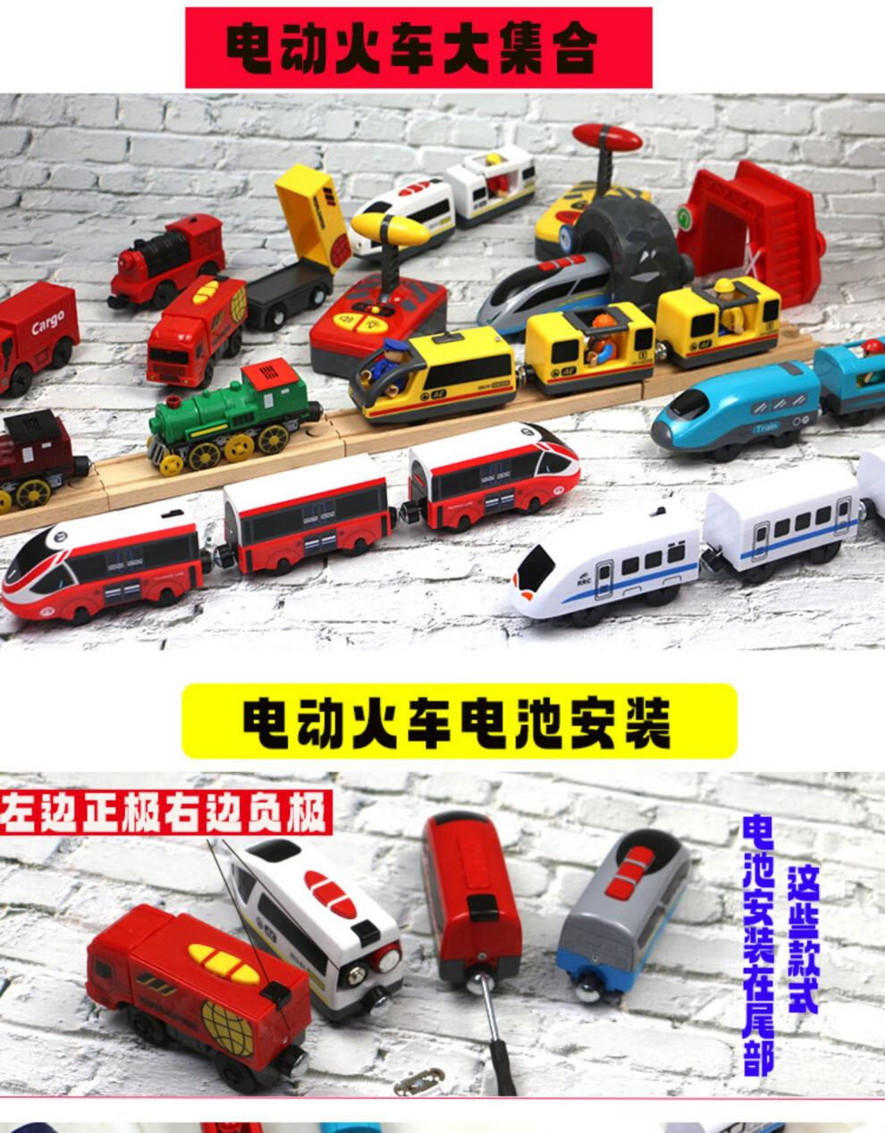 Qianqimeng electric locomotive is compatible with wooden Mitu wood BRIO wooden rail car small locomotive children's wooden rail red locomotive + carriage + unpowered head