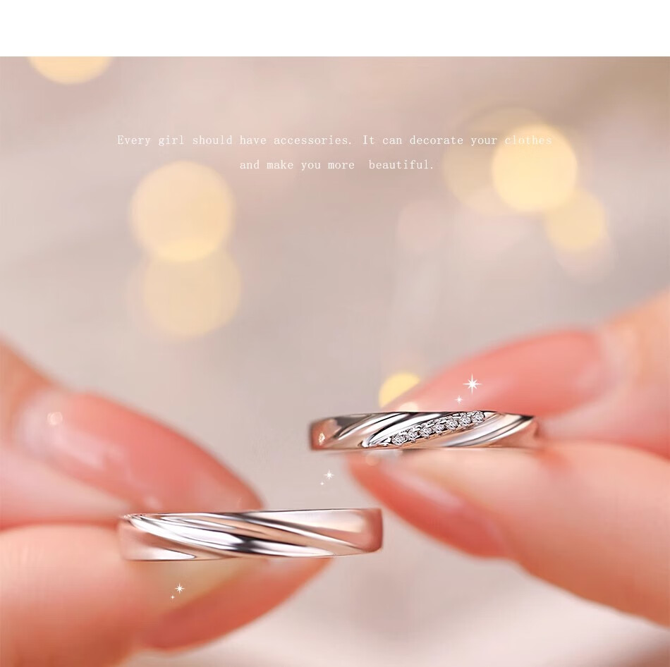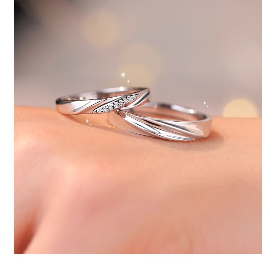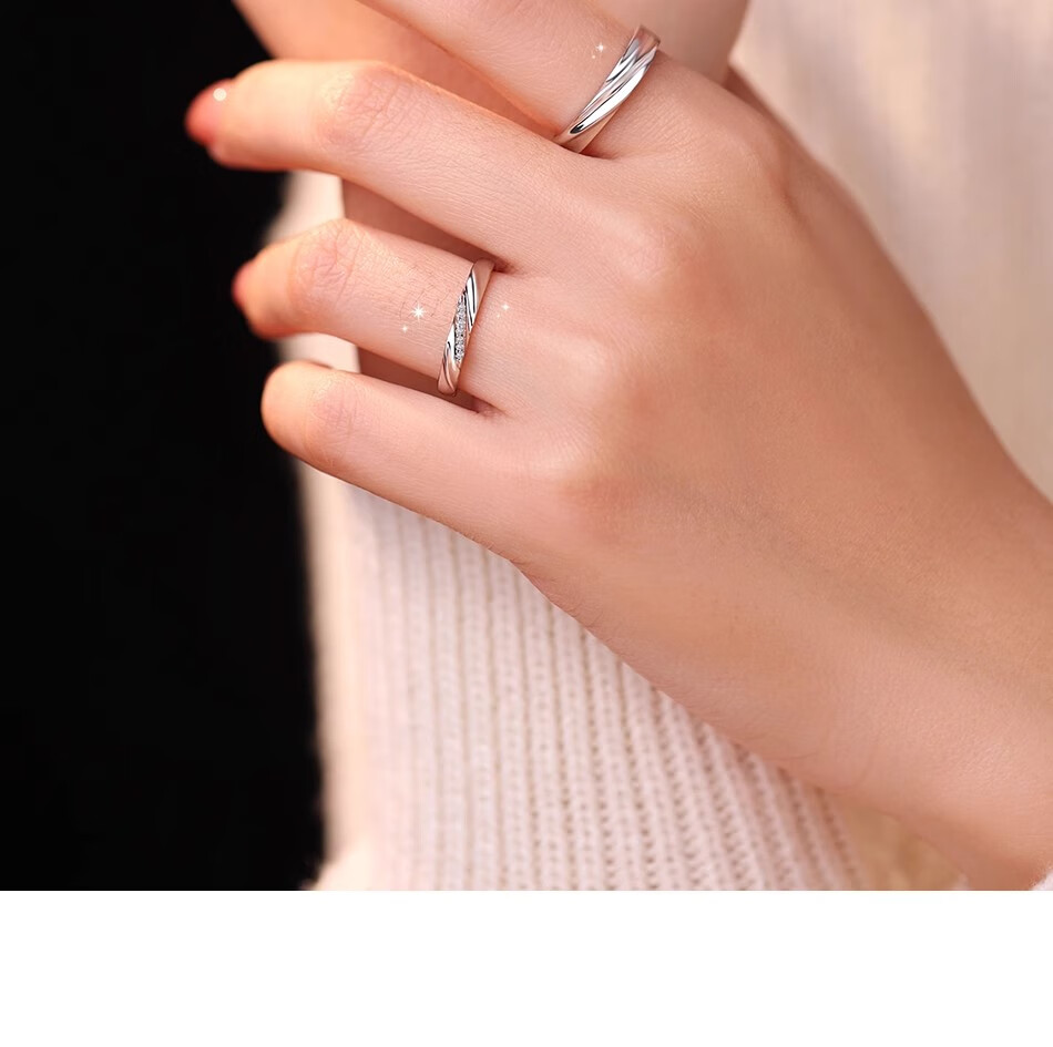 Moissanite couples model light luxury niche pair of diamond rings wedding rings Chinese Valentine's Day sterling silver platinum plated pt950 ring light luxury model - love together women's ring - rose gift box default live mouth closed remarks circle number
