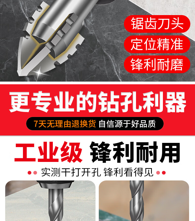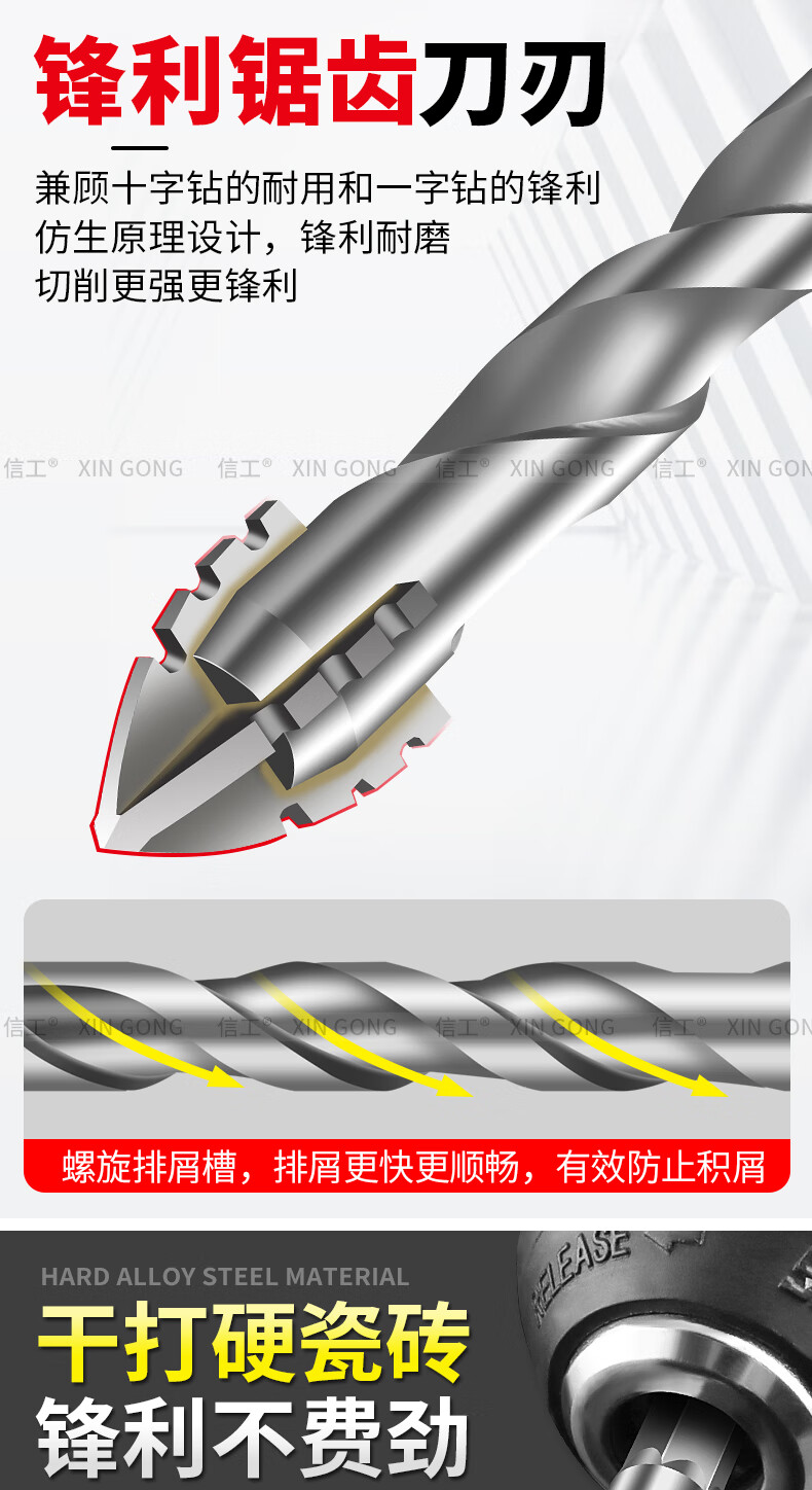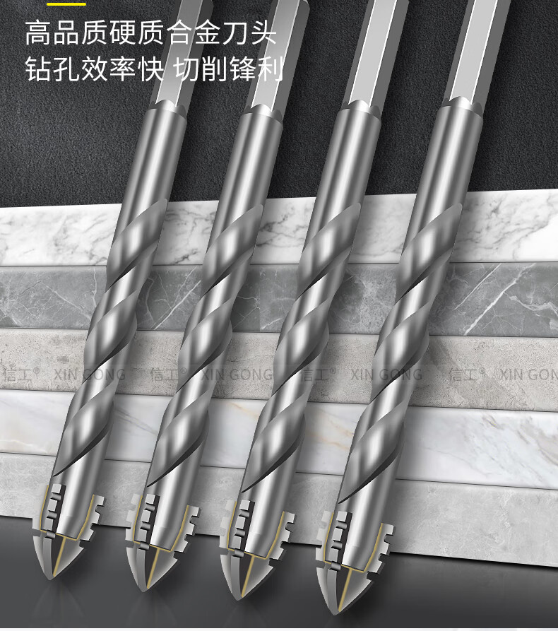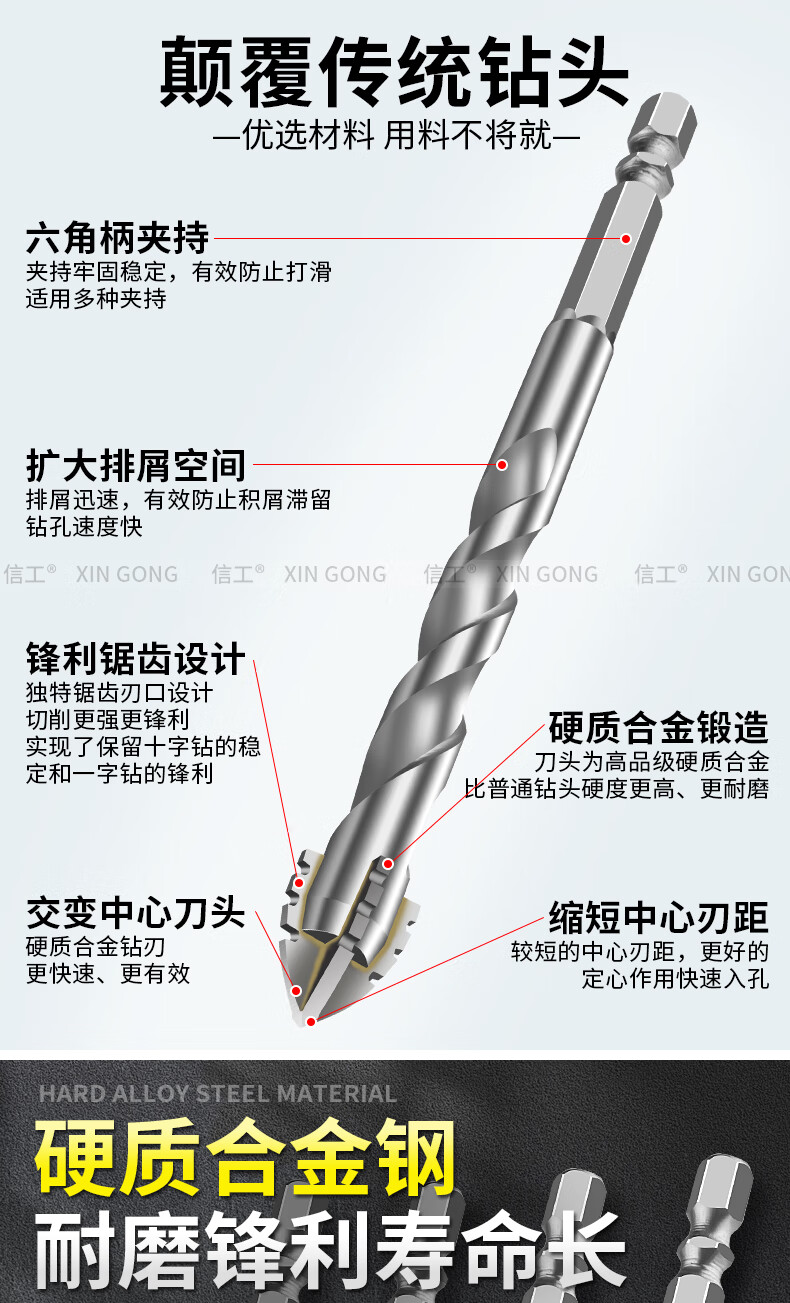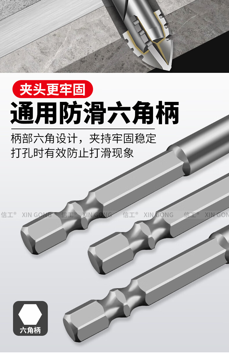 XinGong four-blade sawtooth eccentric drill bit concrete cast iron full tile dry electric drill drilling tool high hardness hexagonal handle 3mm silver + green + pink + orange + red 5 pieces in total