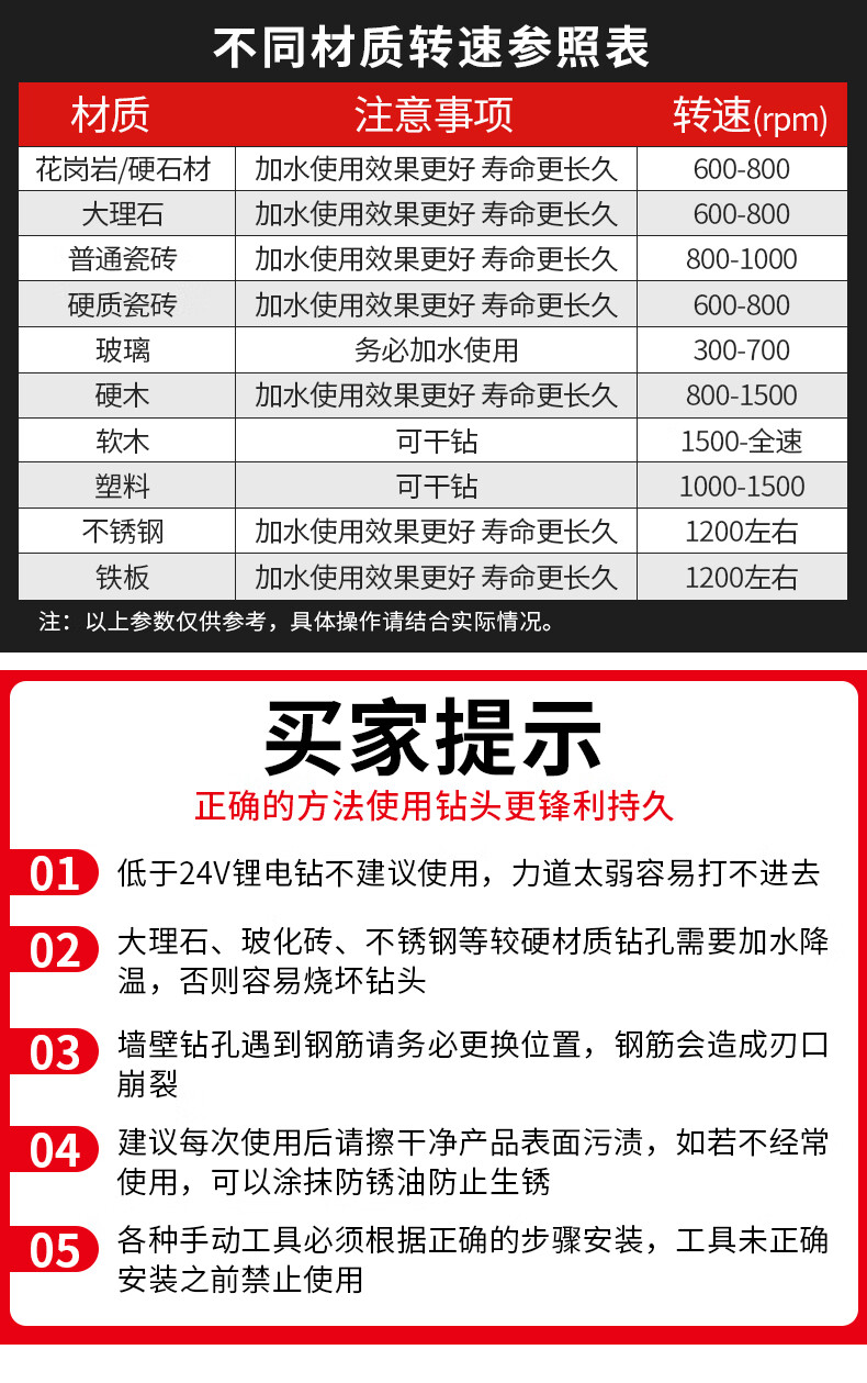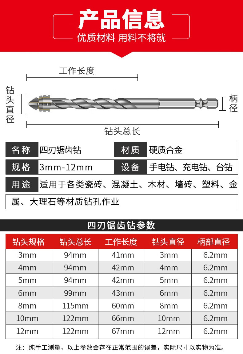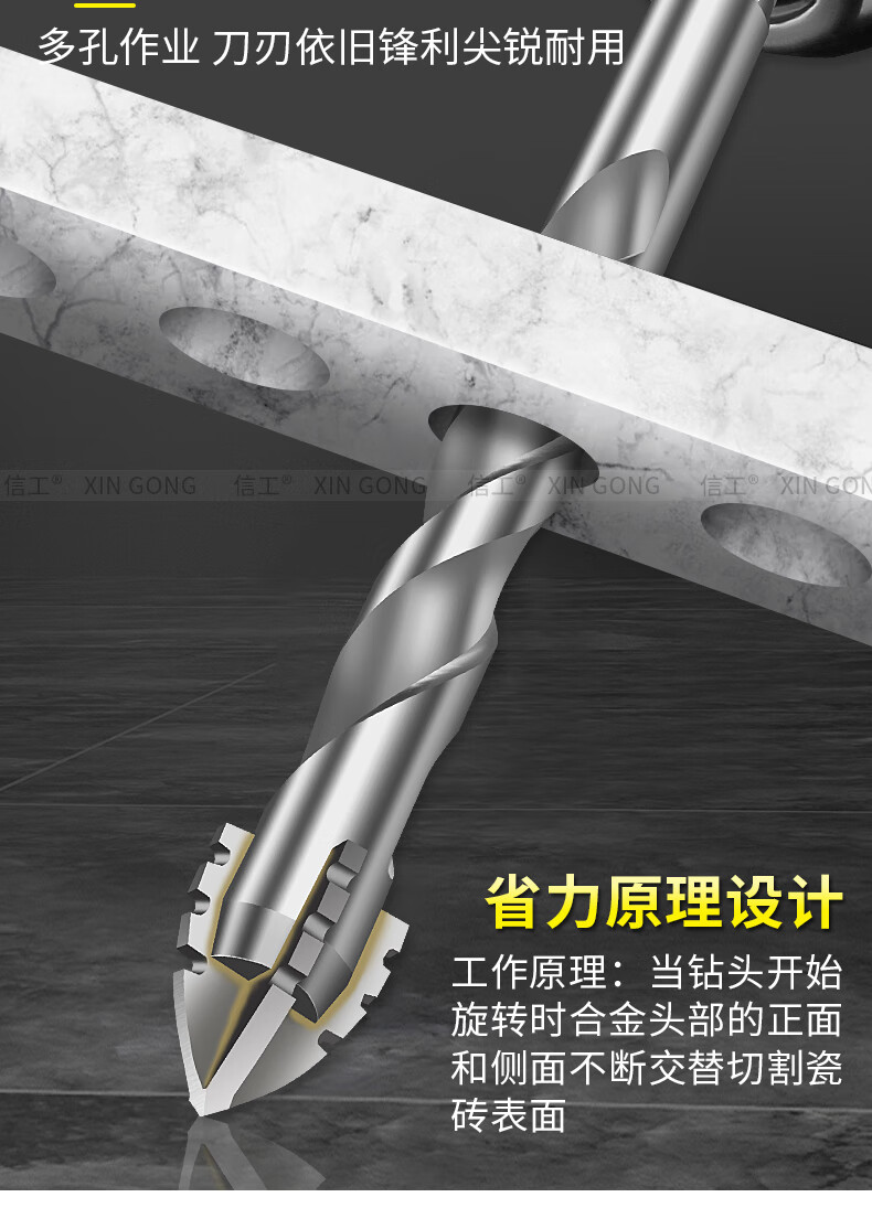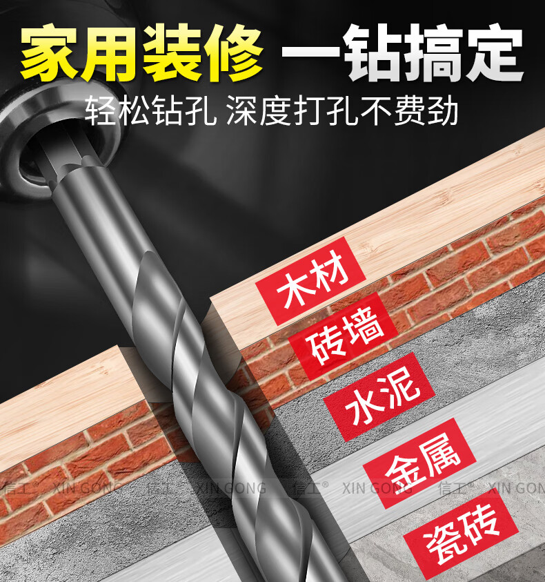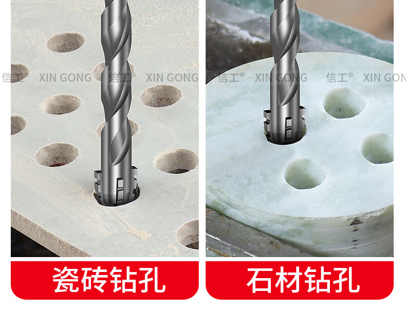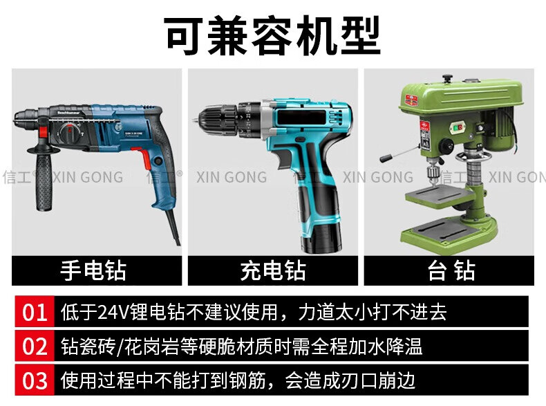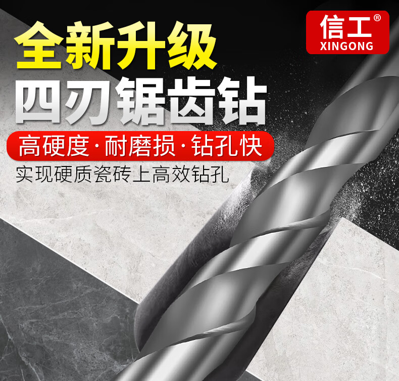 XinGong four-blade sawtooth eccentric drill bit concrete cast iron full tile dry electric drill drilling tool high hardness hexagonal handle 3mm silver + green + pink + orange + red 5 pieces in total