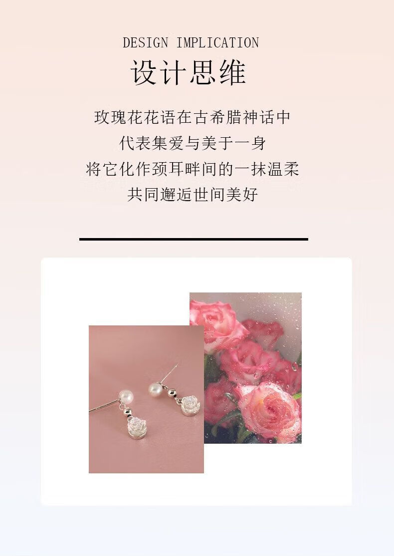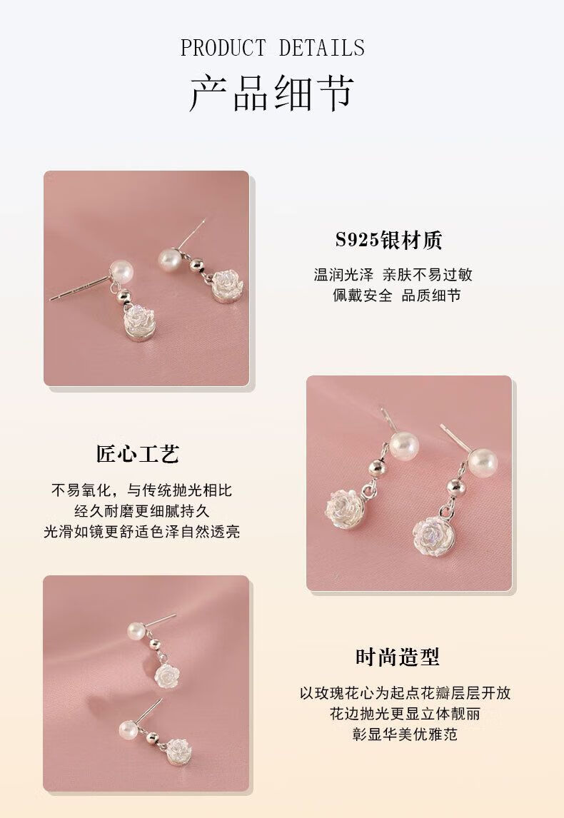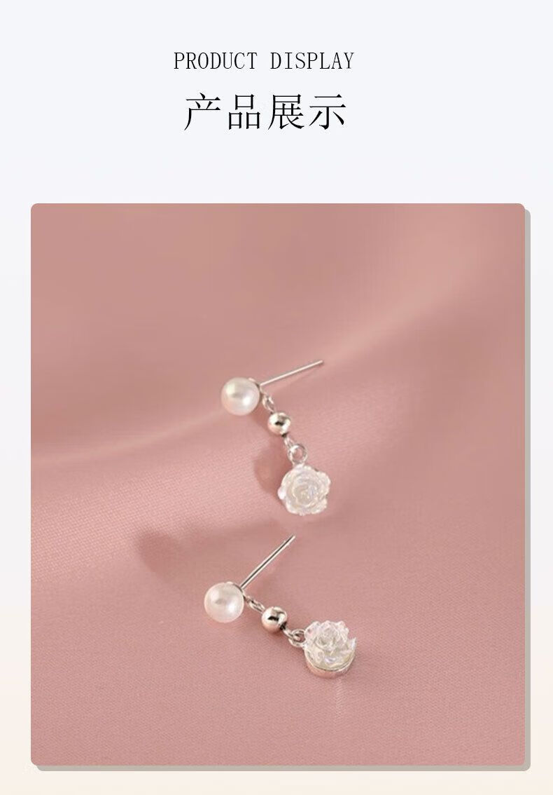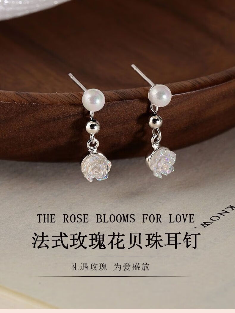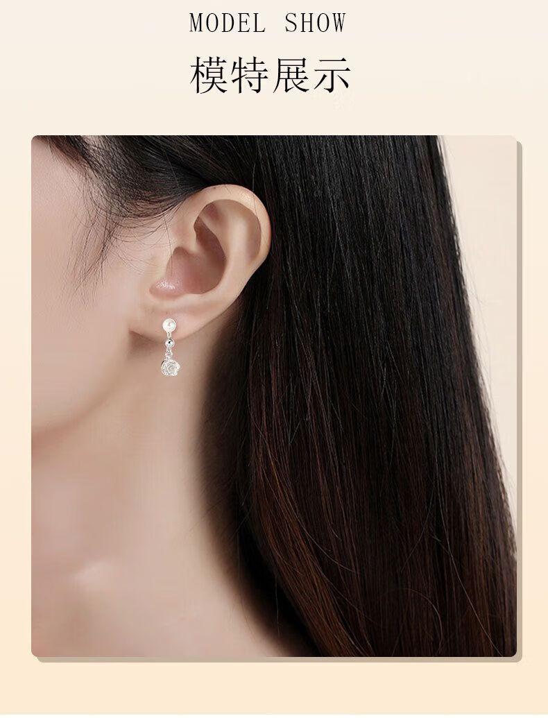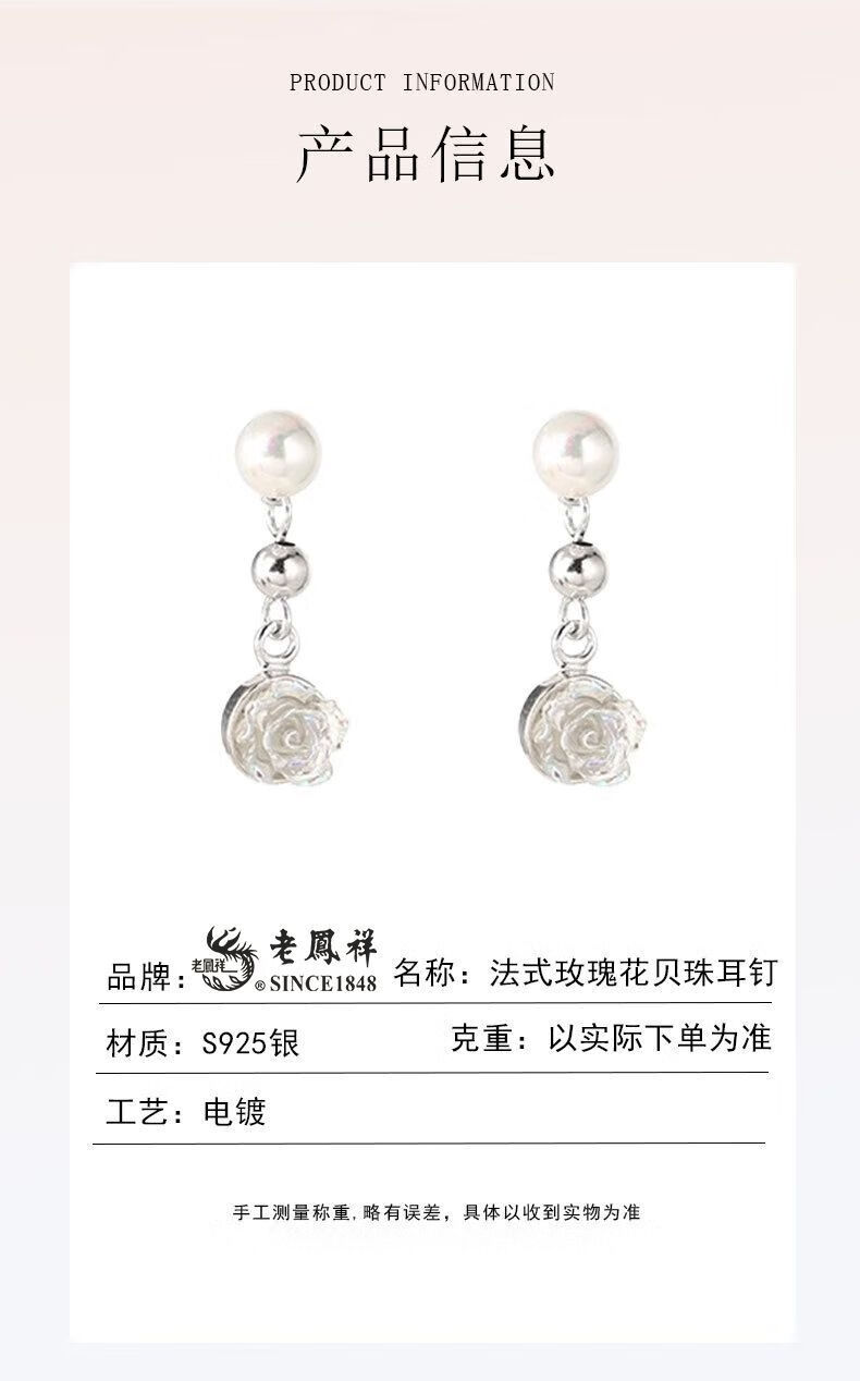 Lao Fengxiang S925 Silver French Rose Beads Earrings Women's Earrings Earrings Valentine's Day Birthday Gift for Girlfriend and Lover S925 Silver French Rose Beads Earrings