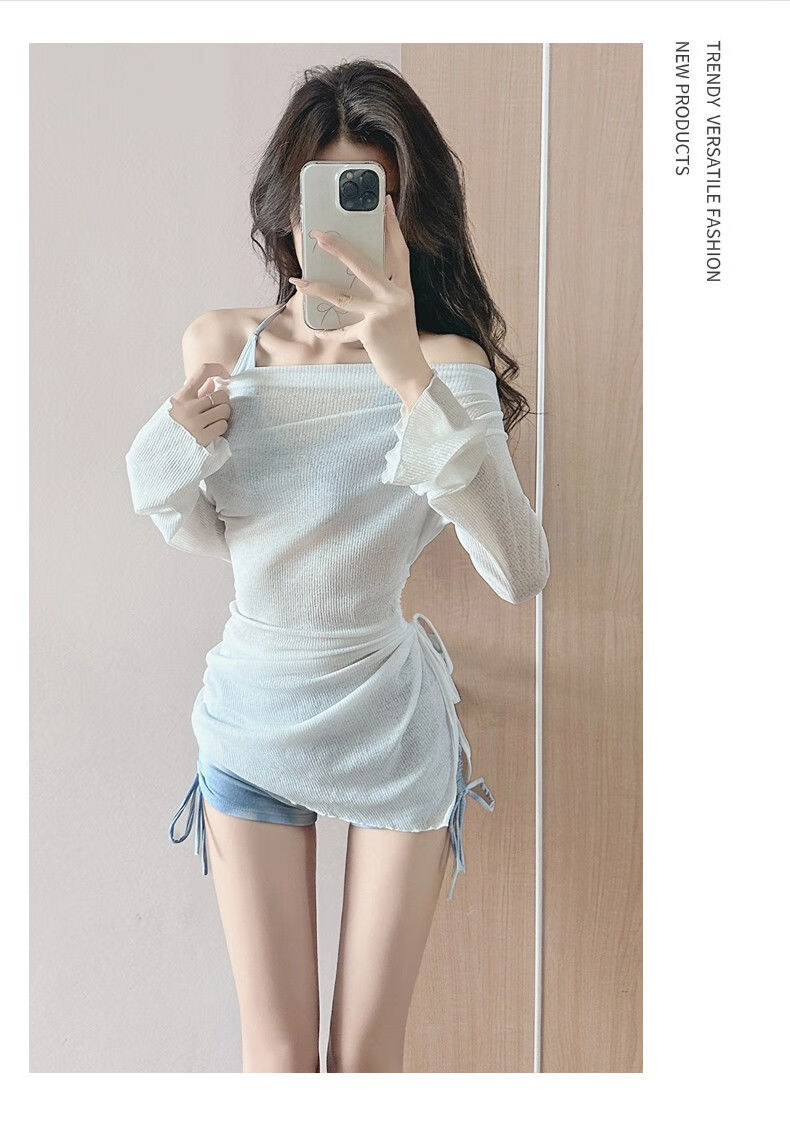 Bangbo swimsuit female pure lust seaside beach bikini cover-up boxer split swimsuit three-piece hot spring swimsuit denim blue swimsuit three-piece set with chest pad one size (80-120Jin Jin is equal to 0.5 kg)