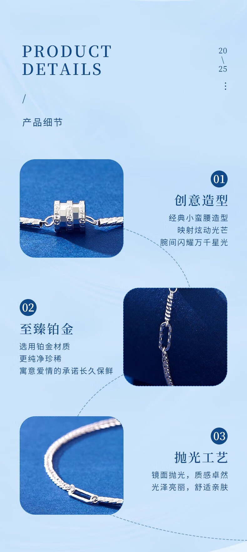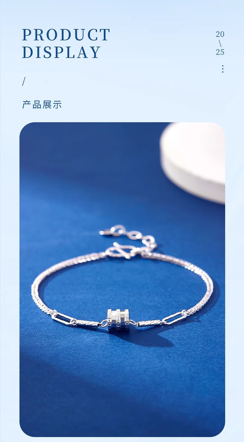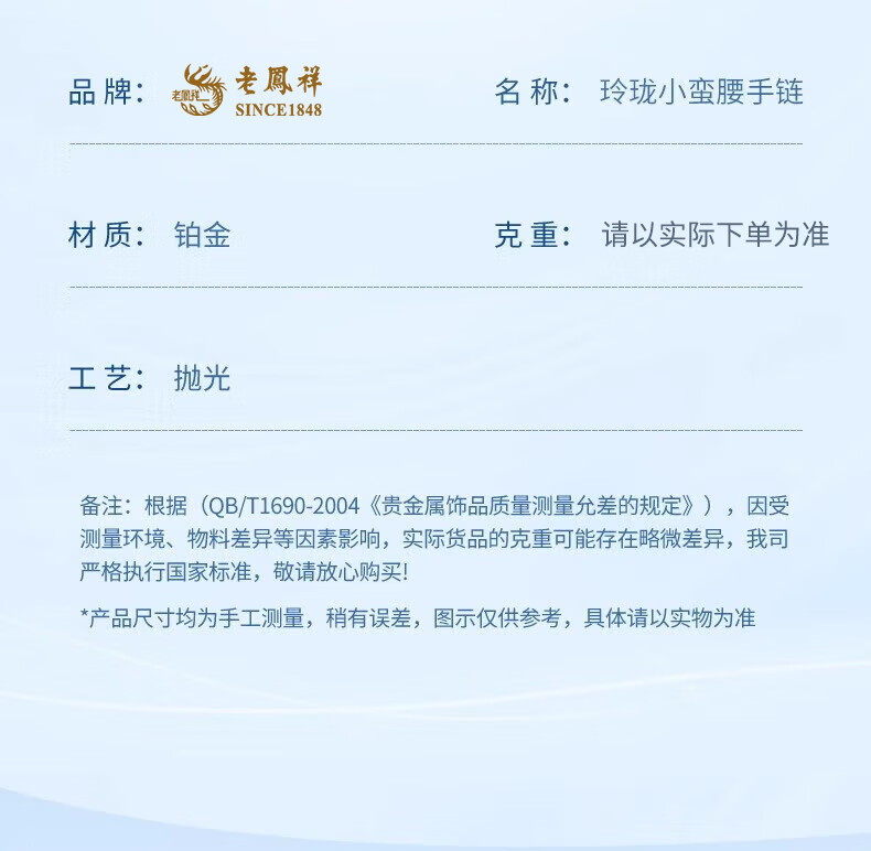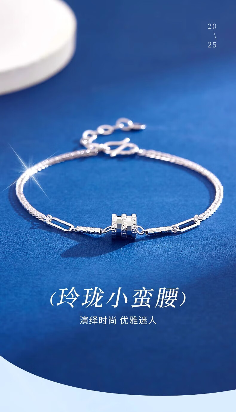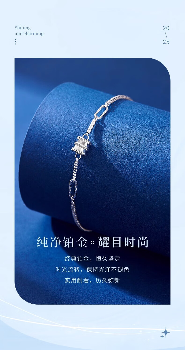 Lao Fengxiang PT950 Platinum Small Waist Bracelet New Platinum Simple Bracelet Birthday Gift Anniversary Gift for Girlfriend Platinum Small Waist Bracelet About 3.7g Brand Gift Box