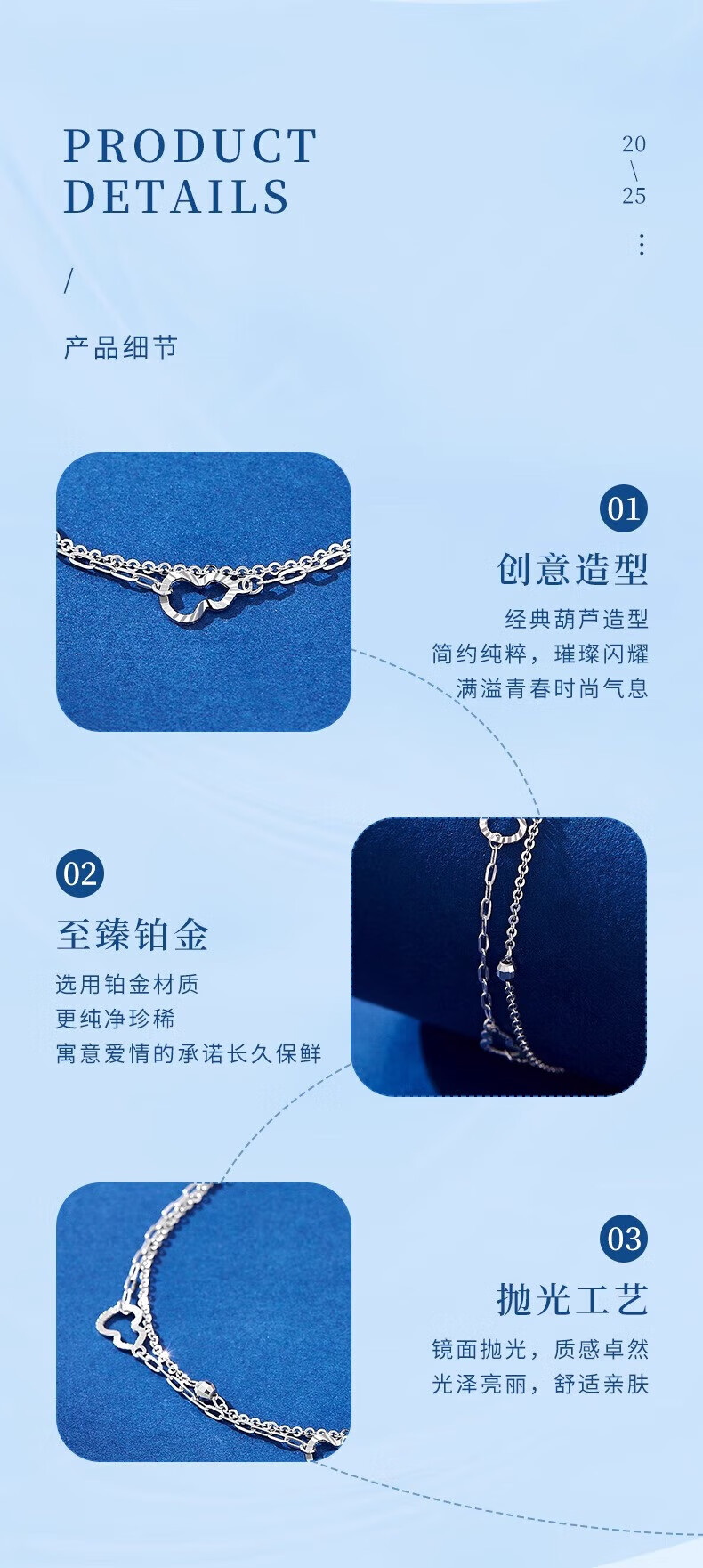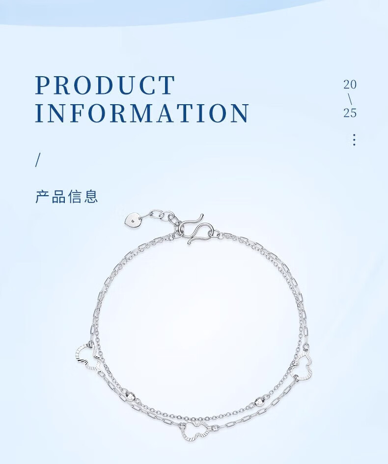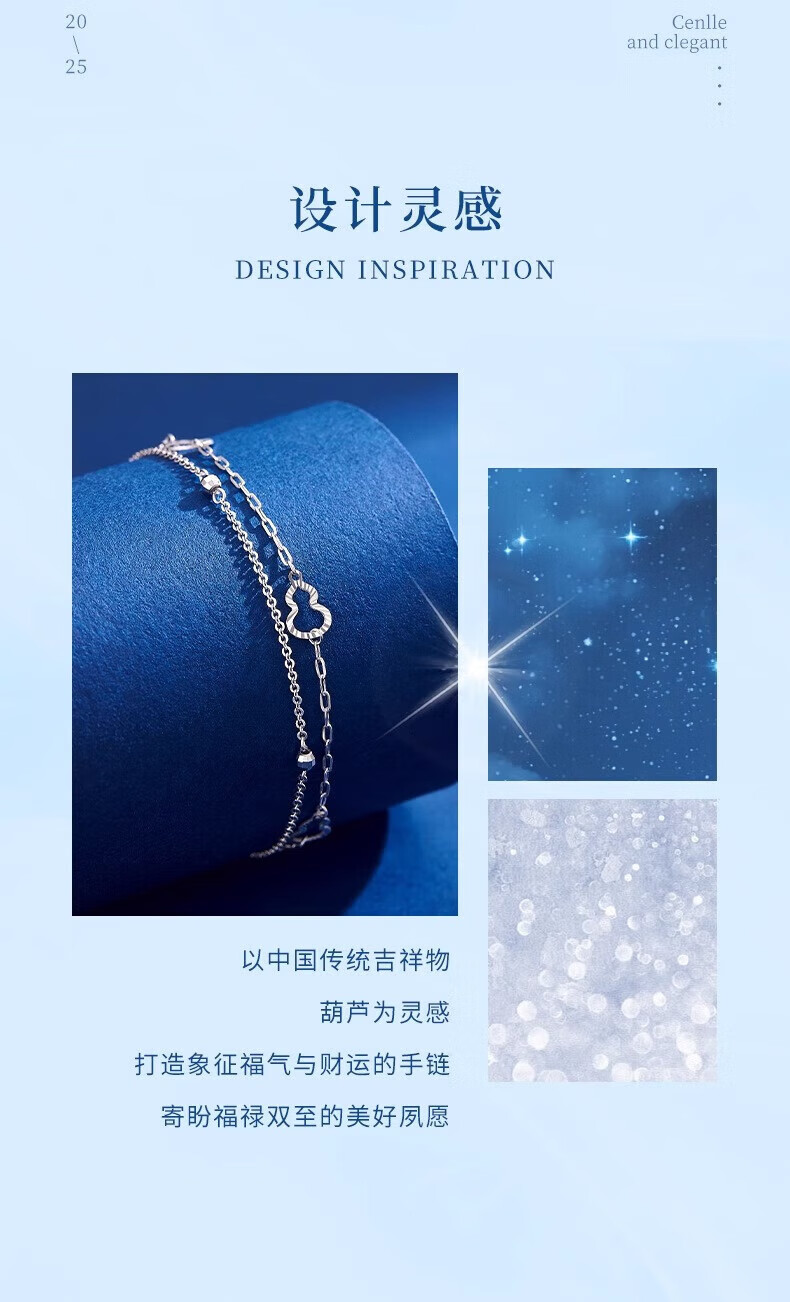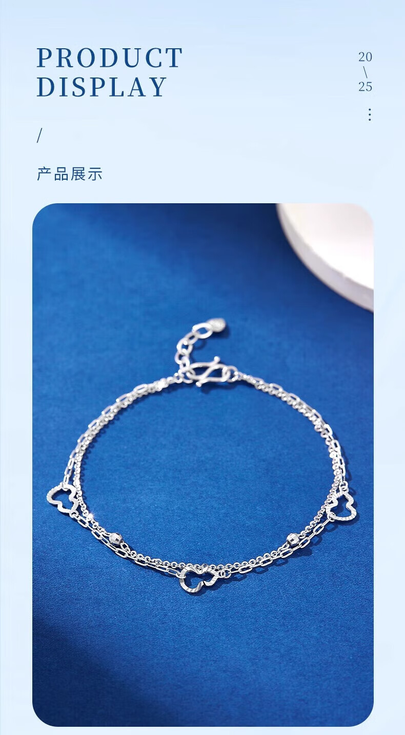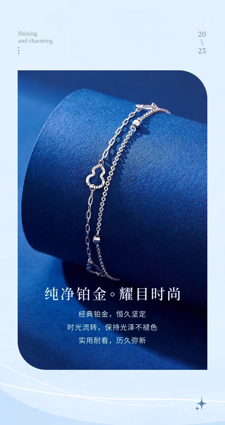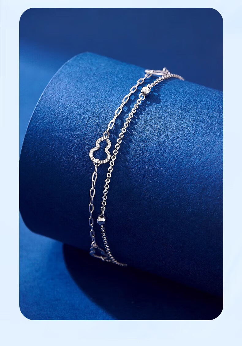Lao Fengxiang PT950 platinum double-layered gourd bracelet, fashionable women's platinum bracelet, Chinese Valentine's Day Teacher's Day high-end gift box for girlfriend, platinum double-layered gourd bracelet, about 2.8g + exciting gift box