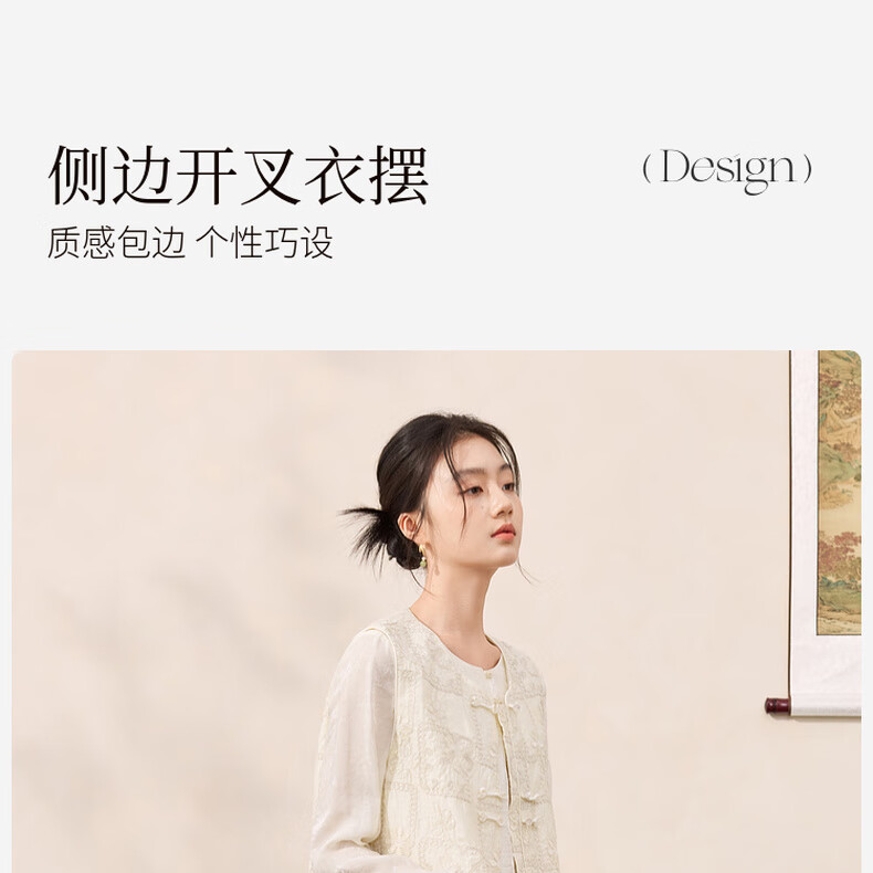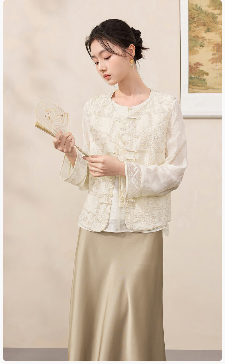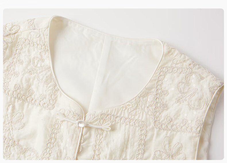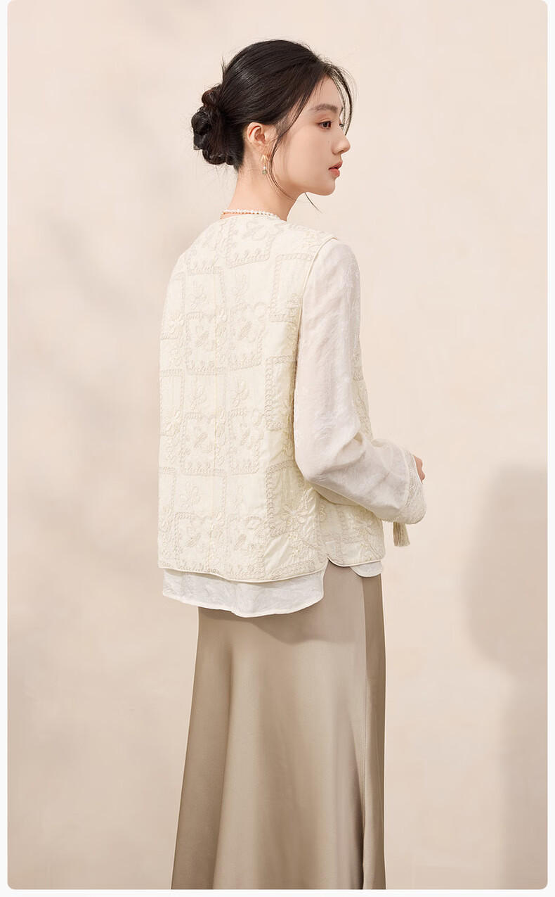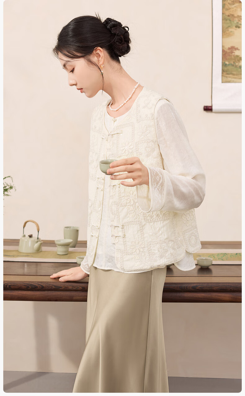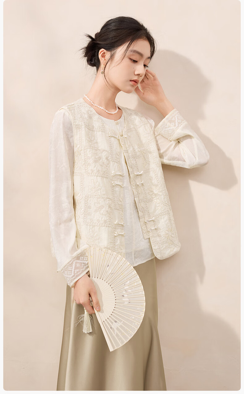 Xiangying New Chinese Style National Style Vest Women's 2026 Spring New Round Neck Vest Heavy Industry Embroidered Disc Button Stacking Top Lubai M 160/84A/95-110Jin Jin is equal to 0.5 kg
