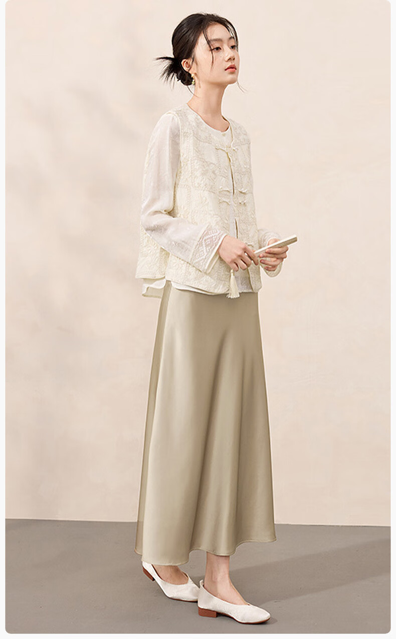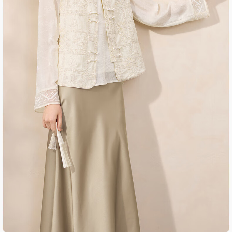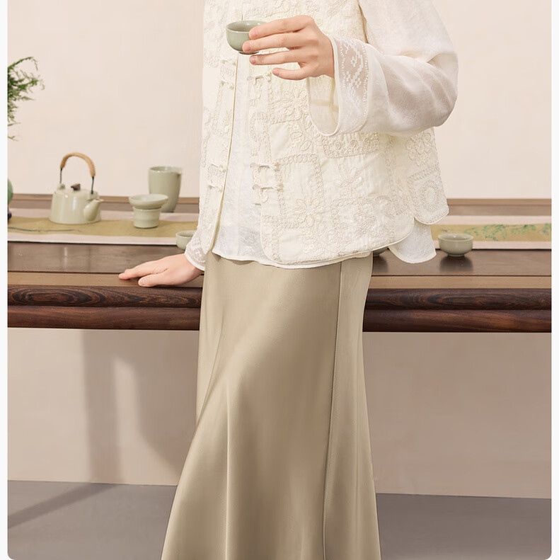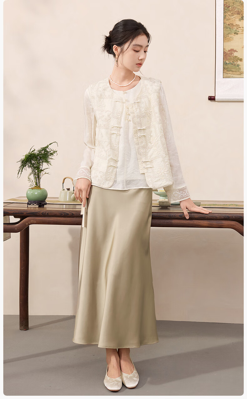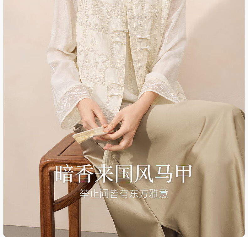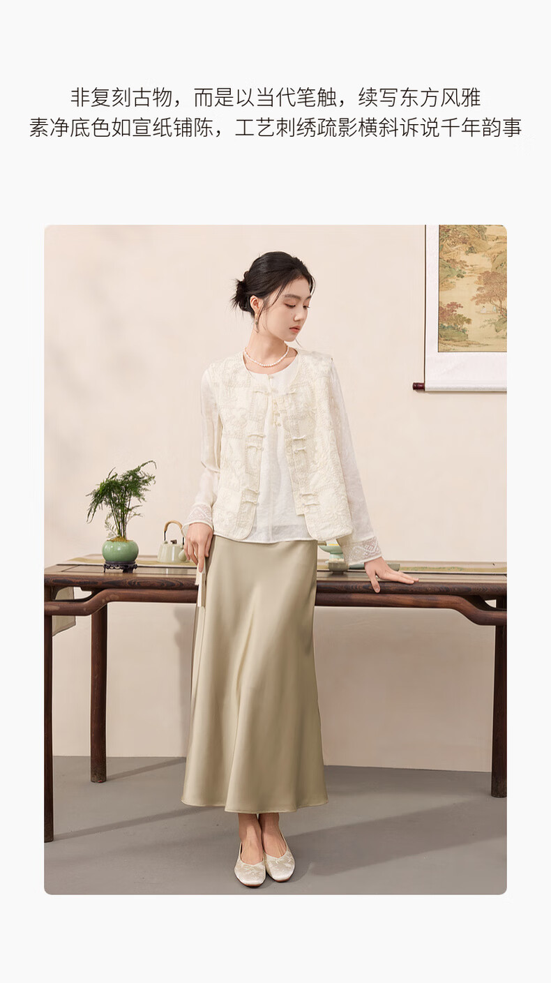 Xiangying New Chinese Style National Style Vest Women's 2026 Spring New Round Neck Vest Heavy Industry Embroidered Disc Button Stacking Top Lubai M 160/84A/95-110Jin Jin is equal to 0.5 kg