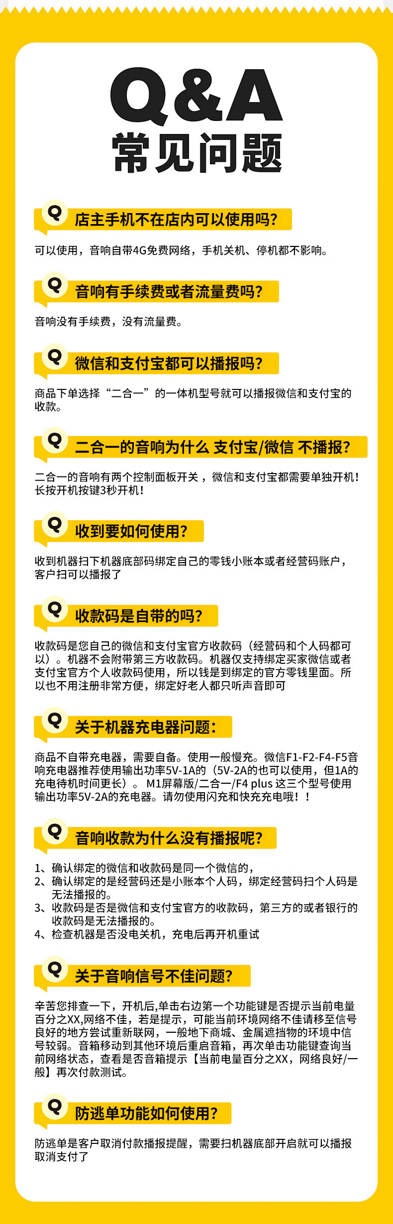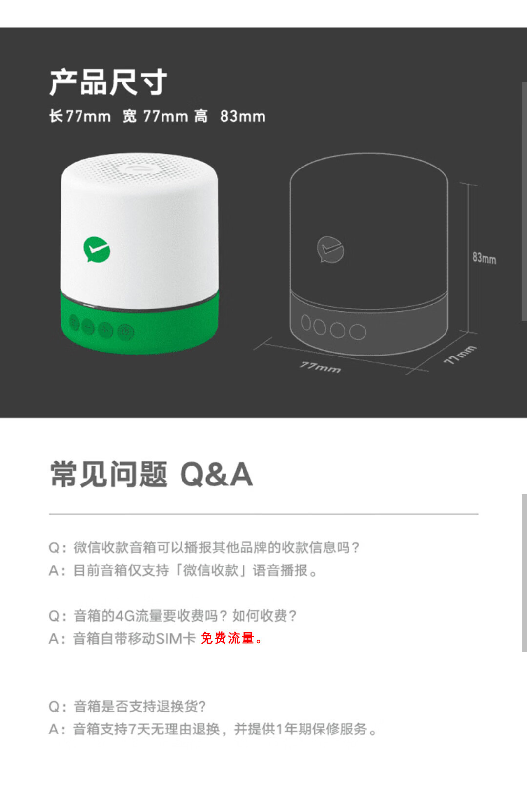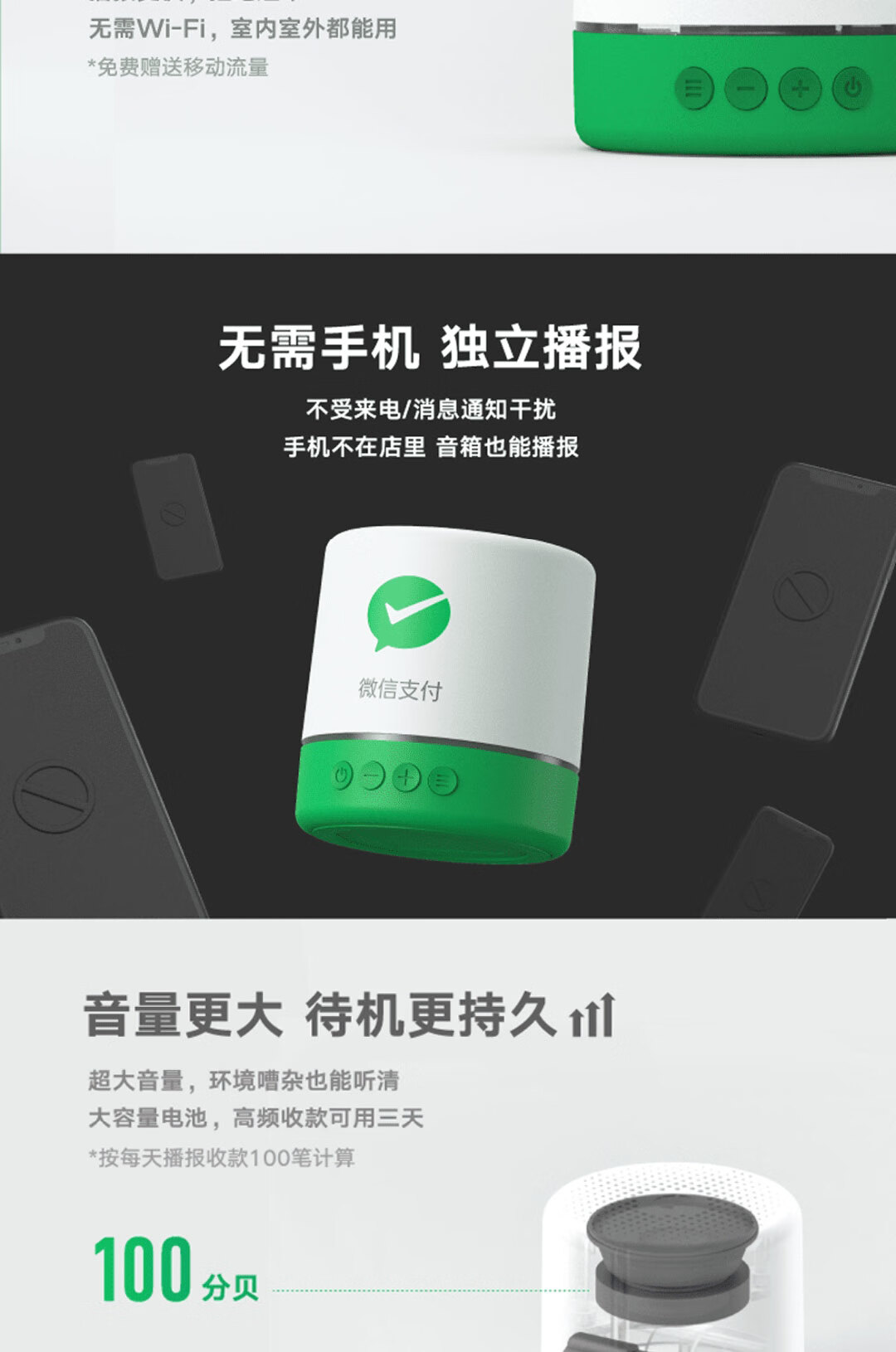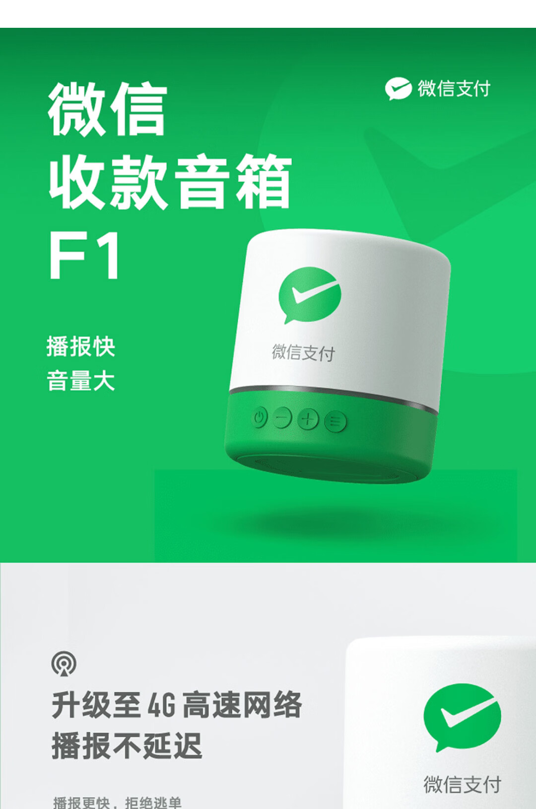 Zhichu Digital (ZCSM) WeChat payment official audio F1 comes with network 4G version. Even when the mobile phone is turned off, it can broadcast QR code payment voice announcer stall setting tips. WeChat F5 top version. Multi-person broadcast + cancel payment broadcast.