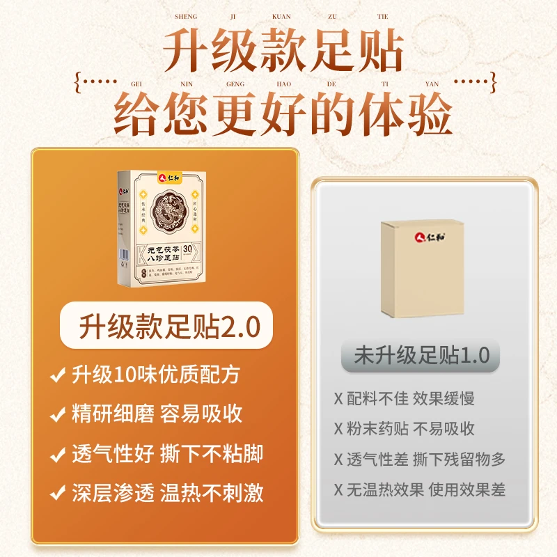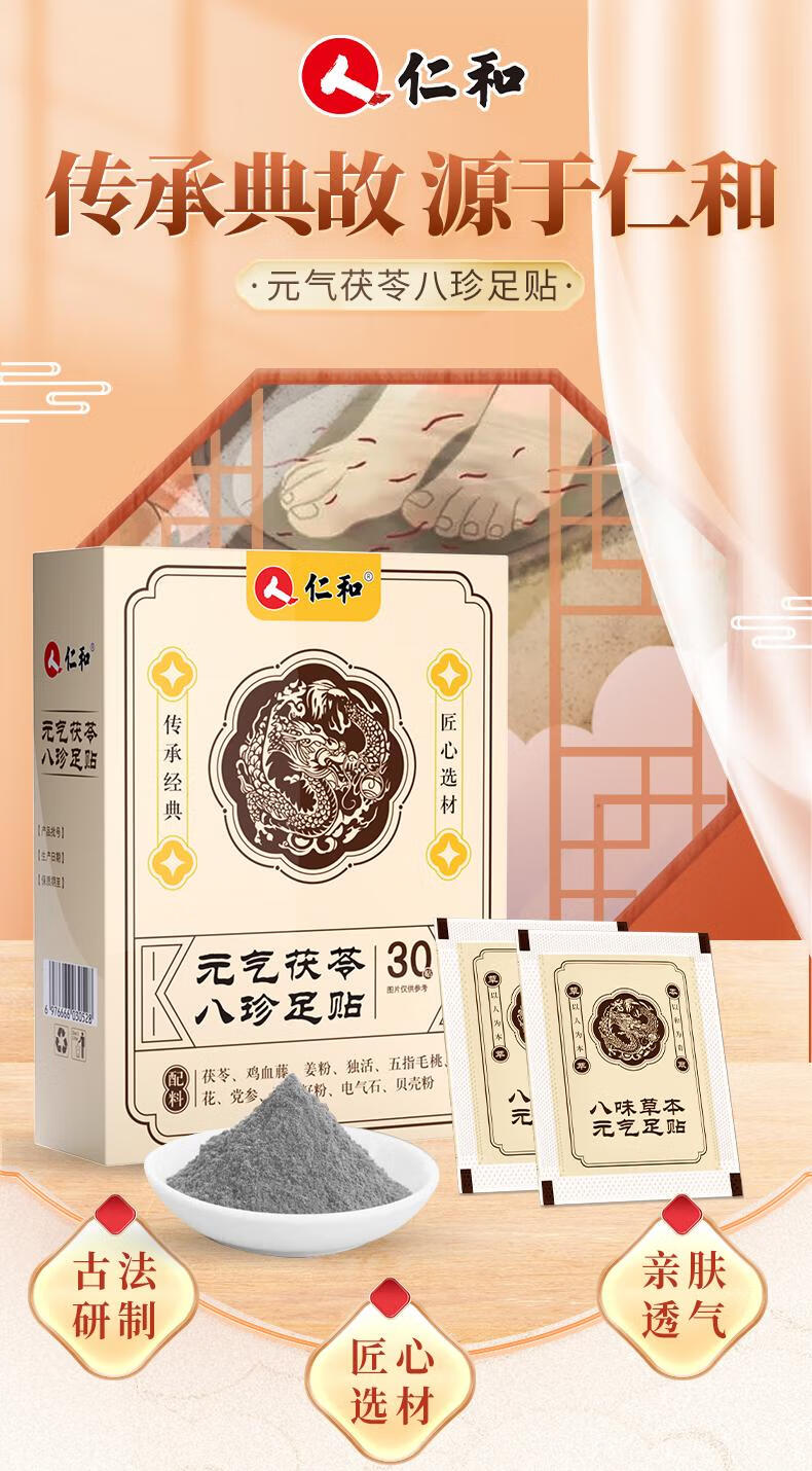 Renhe Renhe Foot Patch, Poria, Five-fingered Peach, Codonopsis Codonopsis, Chicken Spathensis Ginger Powder, Independent Living Safflower Heritage Formula, Authentic, 2 boxes for real hair, periodic filling (patch at night, tear off in the morning)