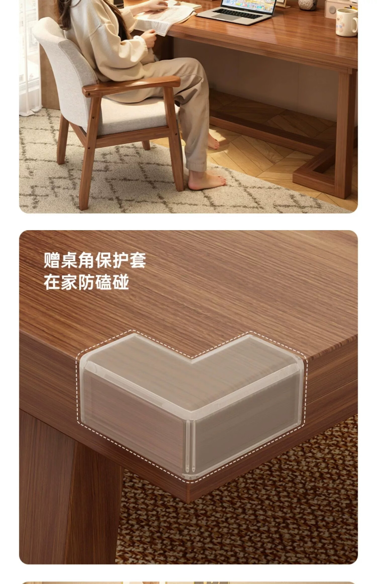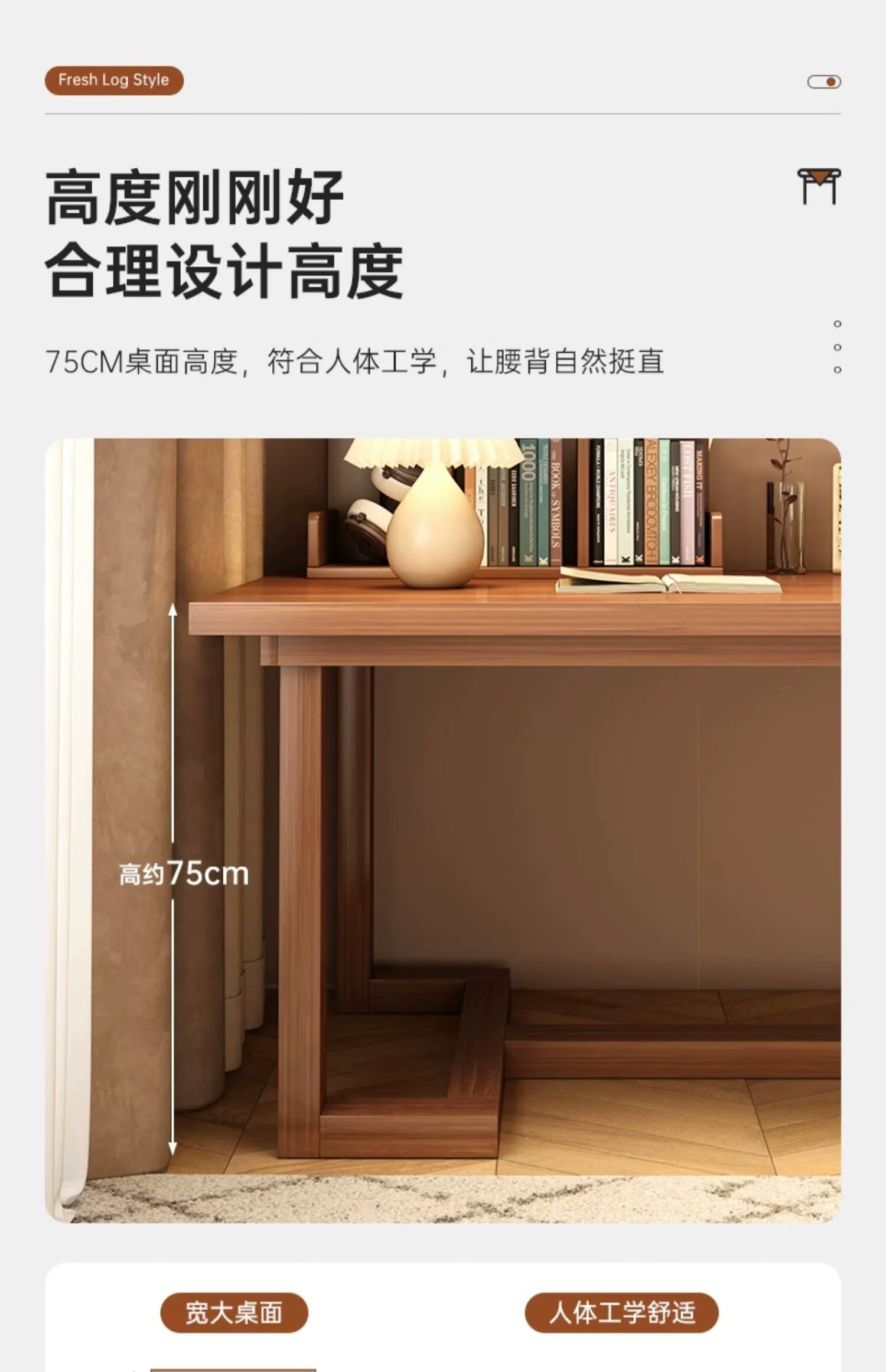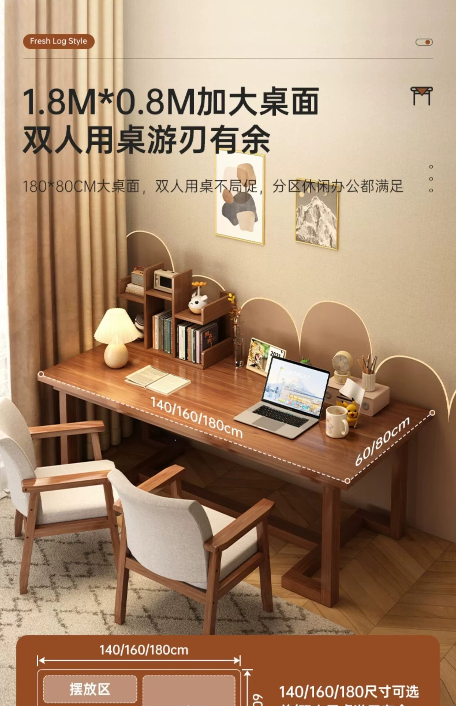 Library desk long workbench solid wood home de-living room double desk student reading study table walnut color 180*80*75cm