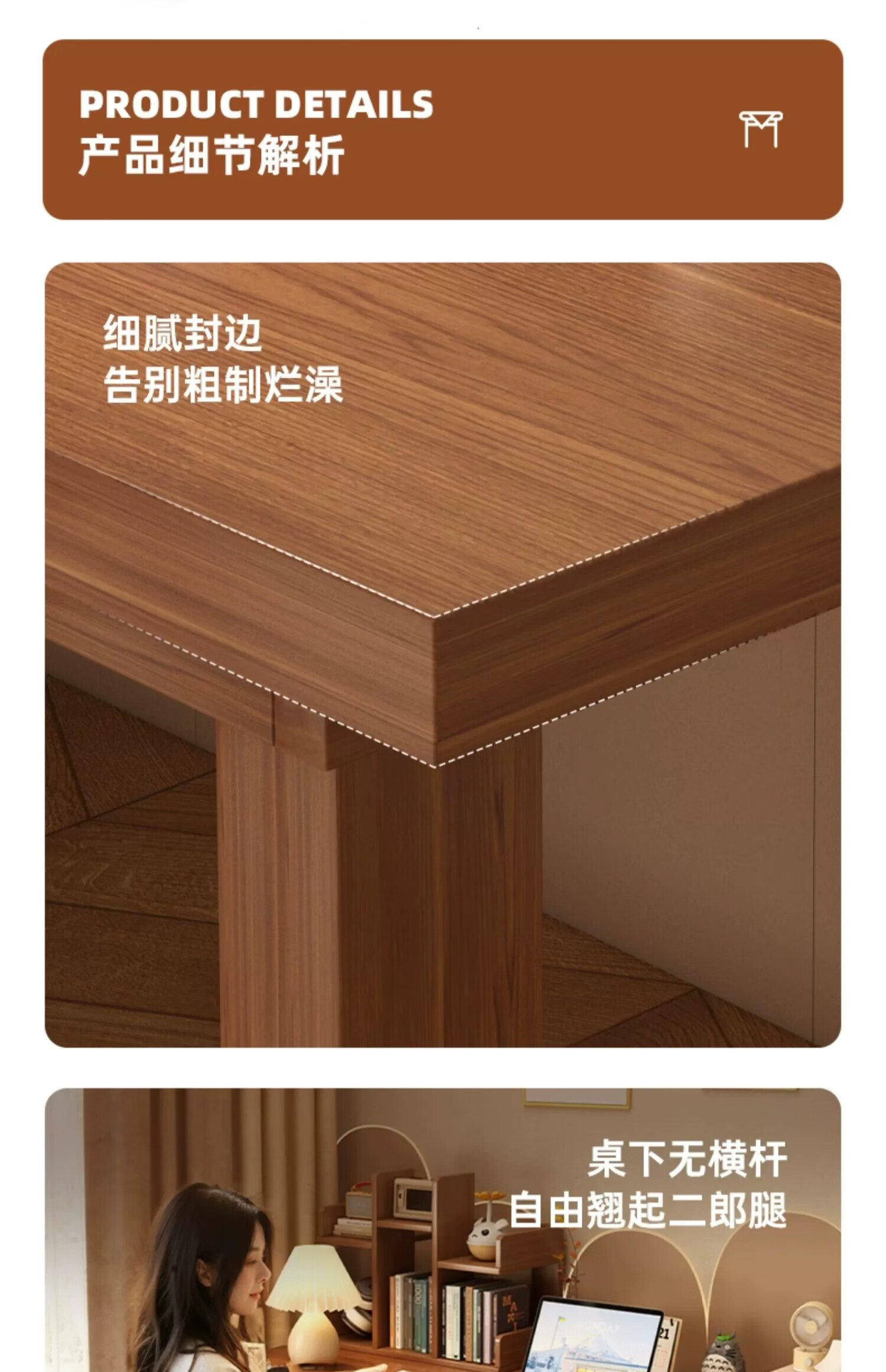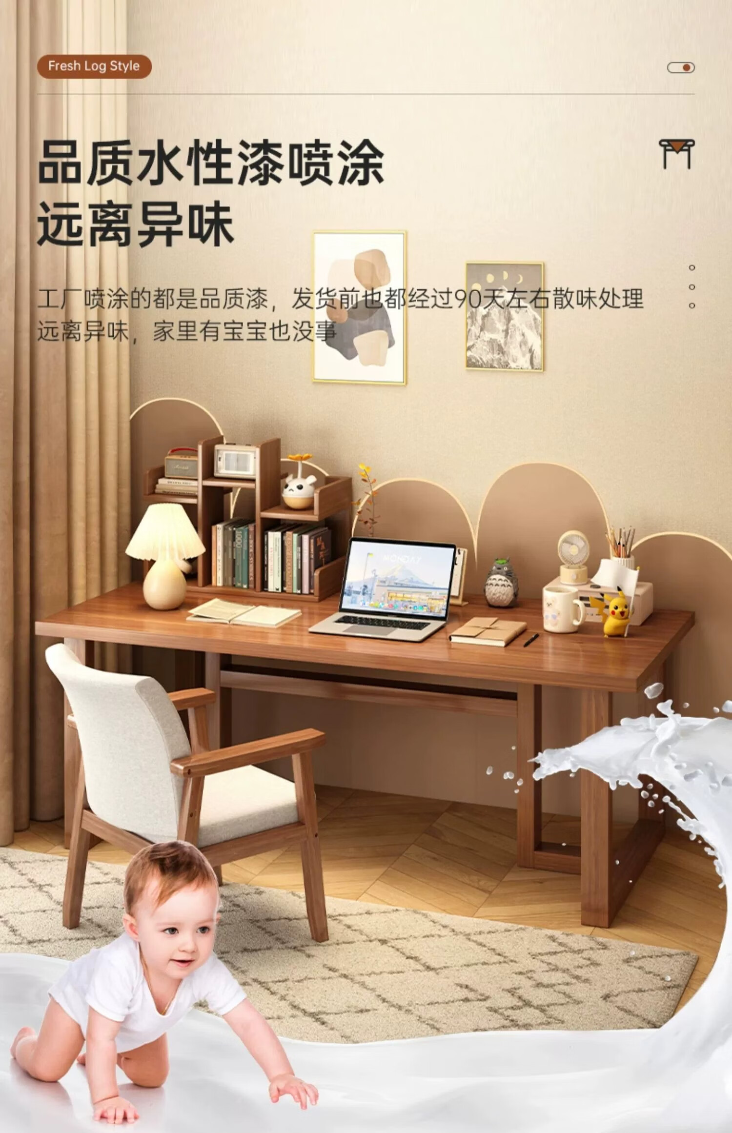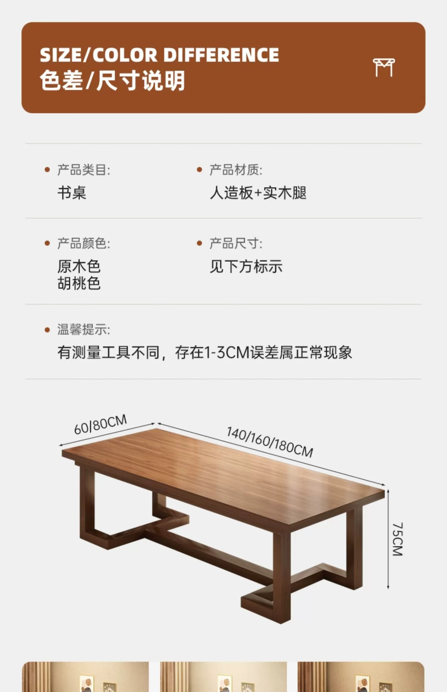 Library desk long workbench solid wood home de-living room double desk student reading study table walnut color 180*80*75cm