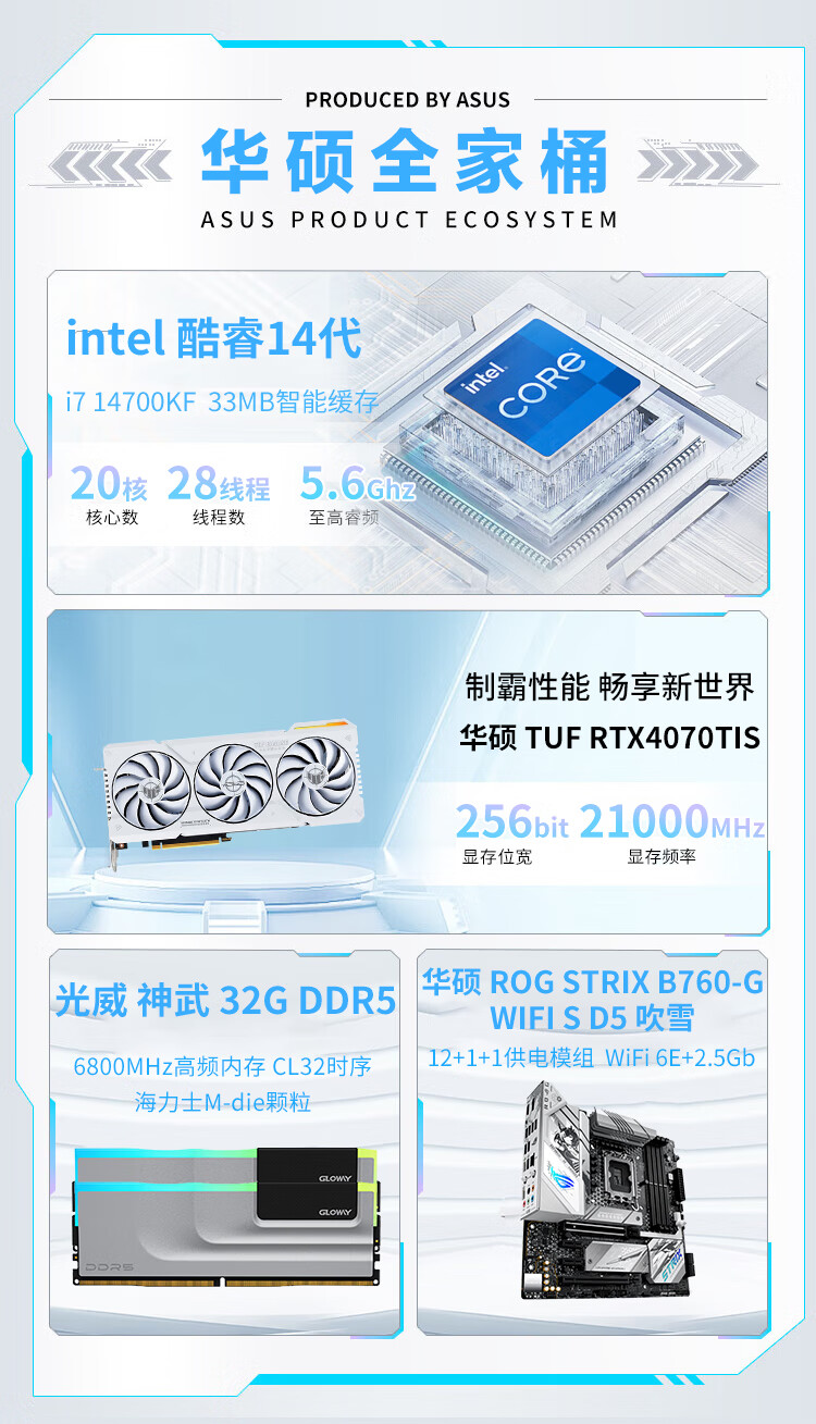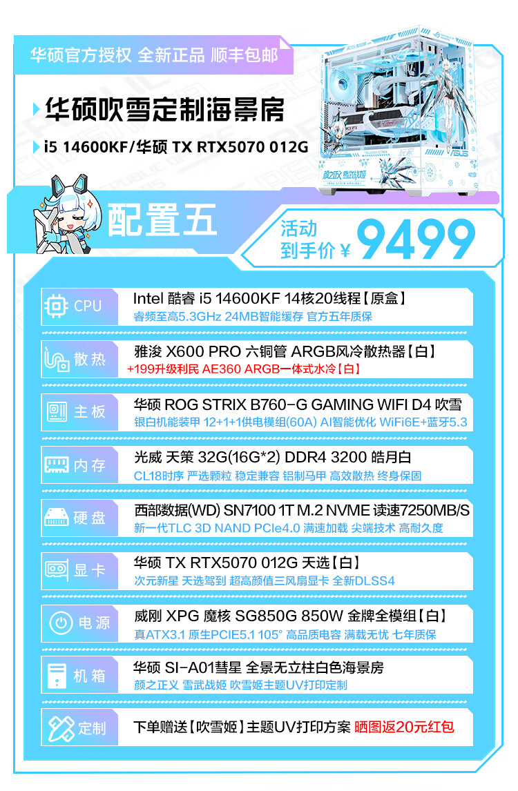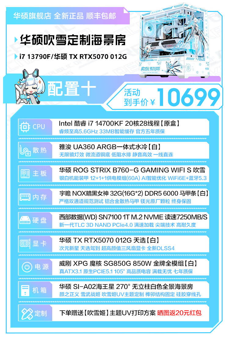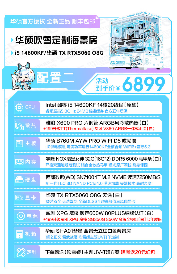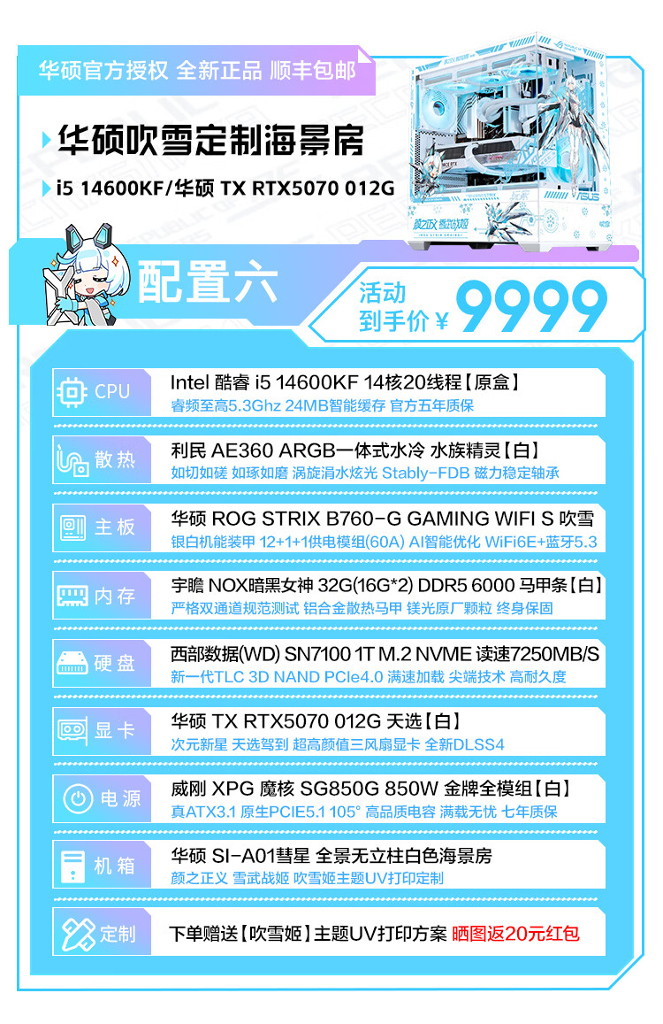 ASUS Tianxuan RTX5070/5060Ti/5060 graphics card i5 14600KF high-end fully equipped computer DIY game console Fubukihime desktop complete machine white sea view room i7 14700KF+ASUS Tianxuan 5070 configuration ten