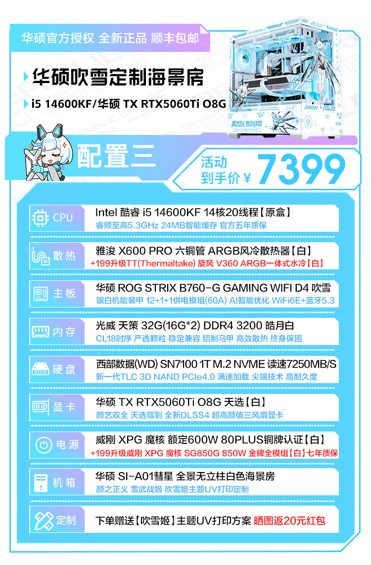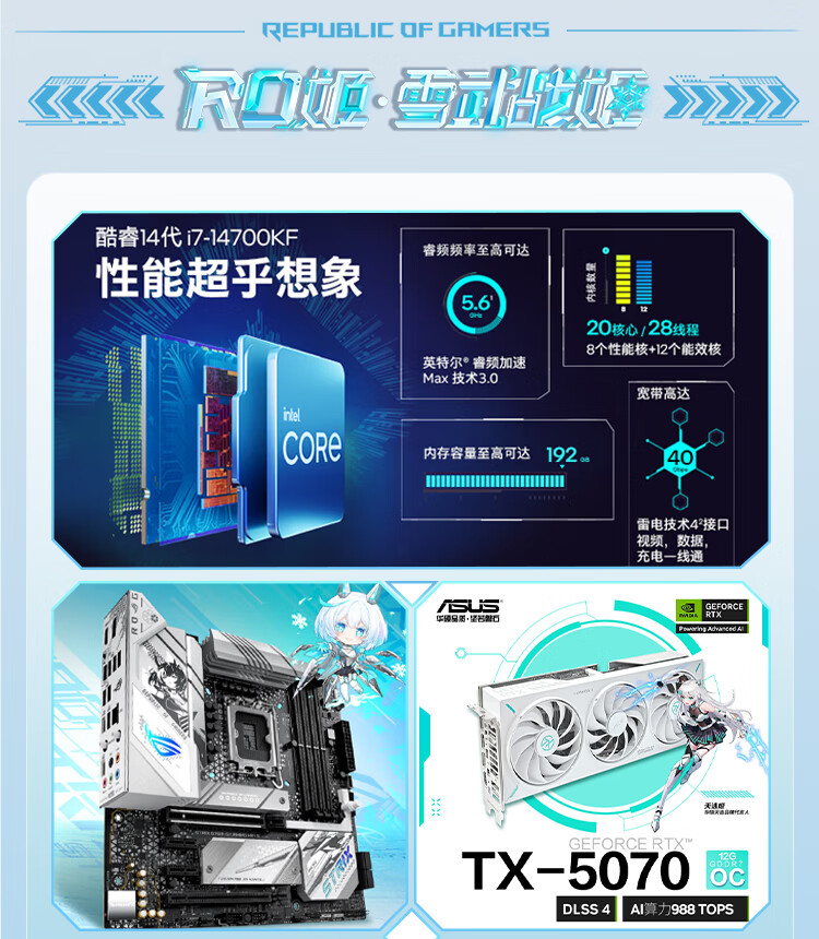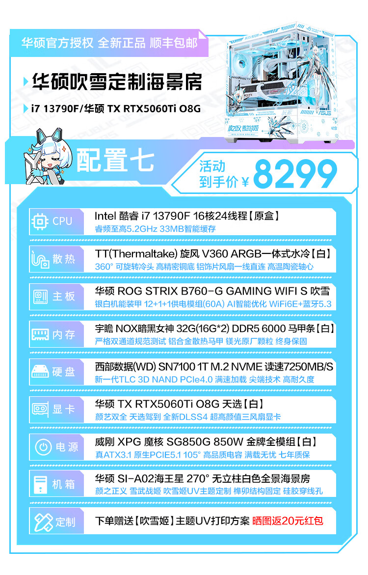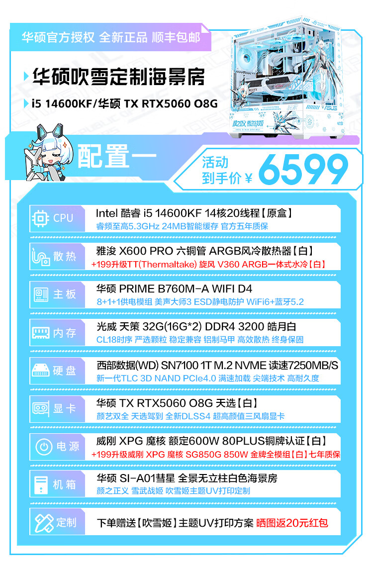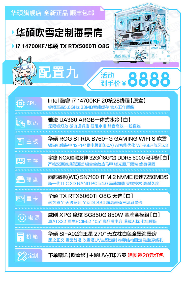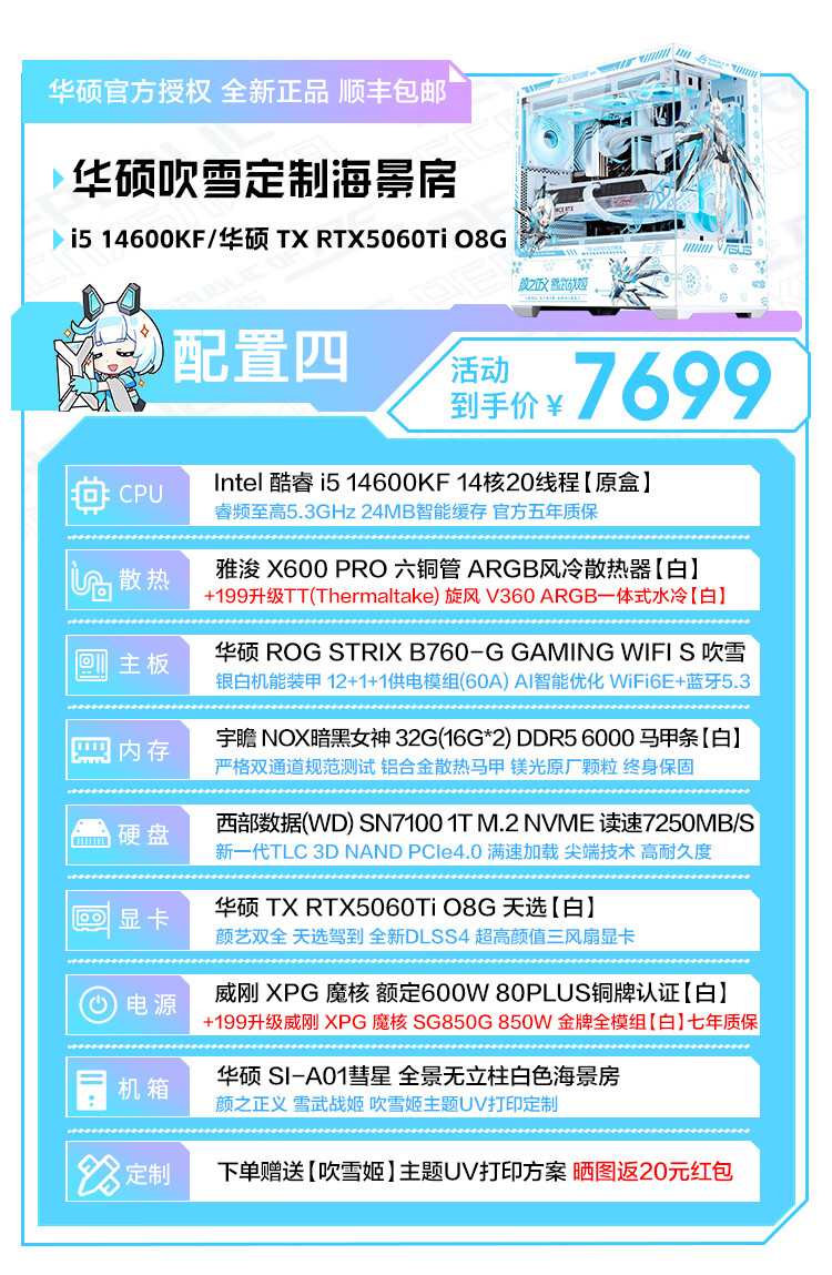 ASUS Tianxuan RTX5070/5060Ti/5060 graphics card i5 14600KF high-end fully equipped computer DIY game console Fubukihime desktop complete machine white sea view room i7 14700KF+ASUS Tianxuan 5070 configuration ten