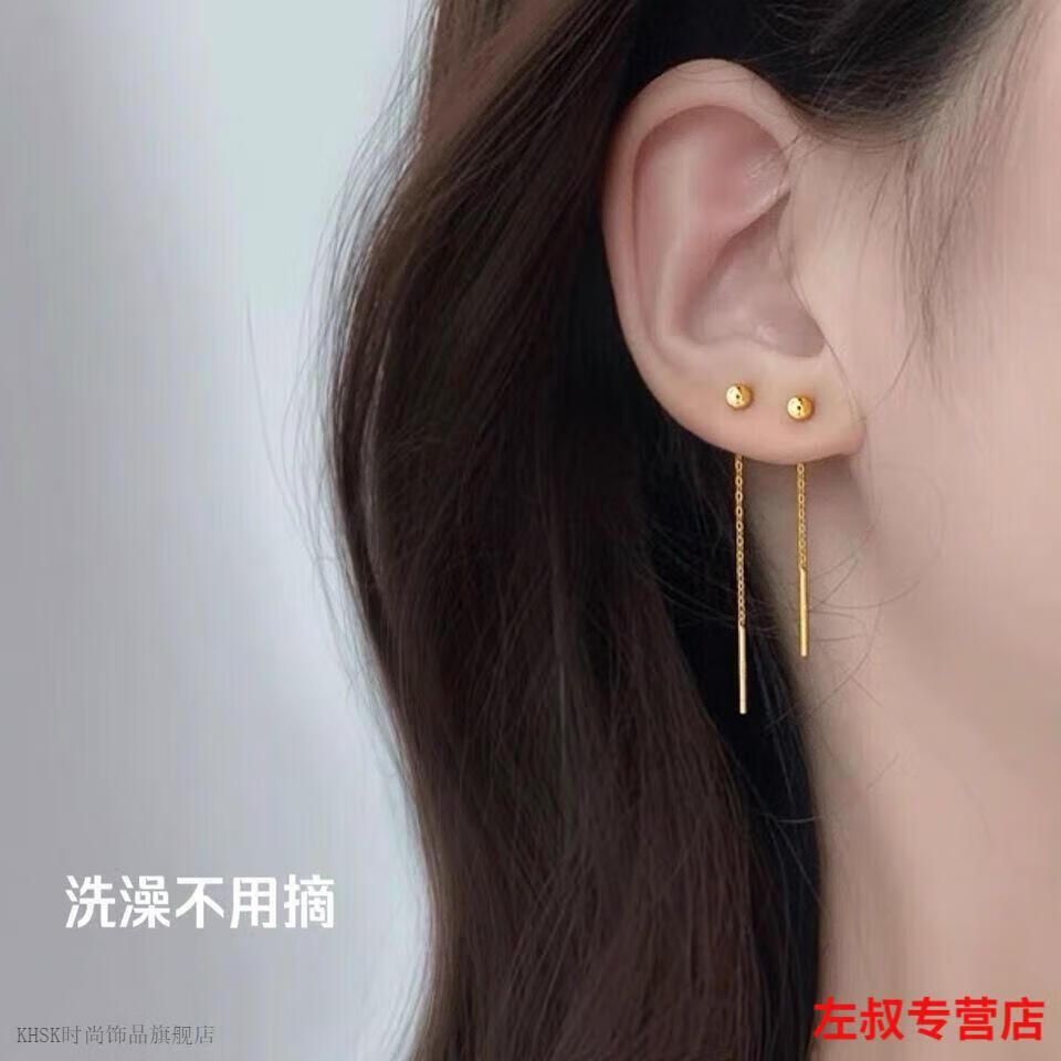 KHSK Old Phoenix pierced ears for sleeping without picking up golden round beads and tassels for besties 4cm length golden ball tassel ear wires one pair