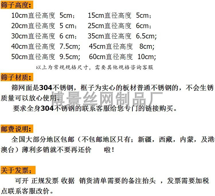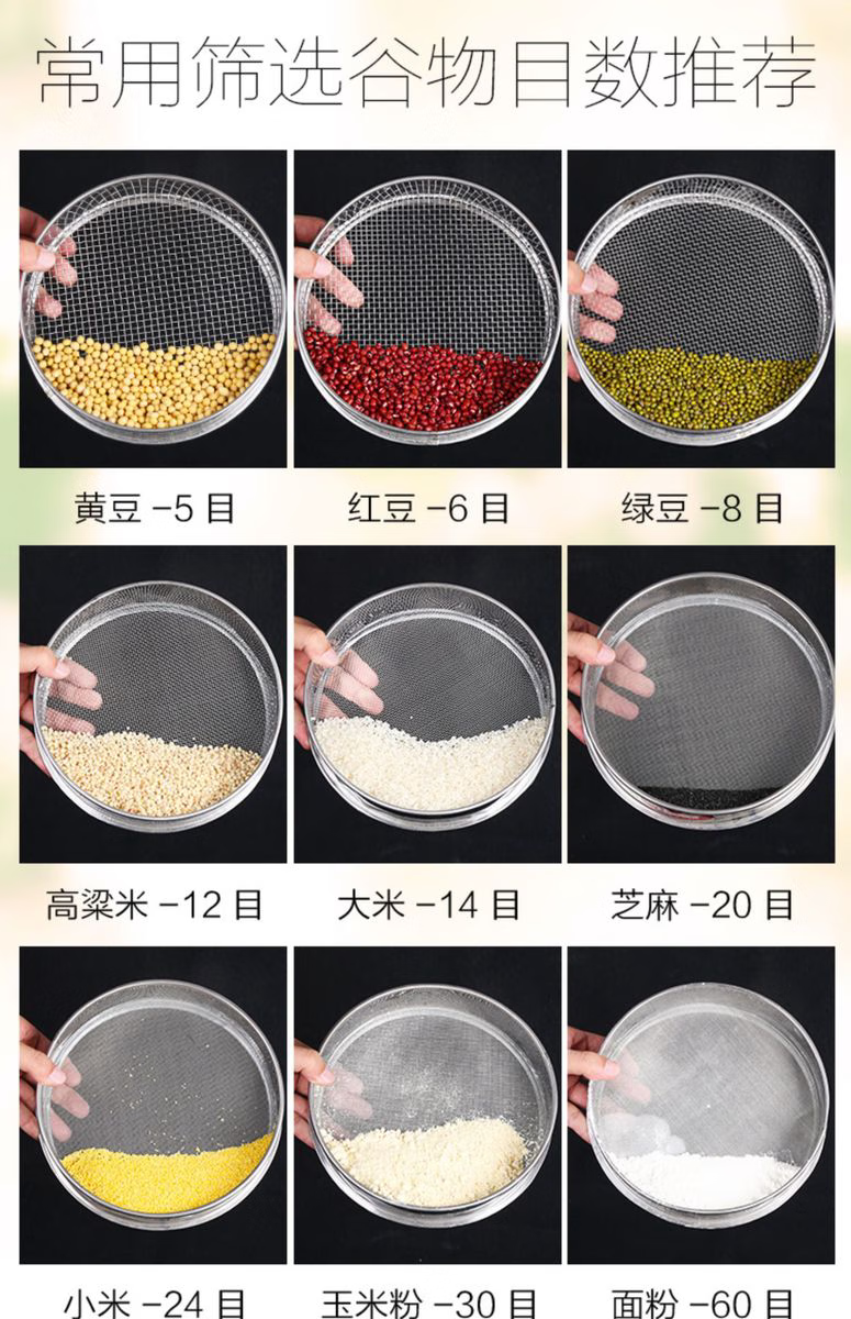 Wing Fantasy 304 stainless steel ultra-fine flour sieve, flour sieve, sifting sample sieve, large insect sesame sieve, baking sieve, diameter 15 cm, mesh size, leave a message