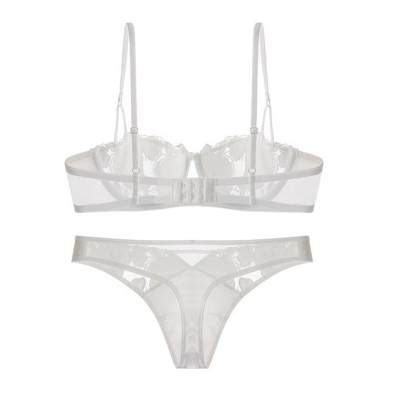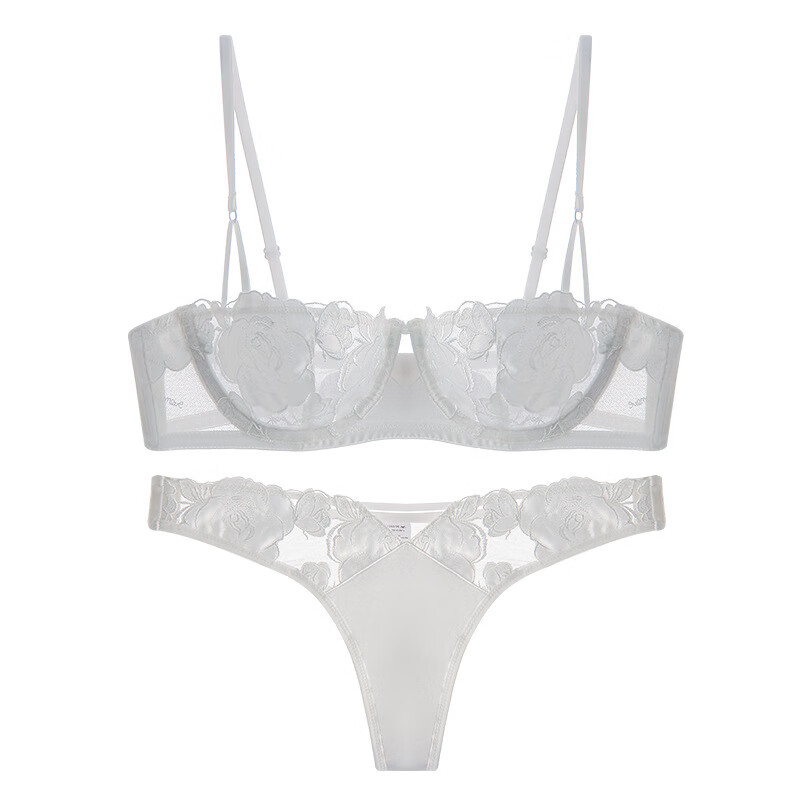 Victoria Palace Sexy Bra Ultra-Thin Rose Embroidered Lace Push-up Bra Large Breasts Show Small Large Size Sexy Underwear Set White S