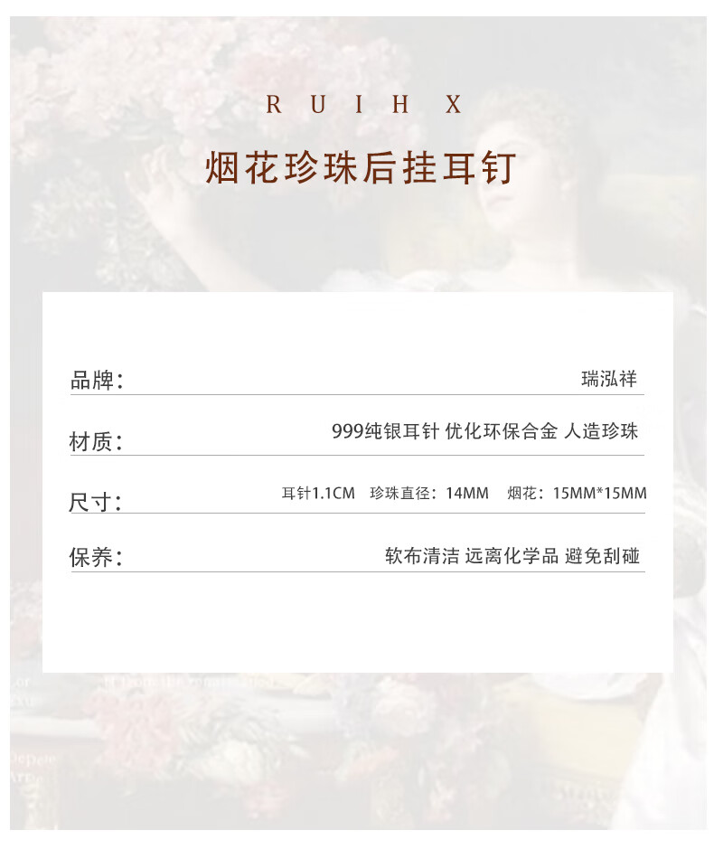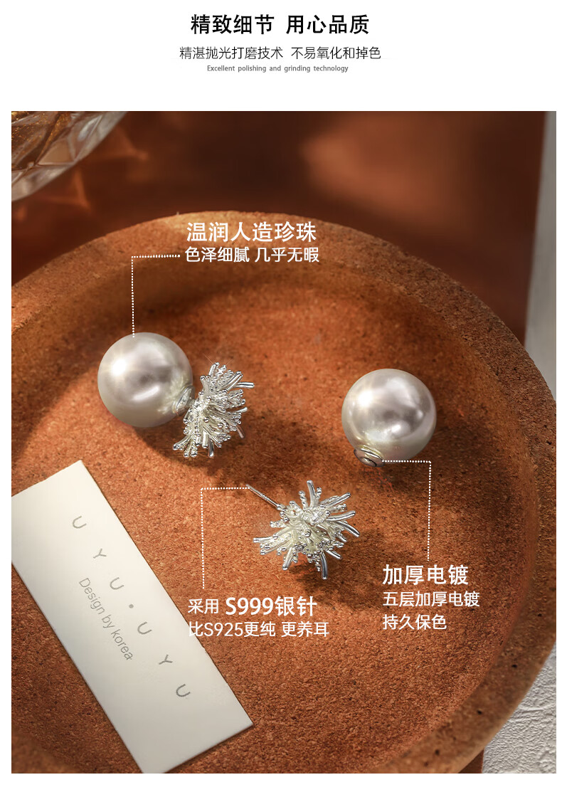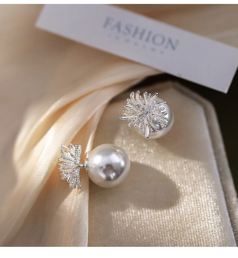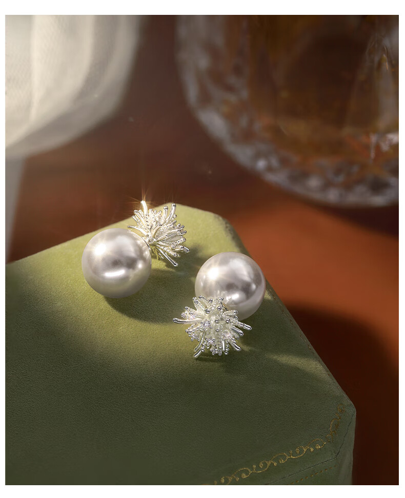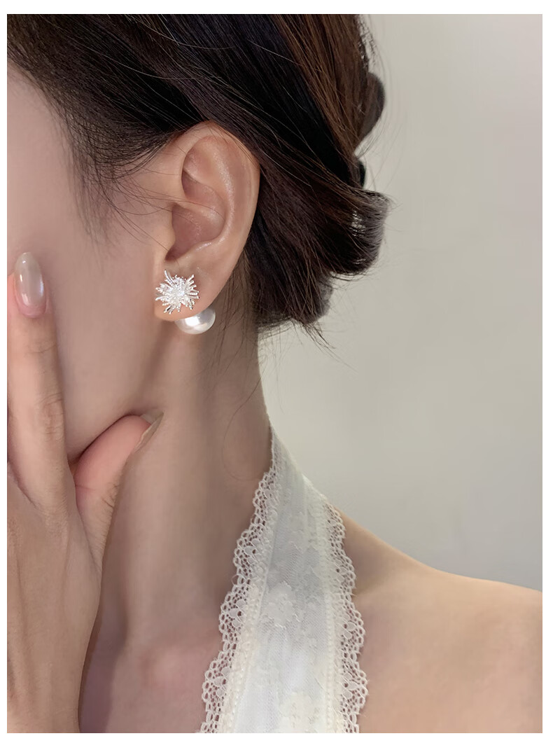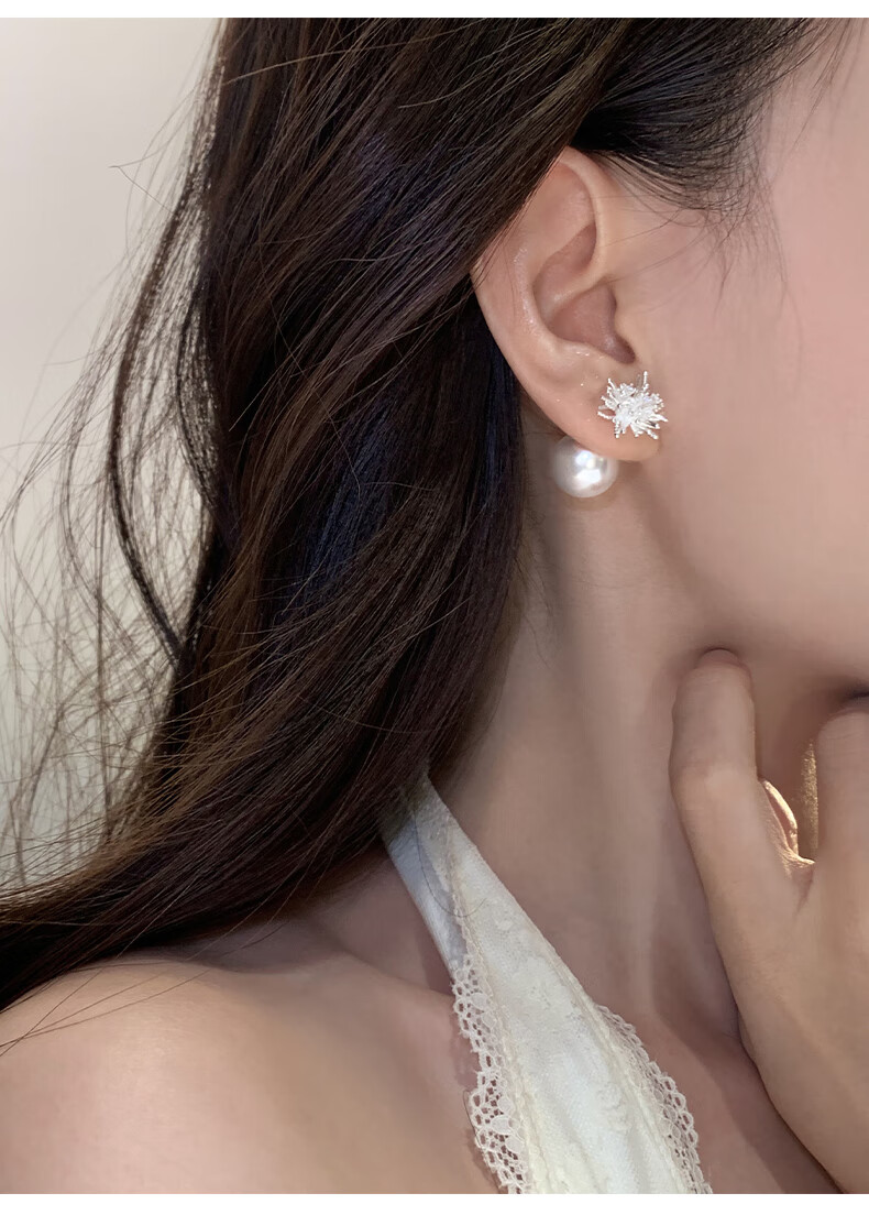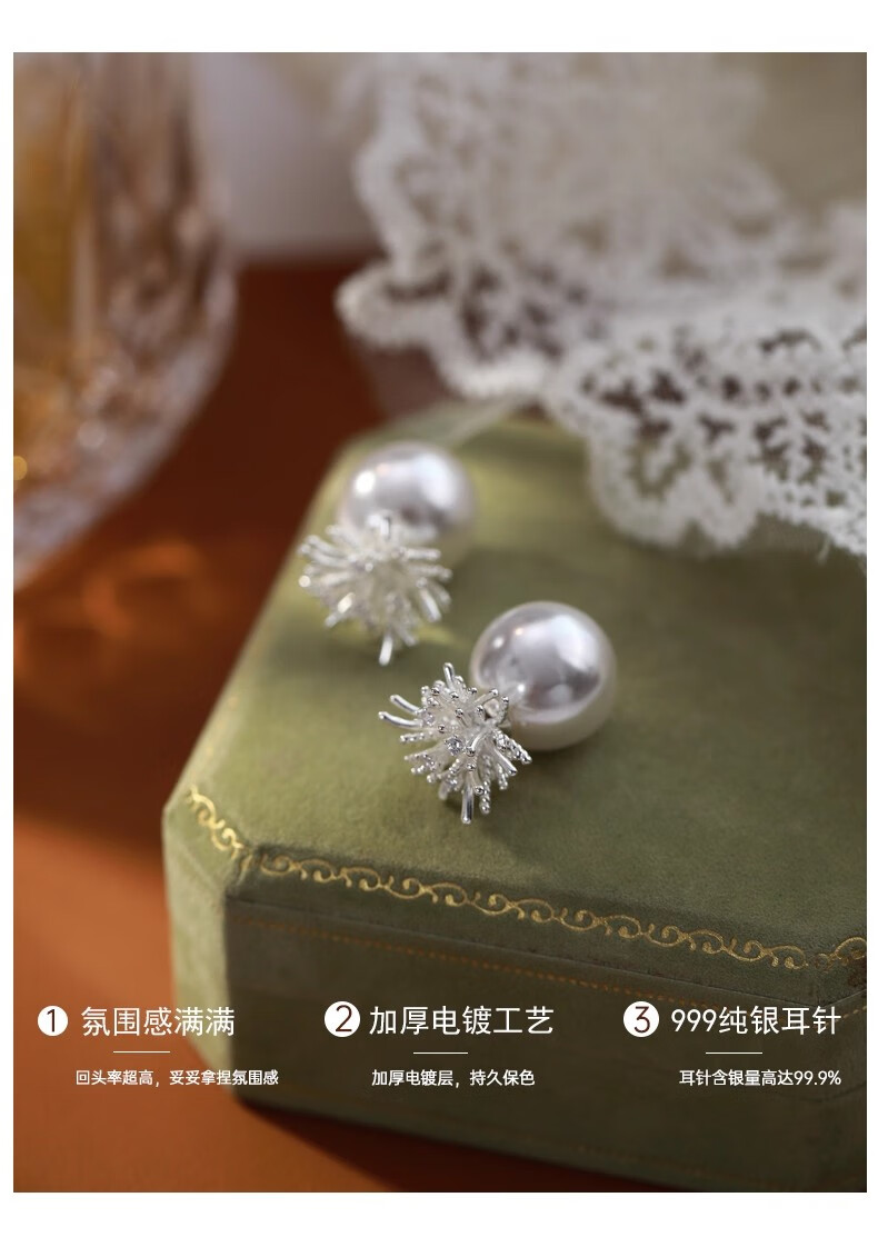 Ruihongxiang 999 Sterling Silver Earrings Fireworks Pearl Earrings Women's Light Luxury High-Quality Temperament Earrings 2025 New Hot Style Earrings 999 Sterling Silver Earrings-Back-hanging Fireworks Pearl Earrings