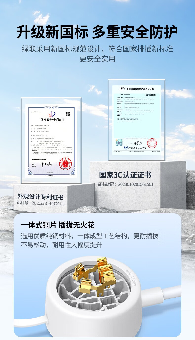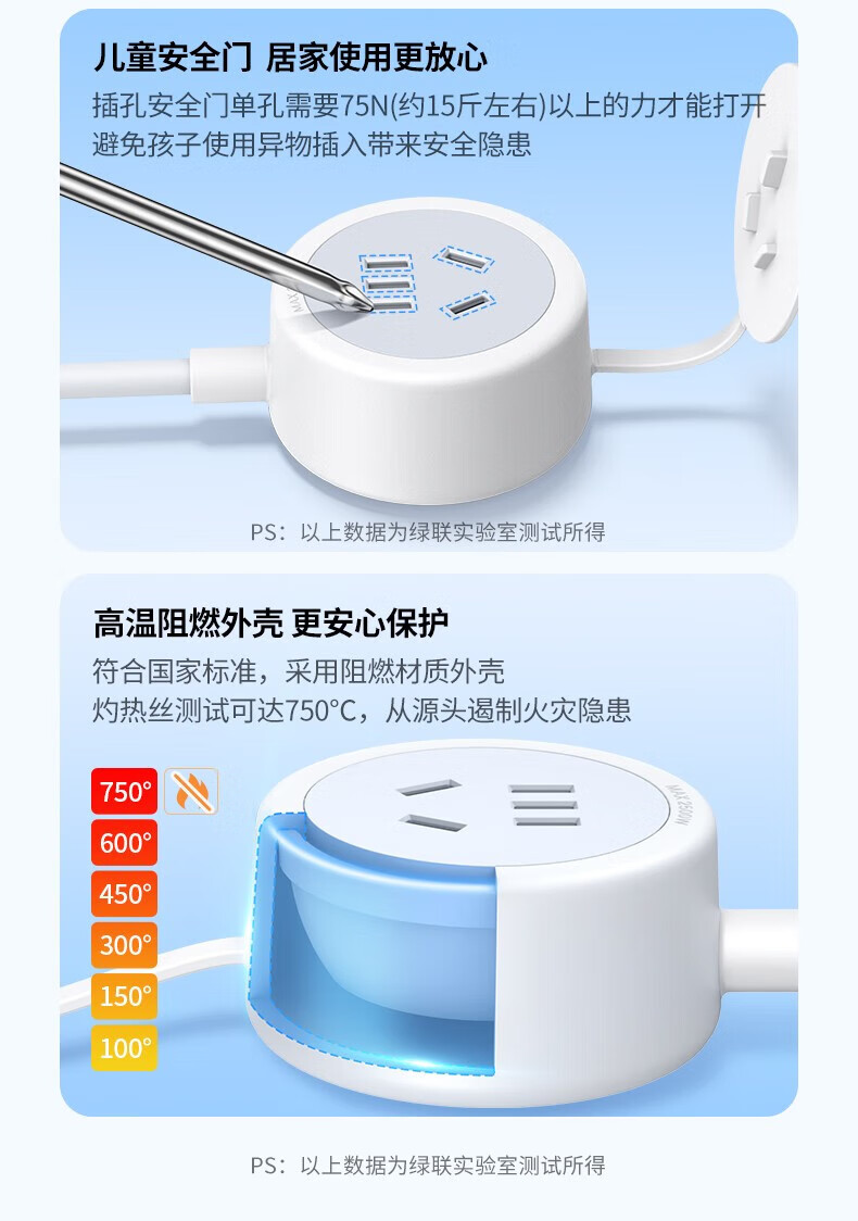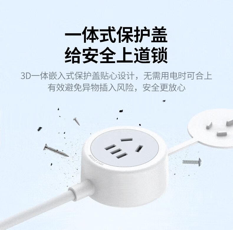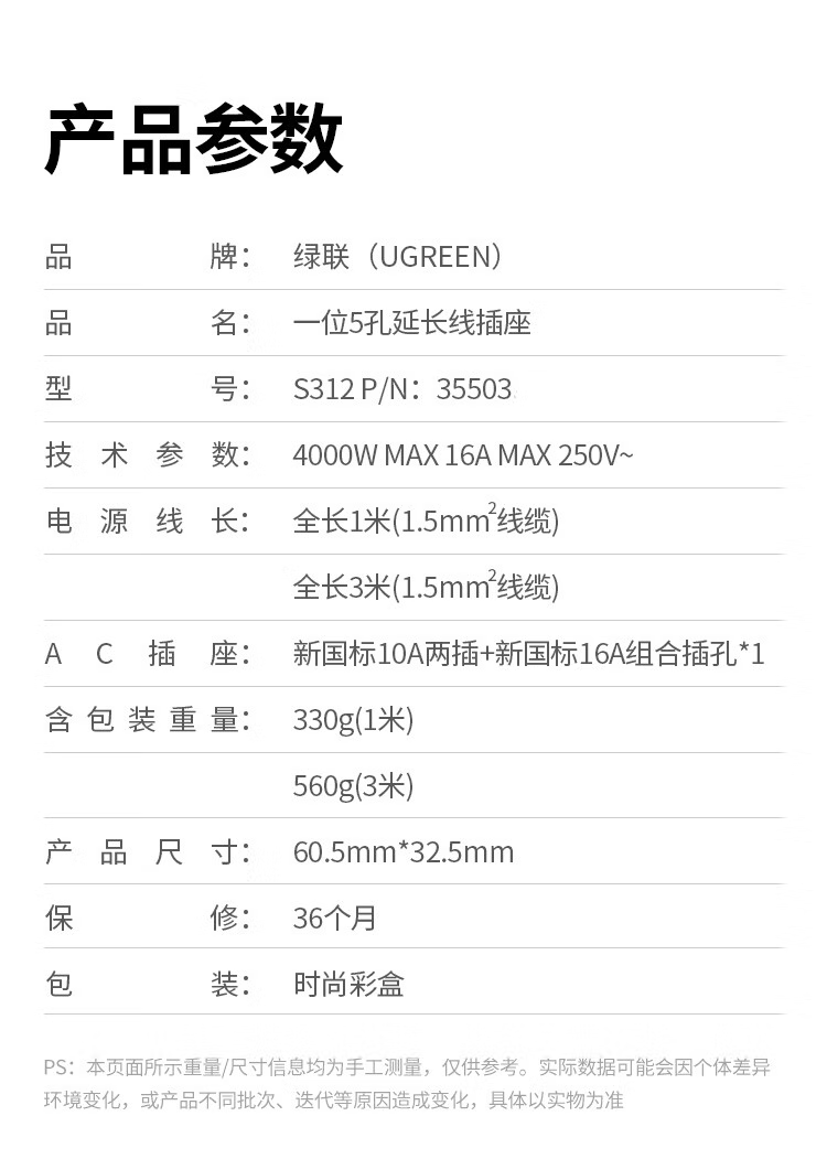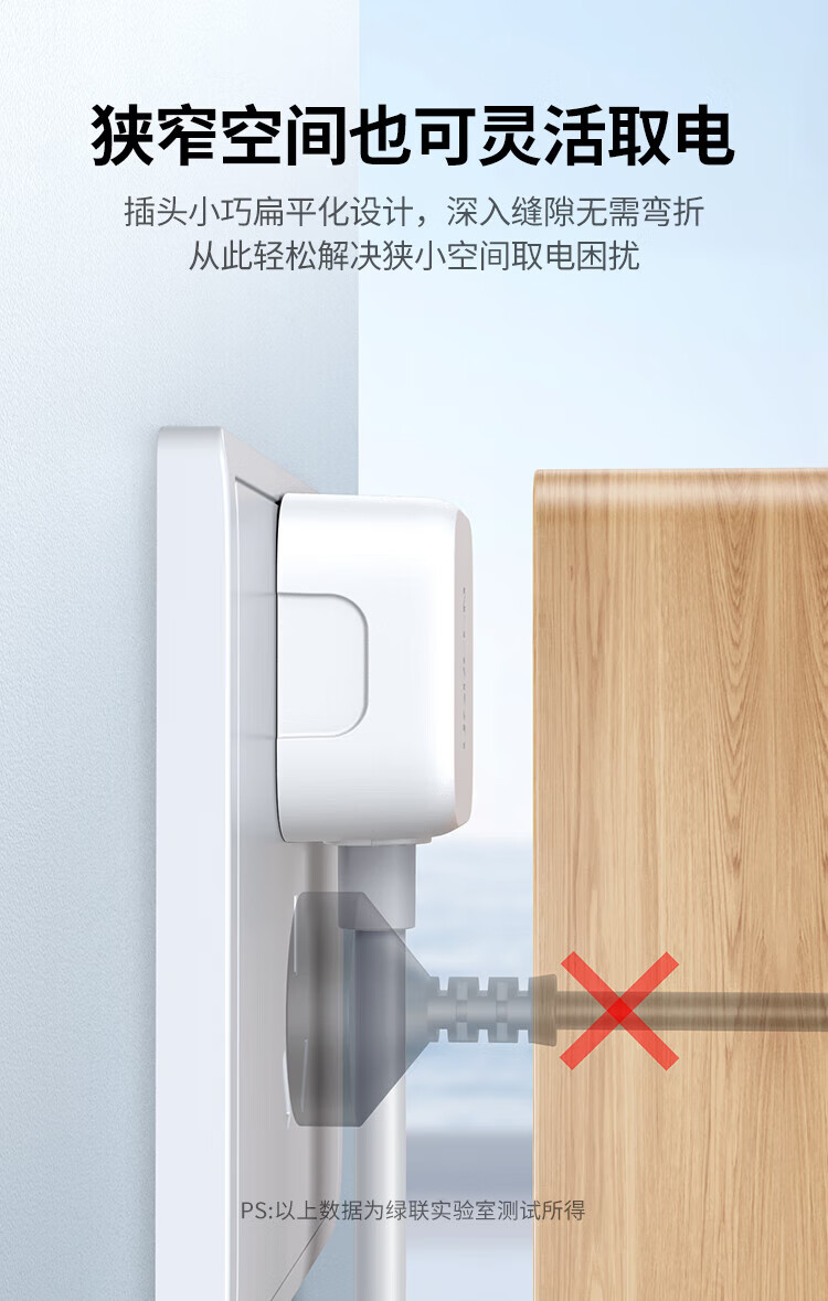 UGREEN power socket extension cord/socket strip/multi-functional mini power strip/wiring board/pull cord board/dormitory strip electric vehicle charging three-hole with dust cover short and space-saving total length 0.6 meters 10A