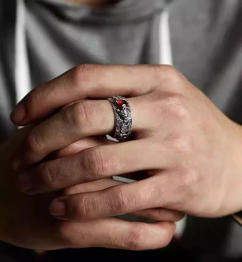 Core luxury snake year big Pixiu ring for men, high-end jewelry to attract wealth and good fortune for couples, old style birthday gift for husband and boyfriend Pixiu ring