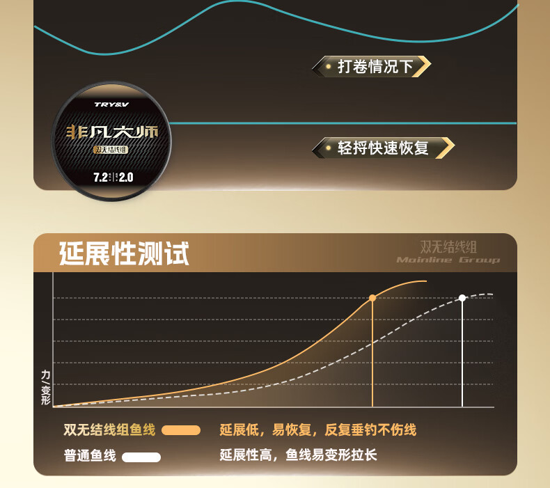 Chuangwei Chuangwei Extraordinary Master double knotless line composition product main line genuine imported tied nylon line reinforced fishing line set 5.4 meters丨line number 2.0#