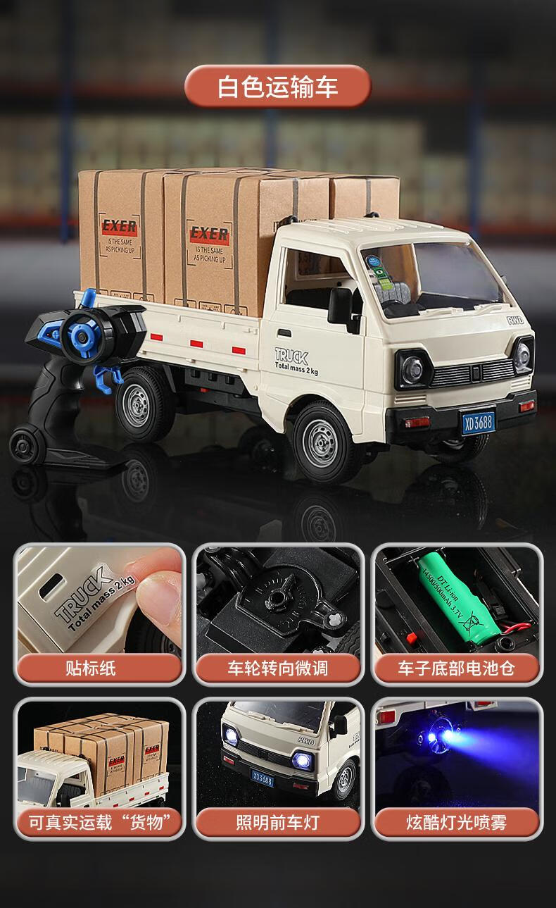 Real mini truck remote control car rc drift remote control car container micro truck boy van children's toy gift remote control drift mini truck - white comes with full body sticker standard version 1 set of lithium battery + color box + gifts