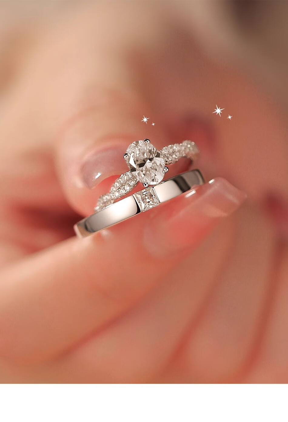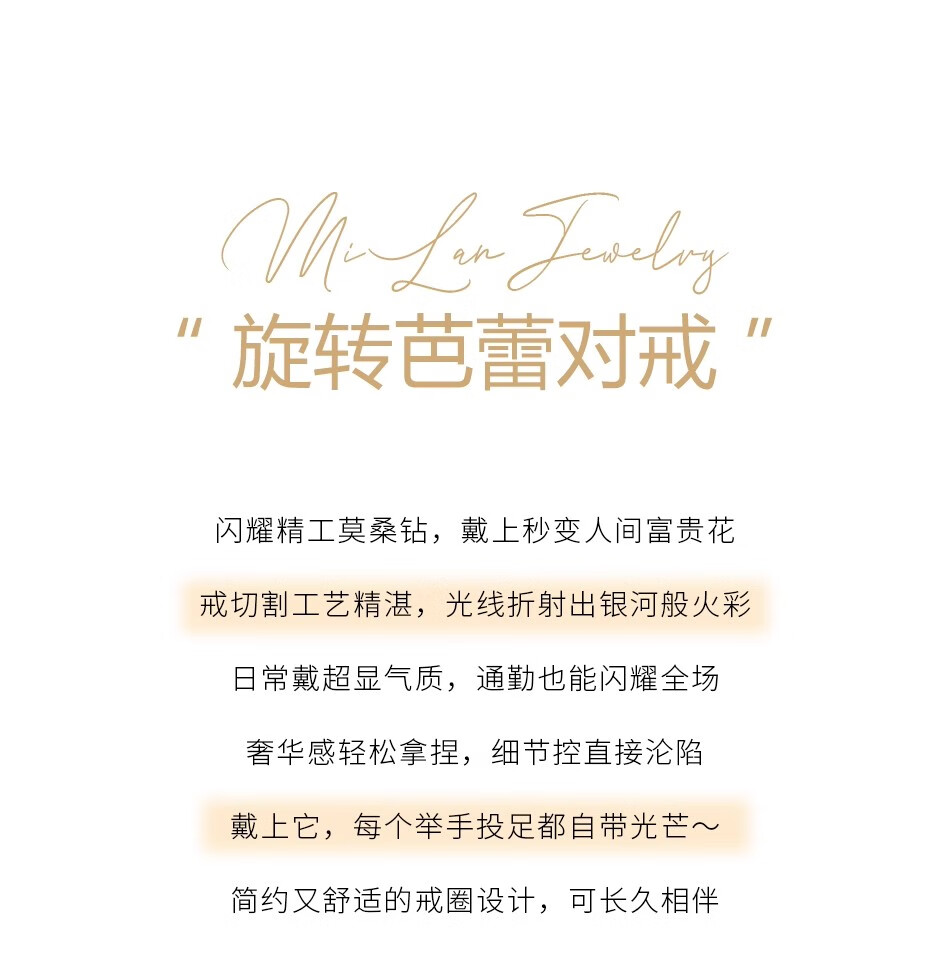 Couple's ring light luxury niche closed mouth moissanite diamond men's and women's Chinese Valentine's Day gift sterling silver platinum-plated pt950 ring light luxury model - rotating ballerina ring - rose gift box default live mouth closed remarks circle number