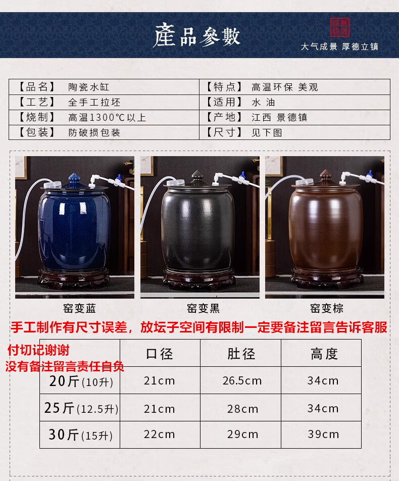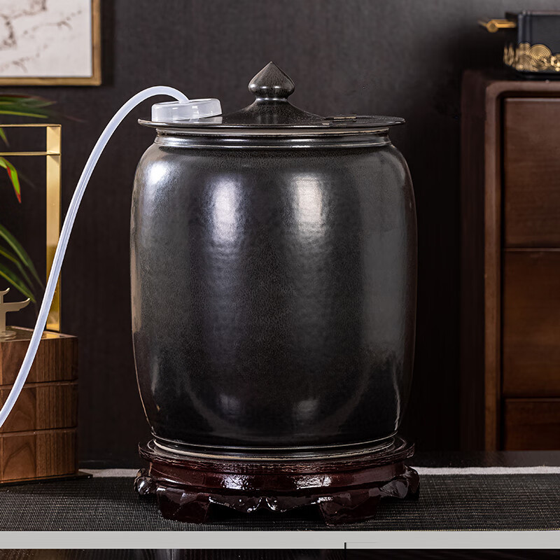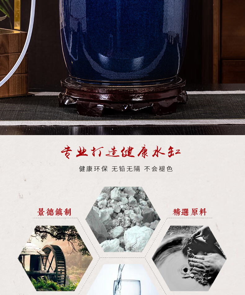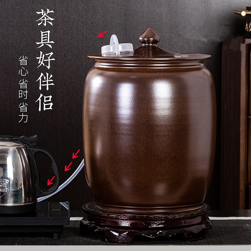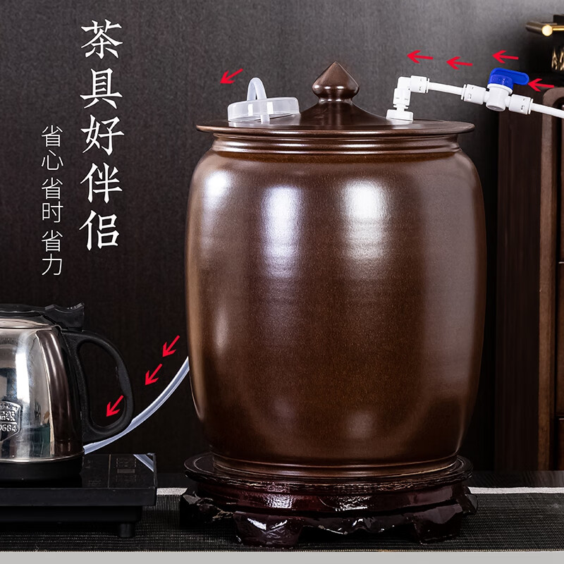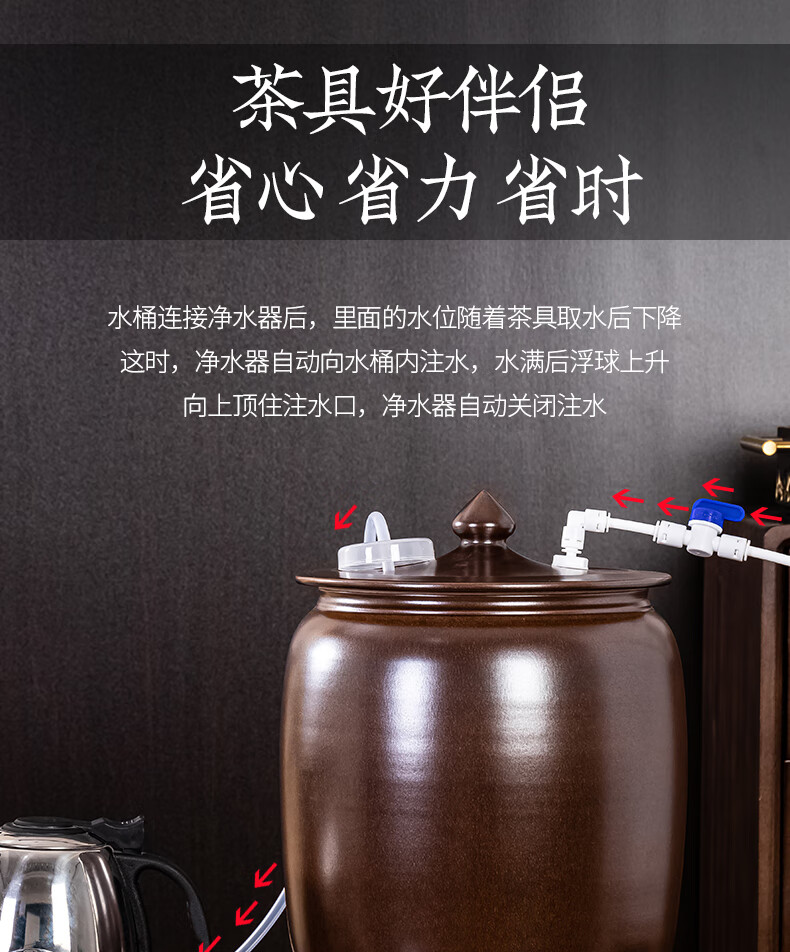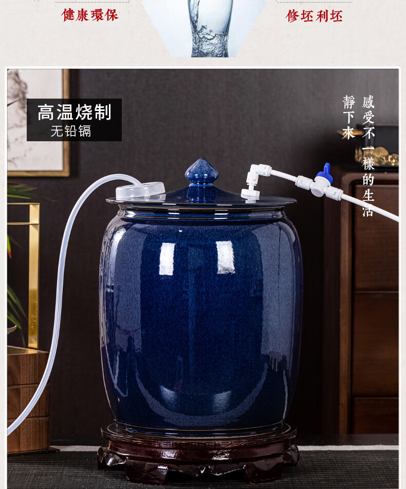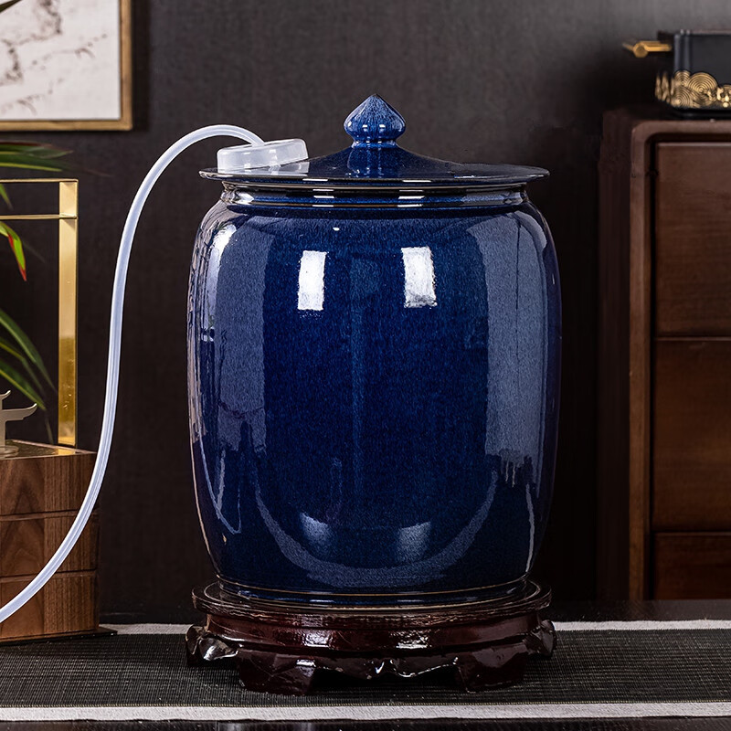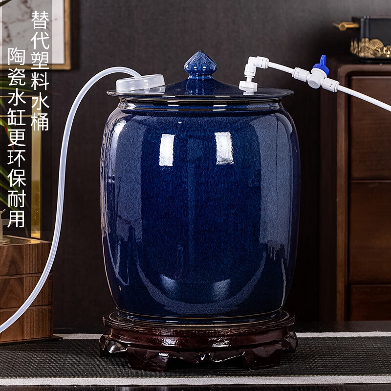 Thick Ancient and Thin Today Water Cylinder Ceramic Pure Water Bucket with Float Valve Automatic Pumping Empty Bucket Kung Fu Tea Table Water Tank to Store Drinking Water 20Jin Jin is equal to 0.5kg Blue Water Pumping + With Float + Base