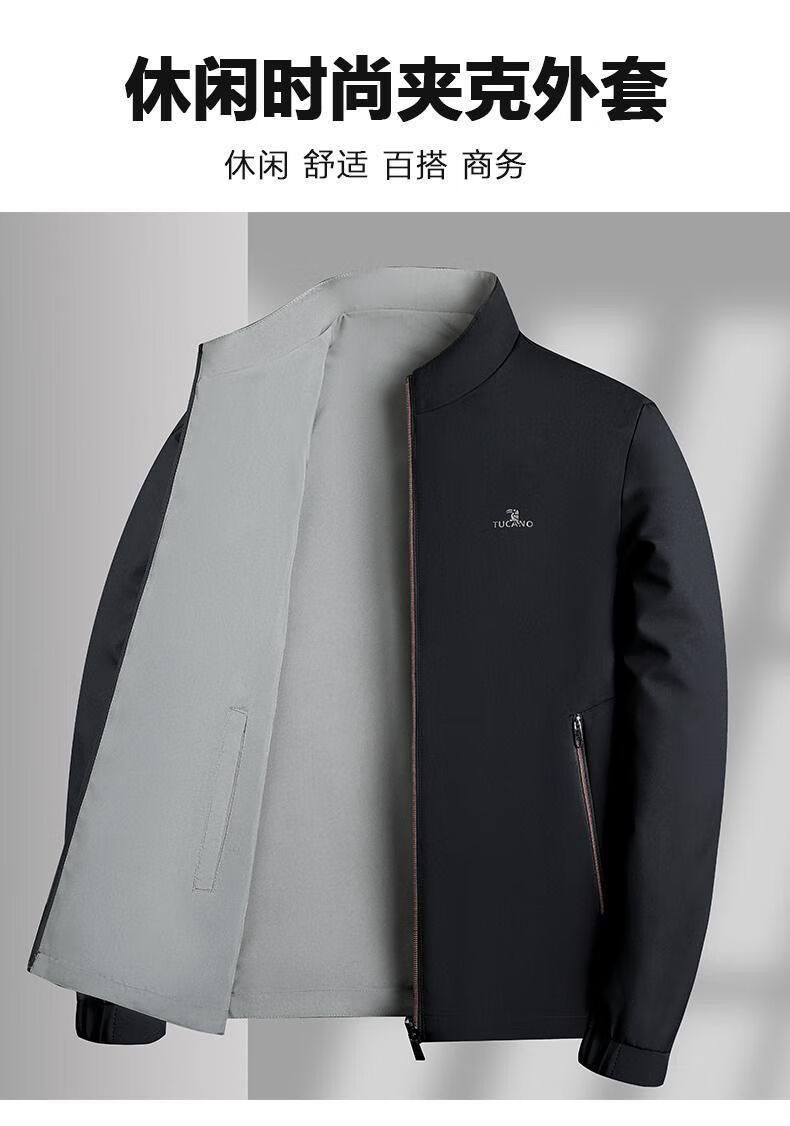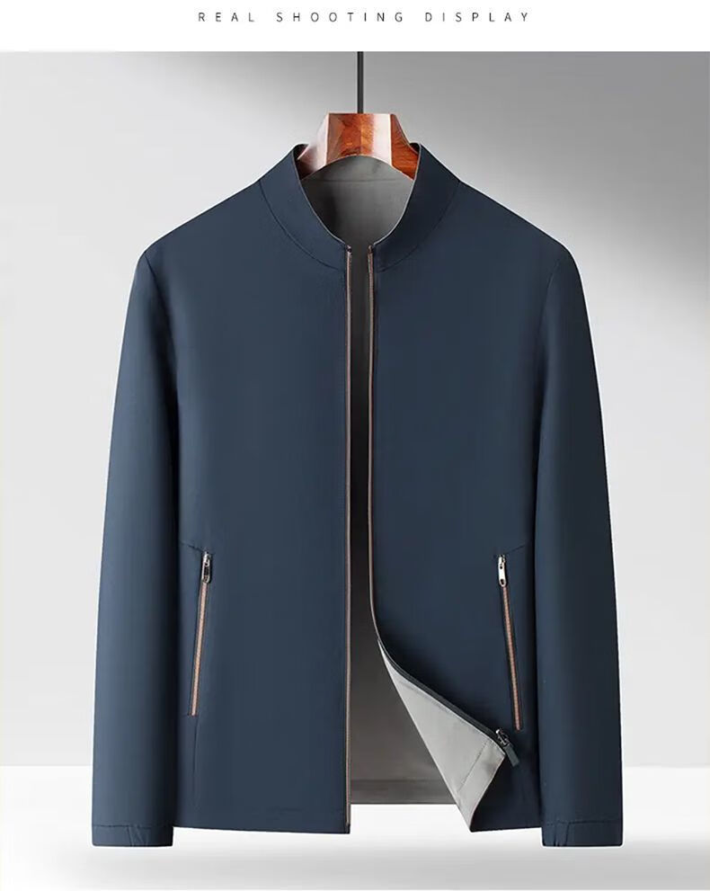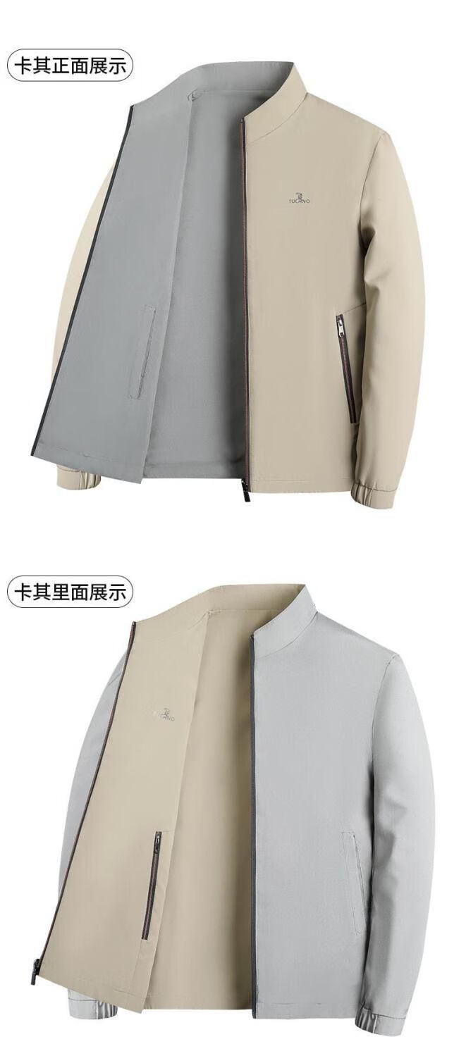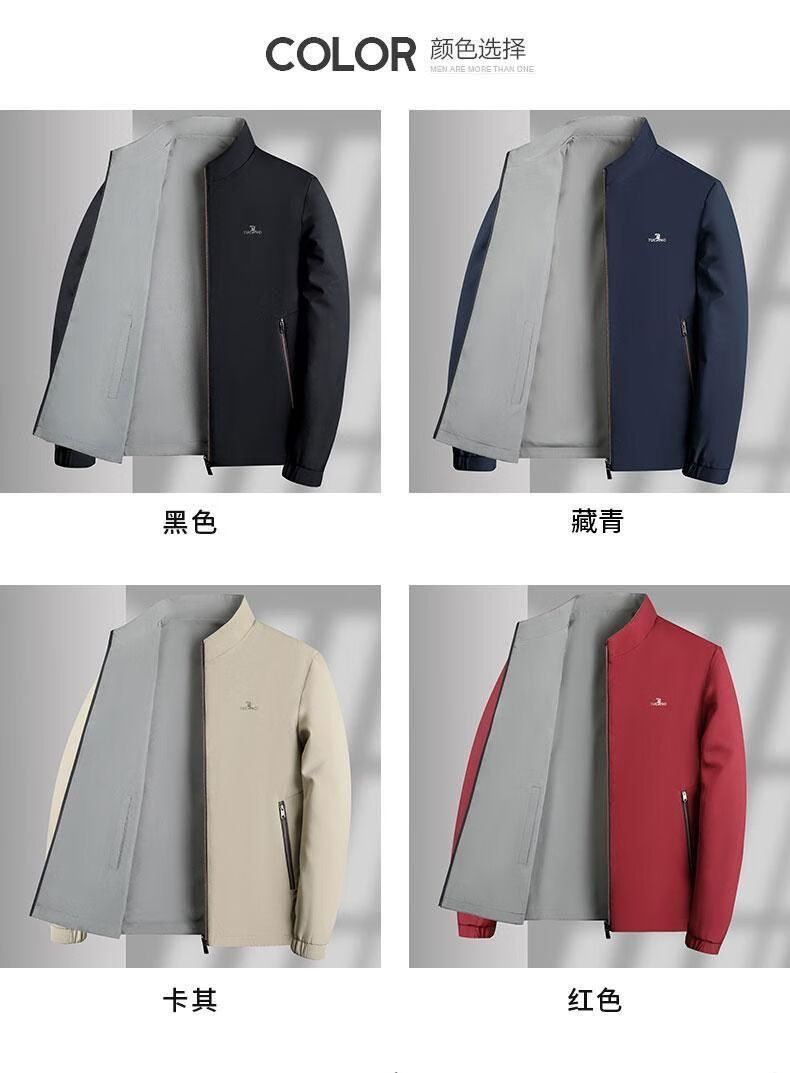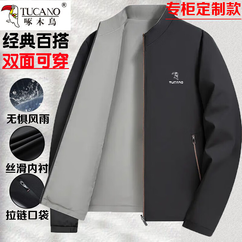 Woodpecker Reversible Woodpecker Authentic Dad Jacket Spring and Autumn Clothing Middle-aged and Old Men Commercial Stand Collar Jacket Men's Reversible 2597 Navy Stand Collar Logo Style 2XL 185 145-160Jin Jin is equal to 0.5 kg