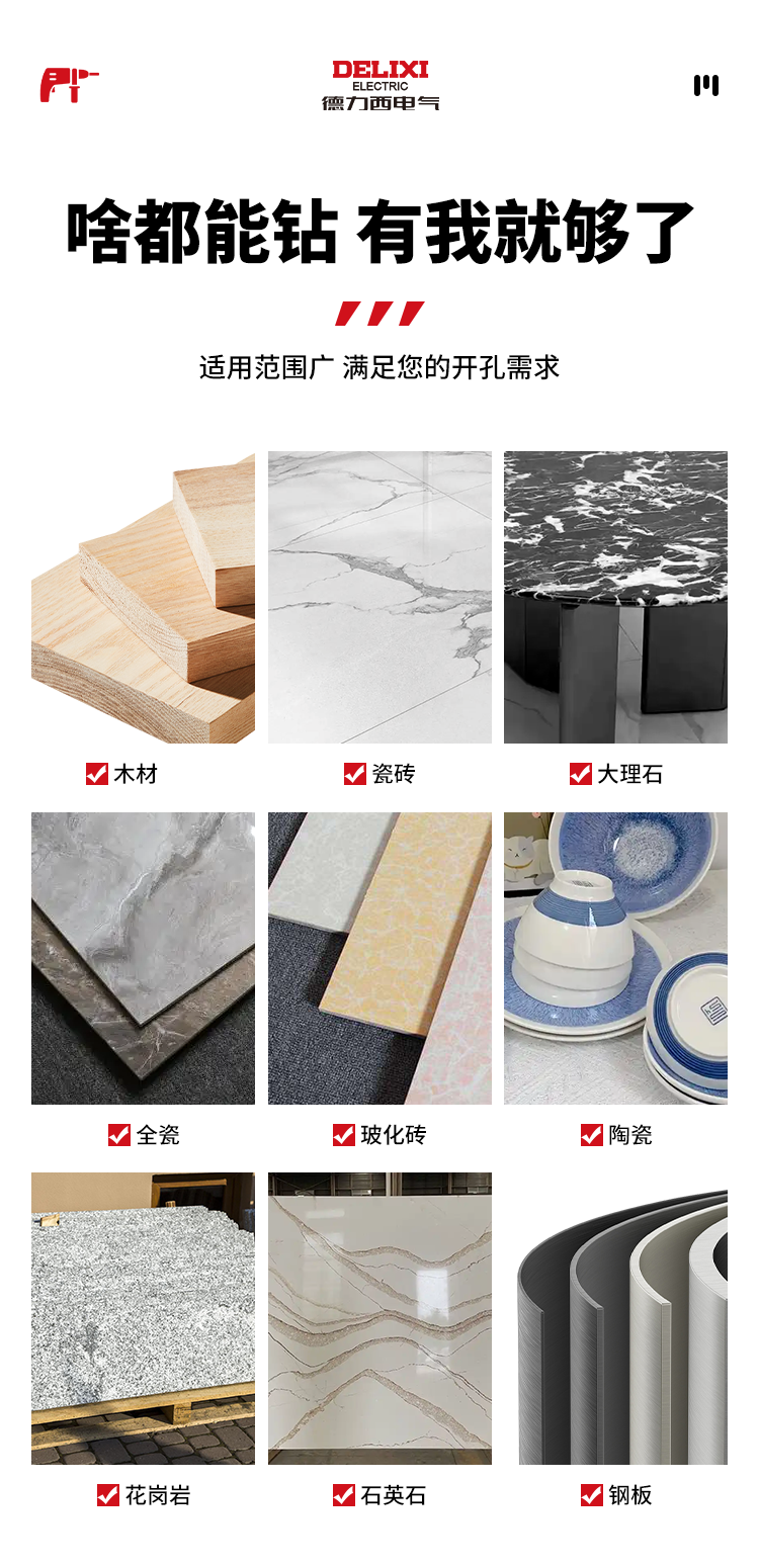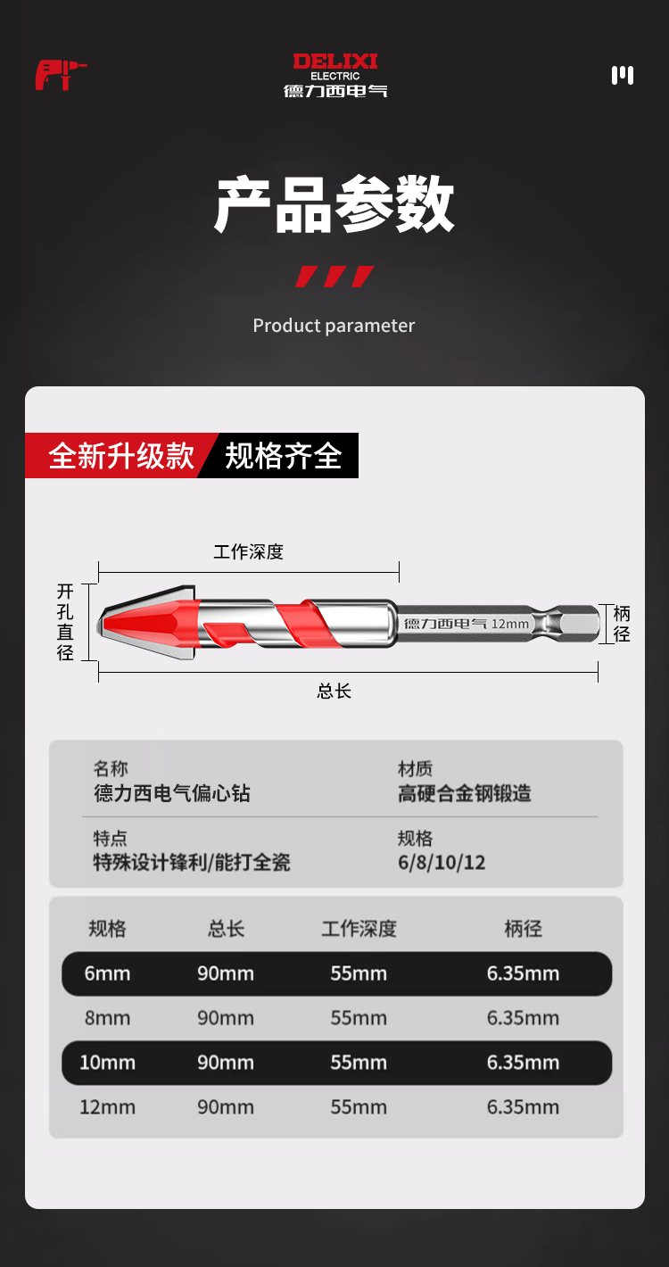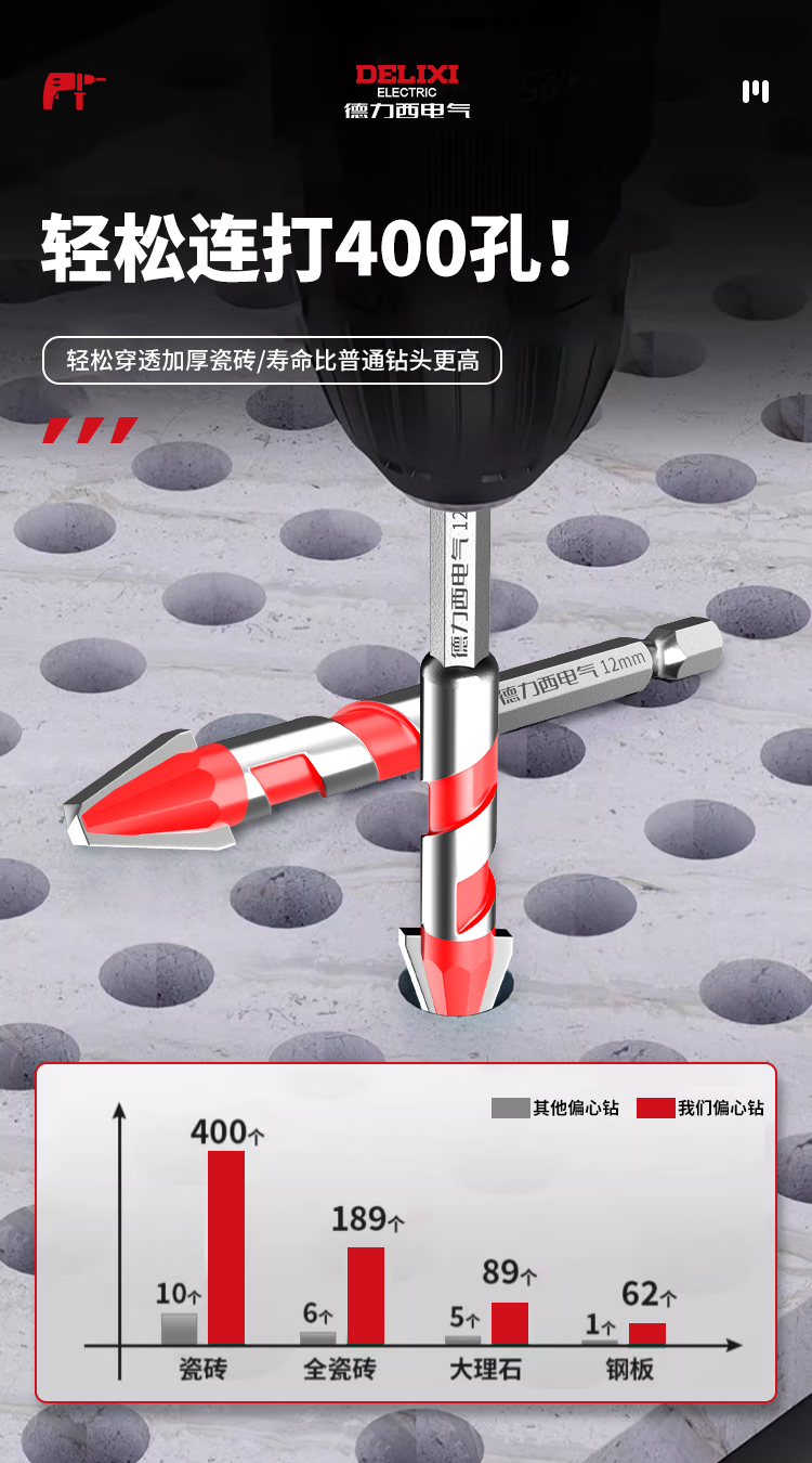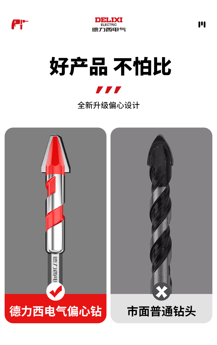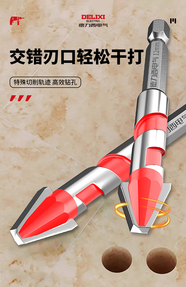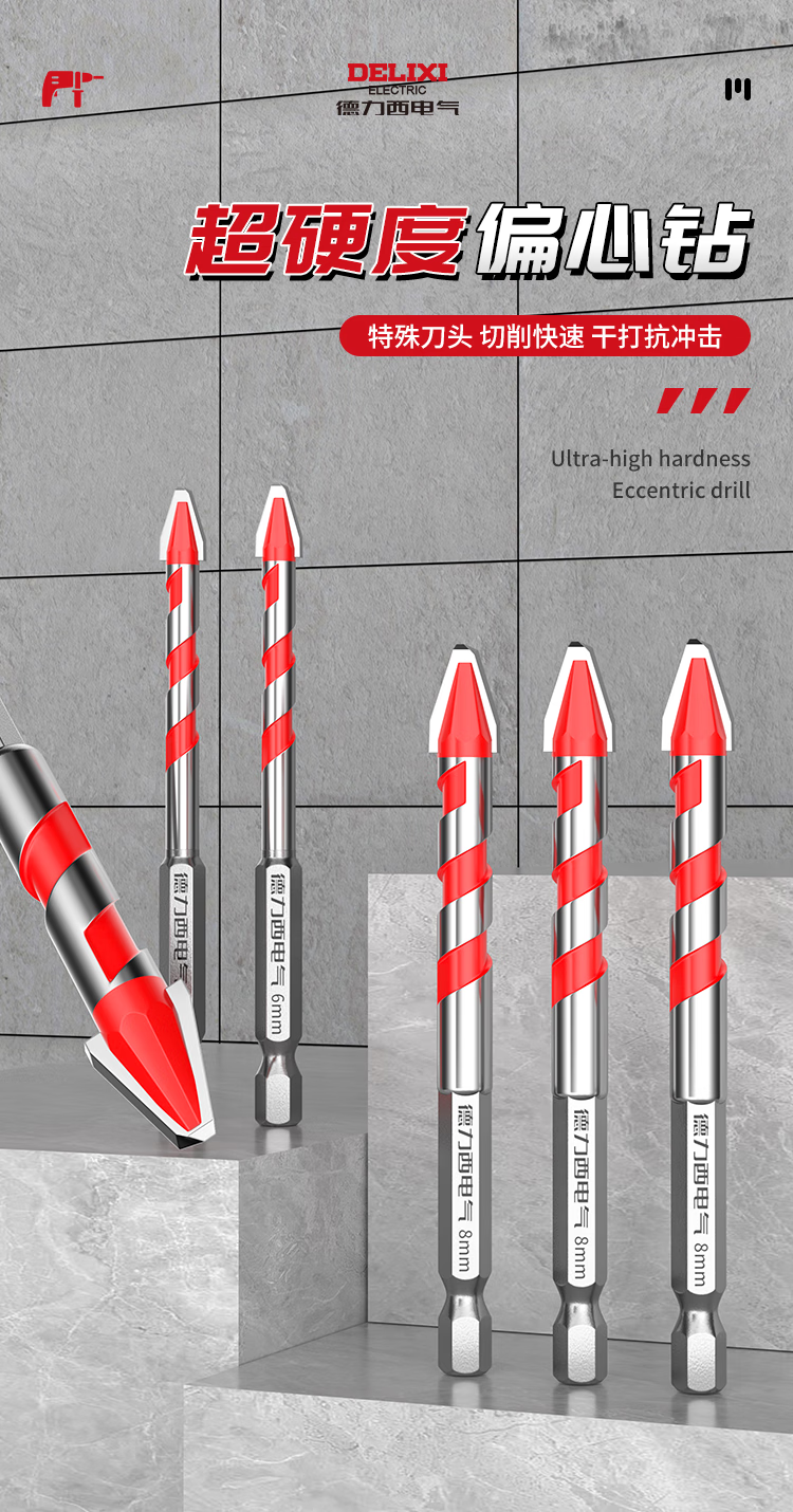 Delixi Electric tilt-head eccentric drill bit for full-tile tiles special concrete dry drilling glass ceramic cement electric drill hole opening set recommended by the store manager 6+8 2 pieces in total