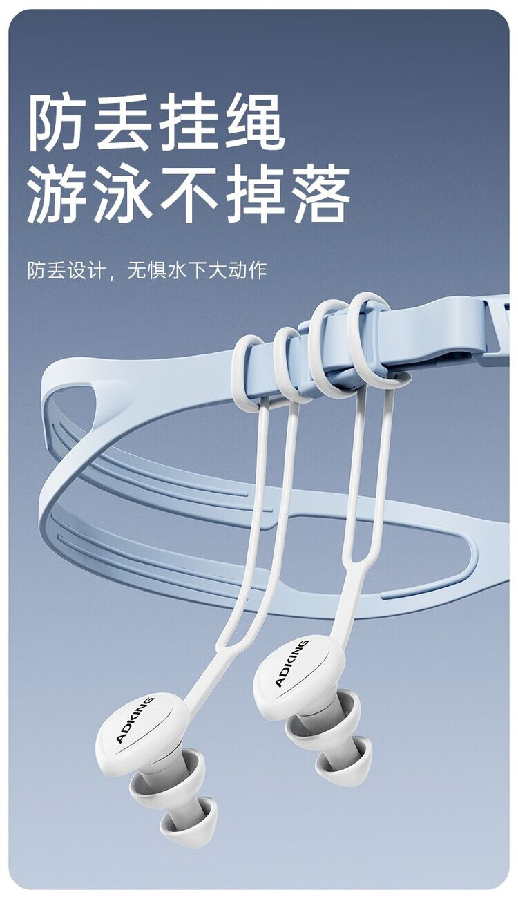 Swimming earplugs with lanyard, special waterproof silicone for bathing, silent water ingress, children and adults ear diving set, white nose clip + earplugs * with storage box * portable drawstring