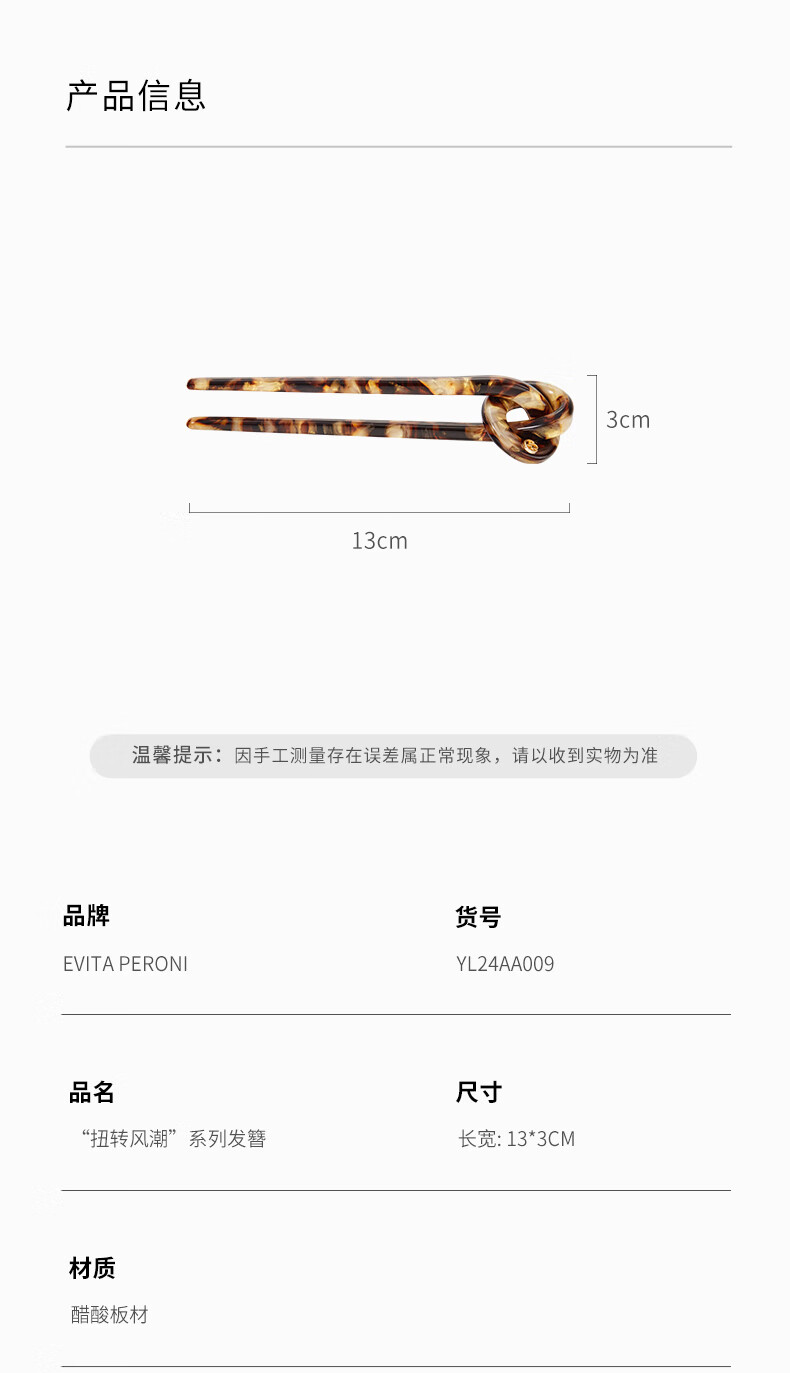 Evita Peroni's new high-quality acetate hairpin U-shaped hairpin for women, dazzling golden brown