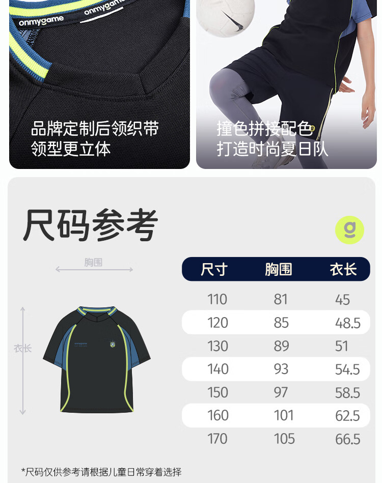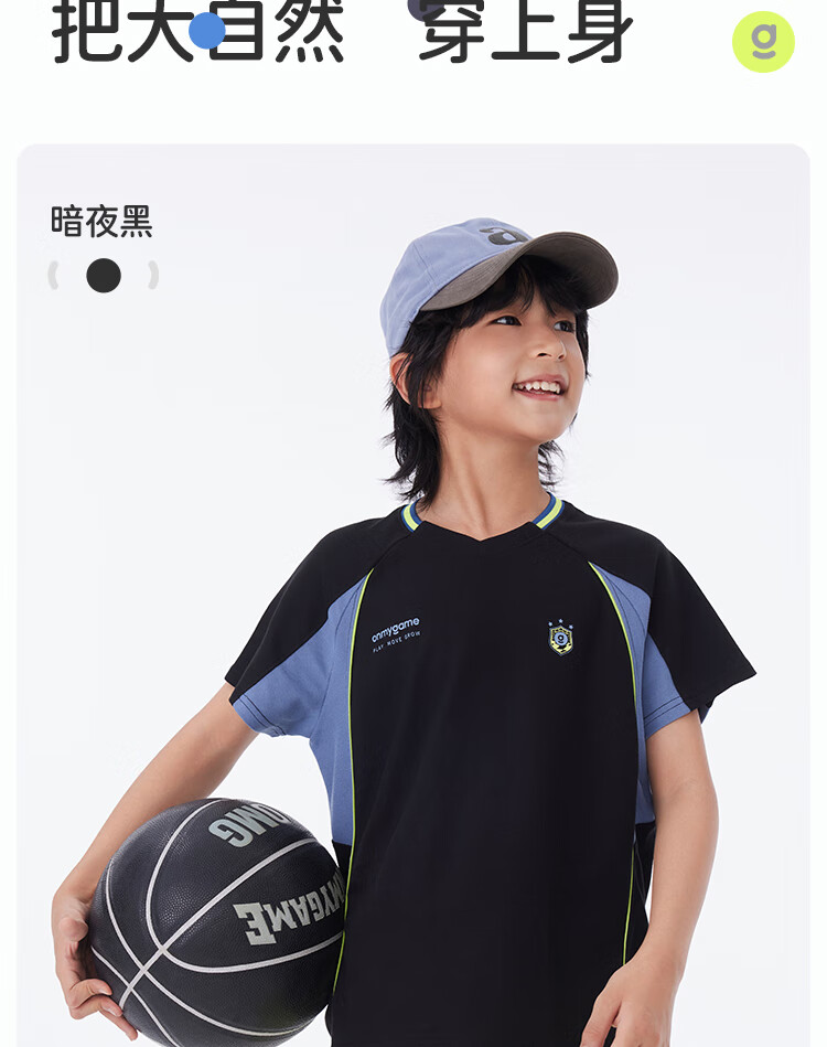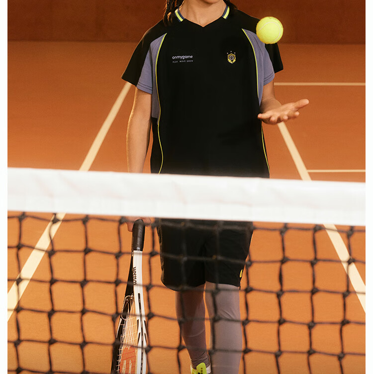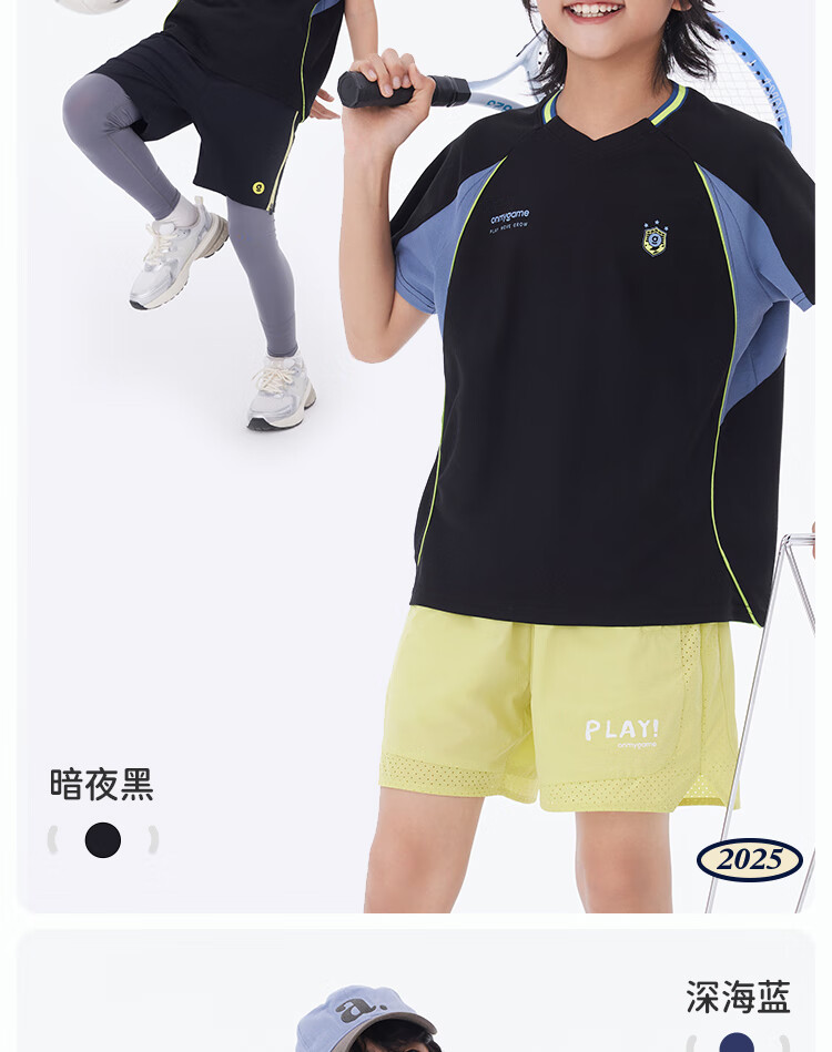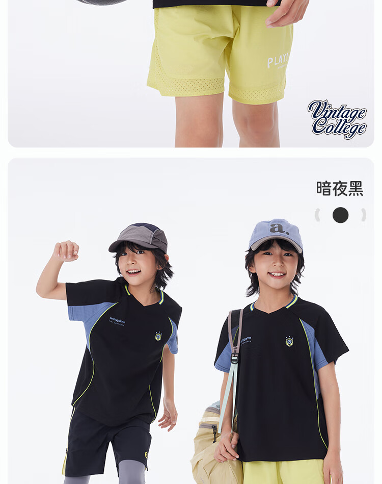 Onmygame college style children's quick-drying sunscreen T-shirt cool summer new style dark night black top + claw yellow pants 150 cm